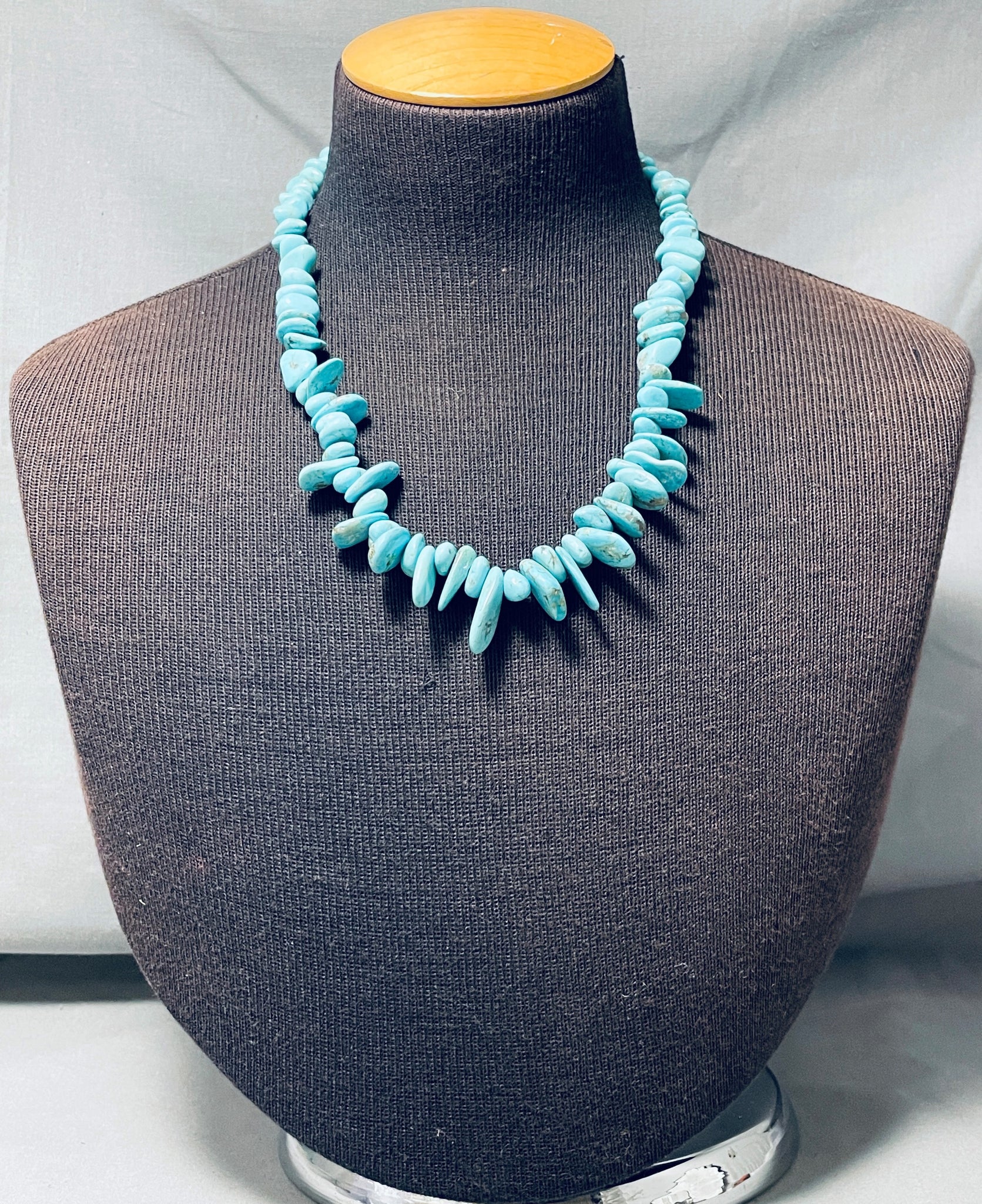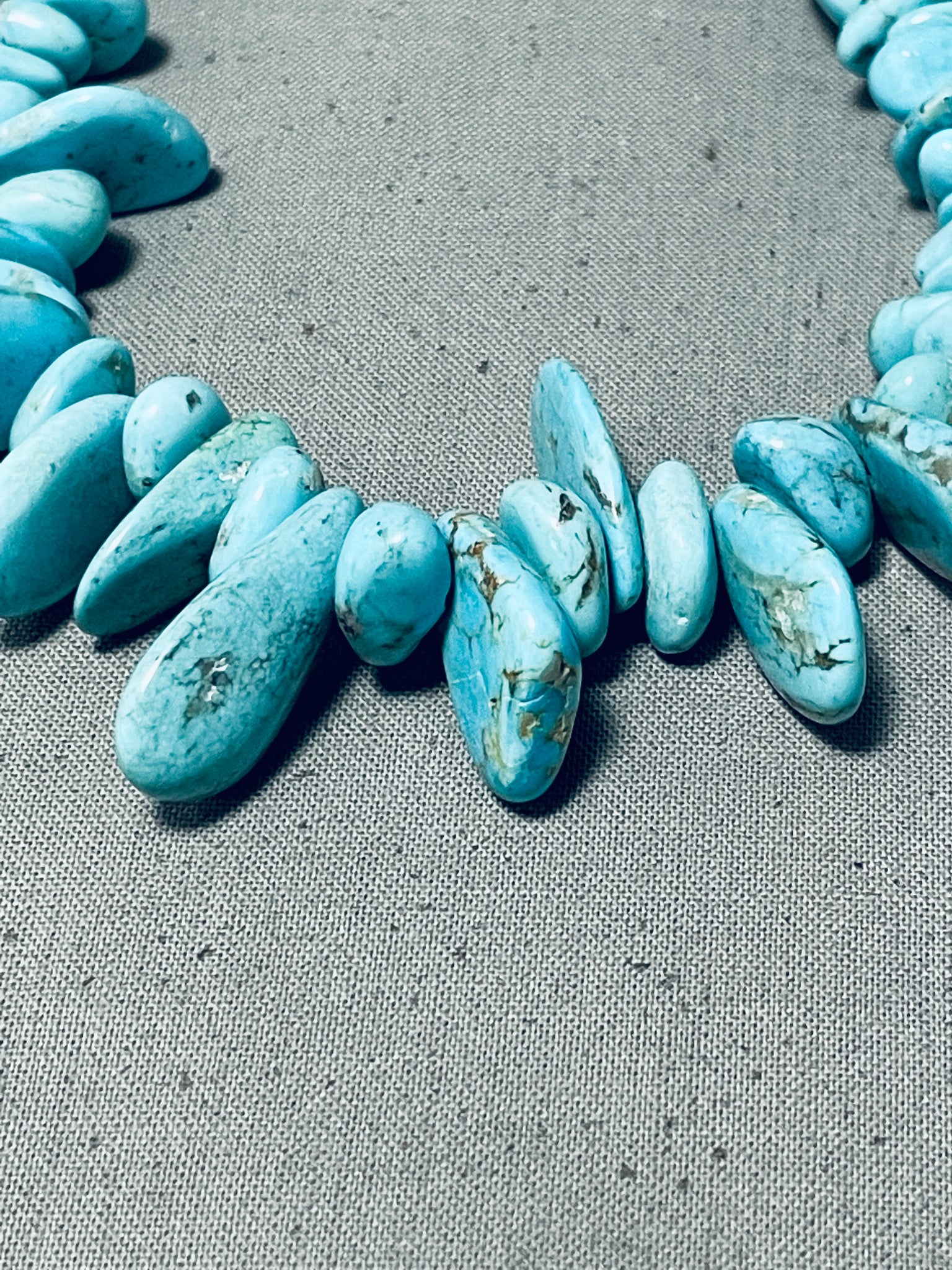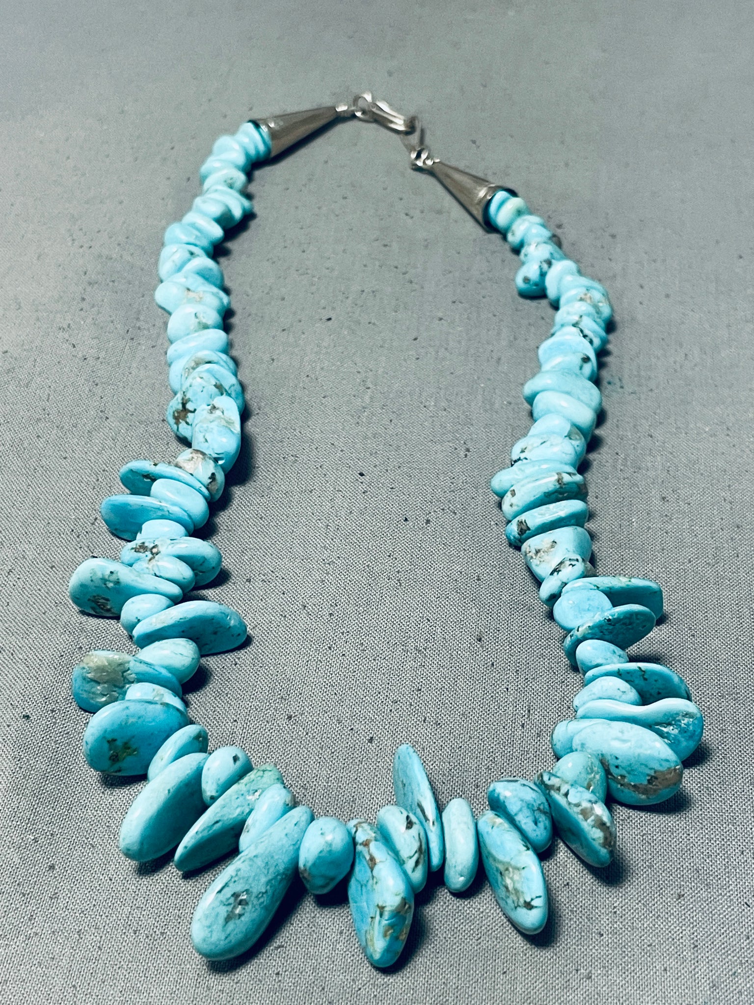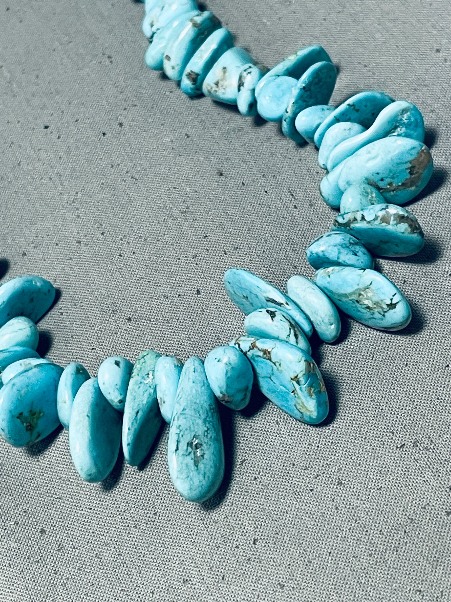 Beautiful Vintage Native American Navajo Kingman Turquoise Sterling Silv Er Necklace