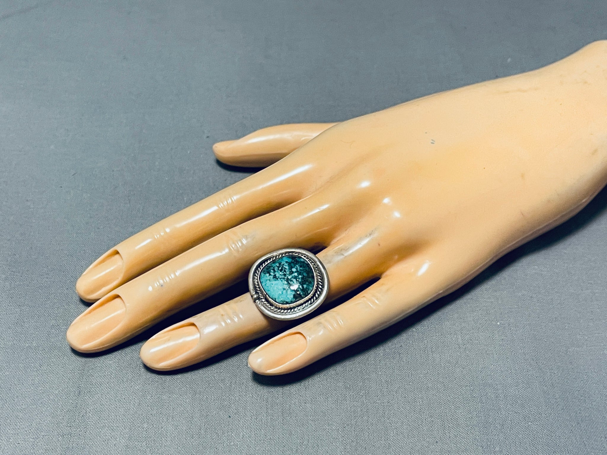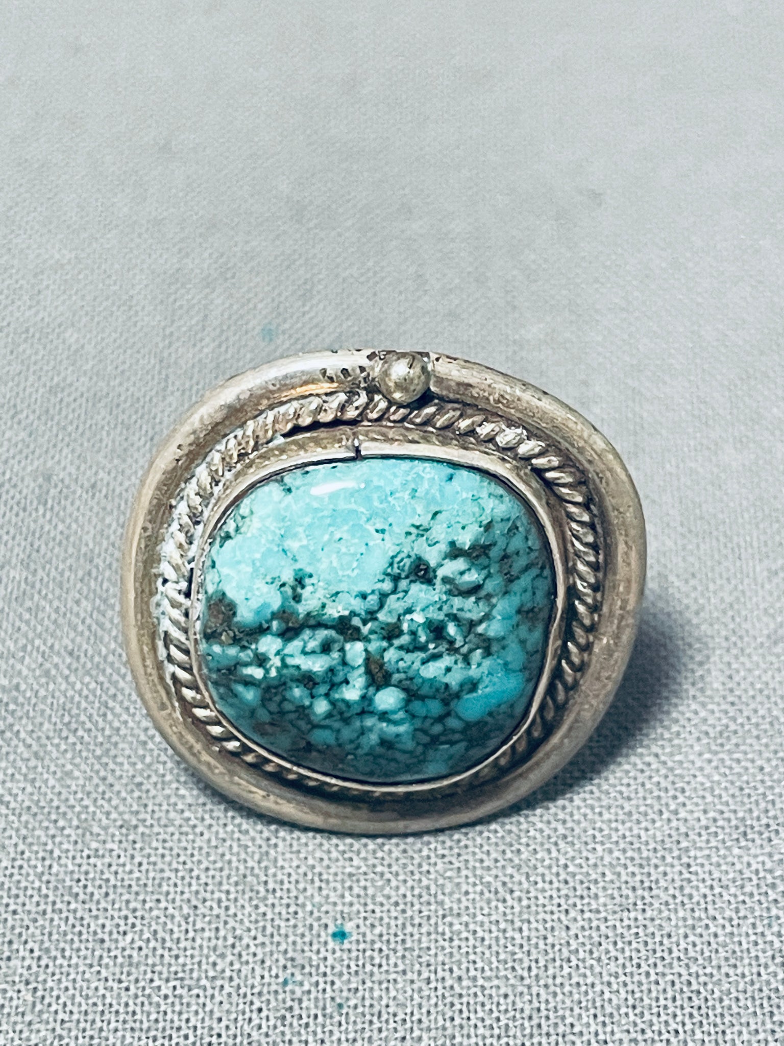 Beautiful Vintage Native American Navajo Kngman Turquoise Sterling Silver Ring
