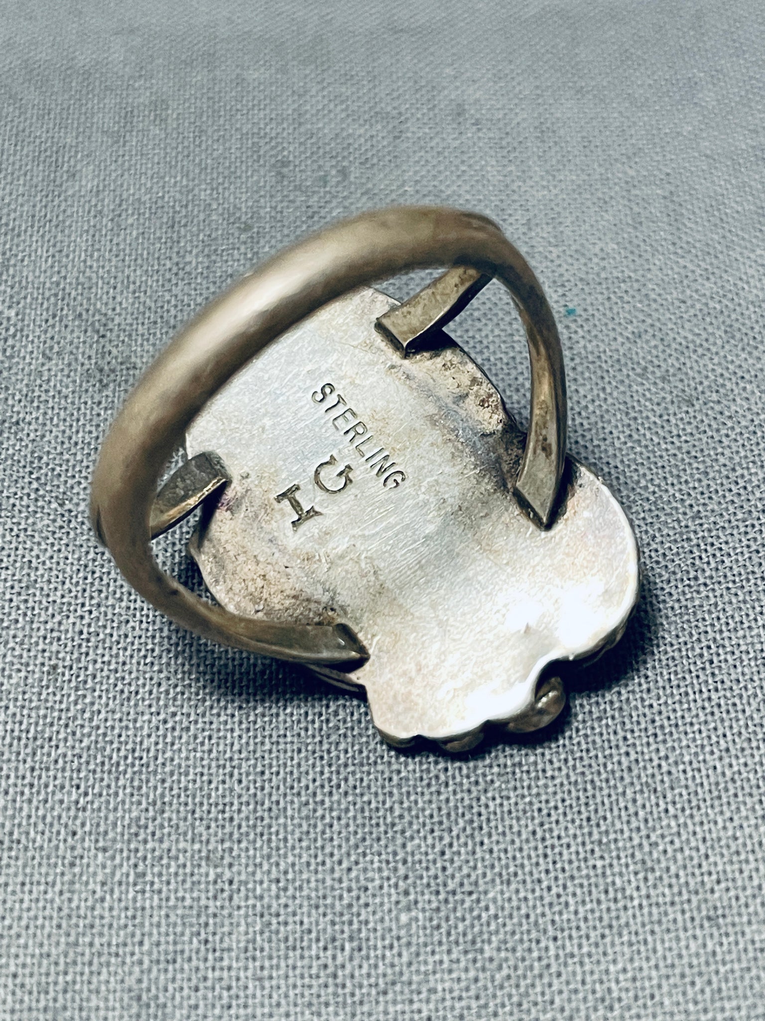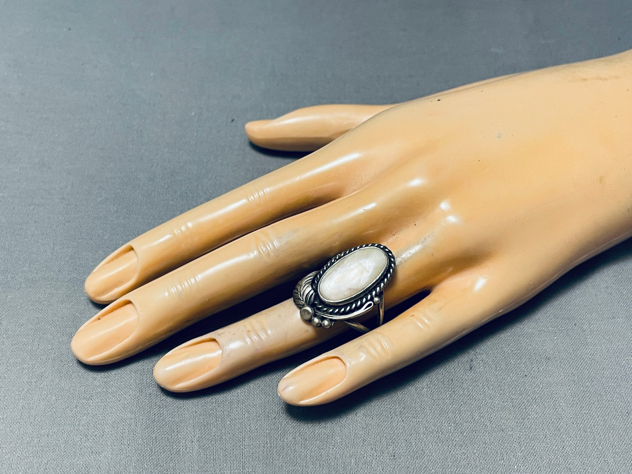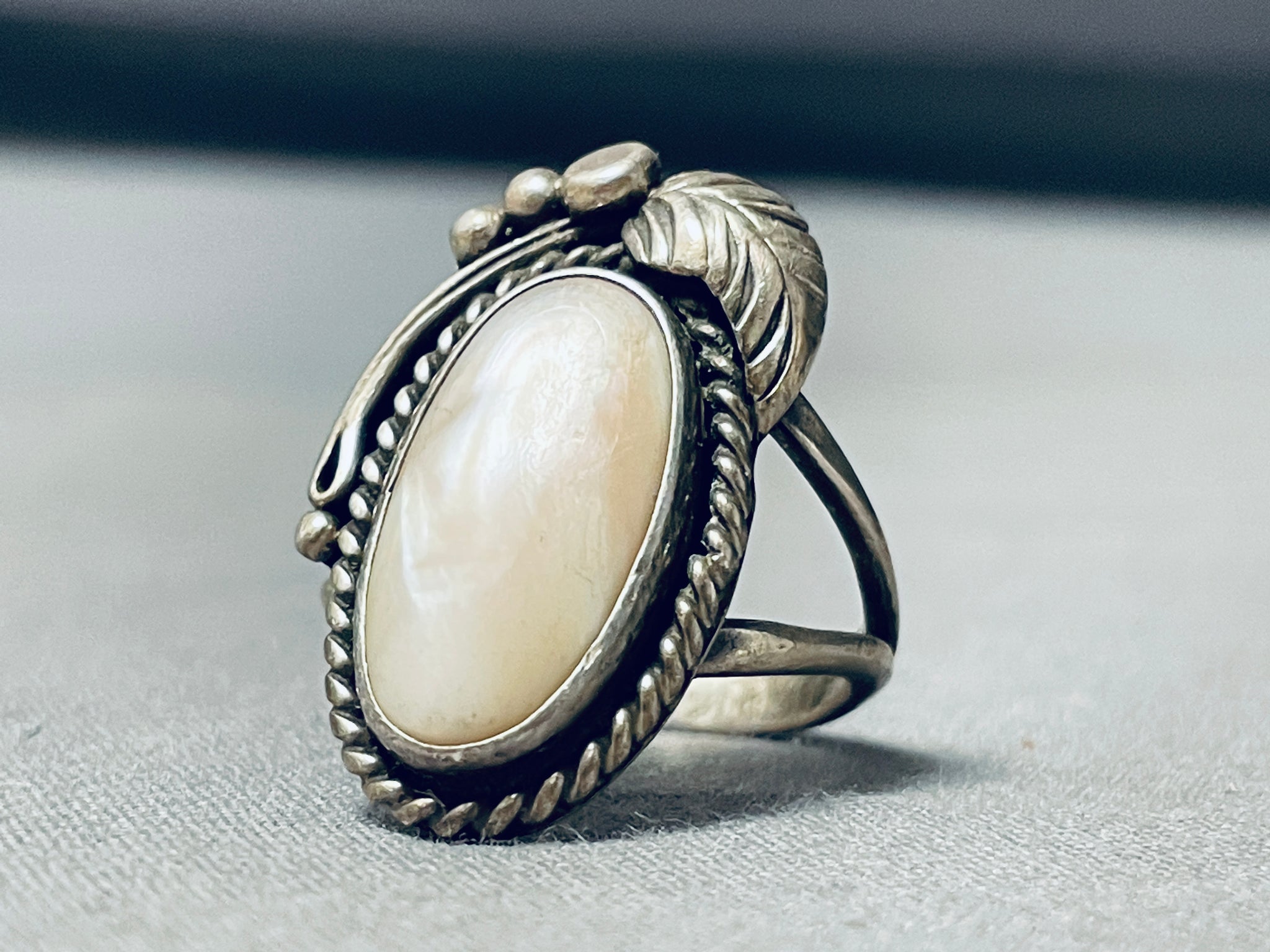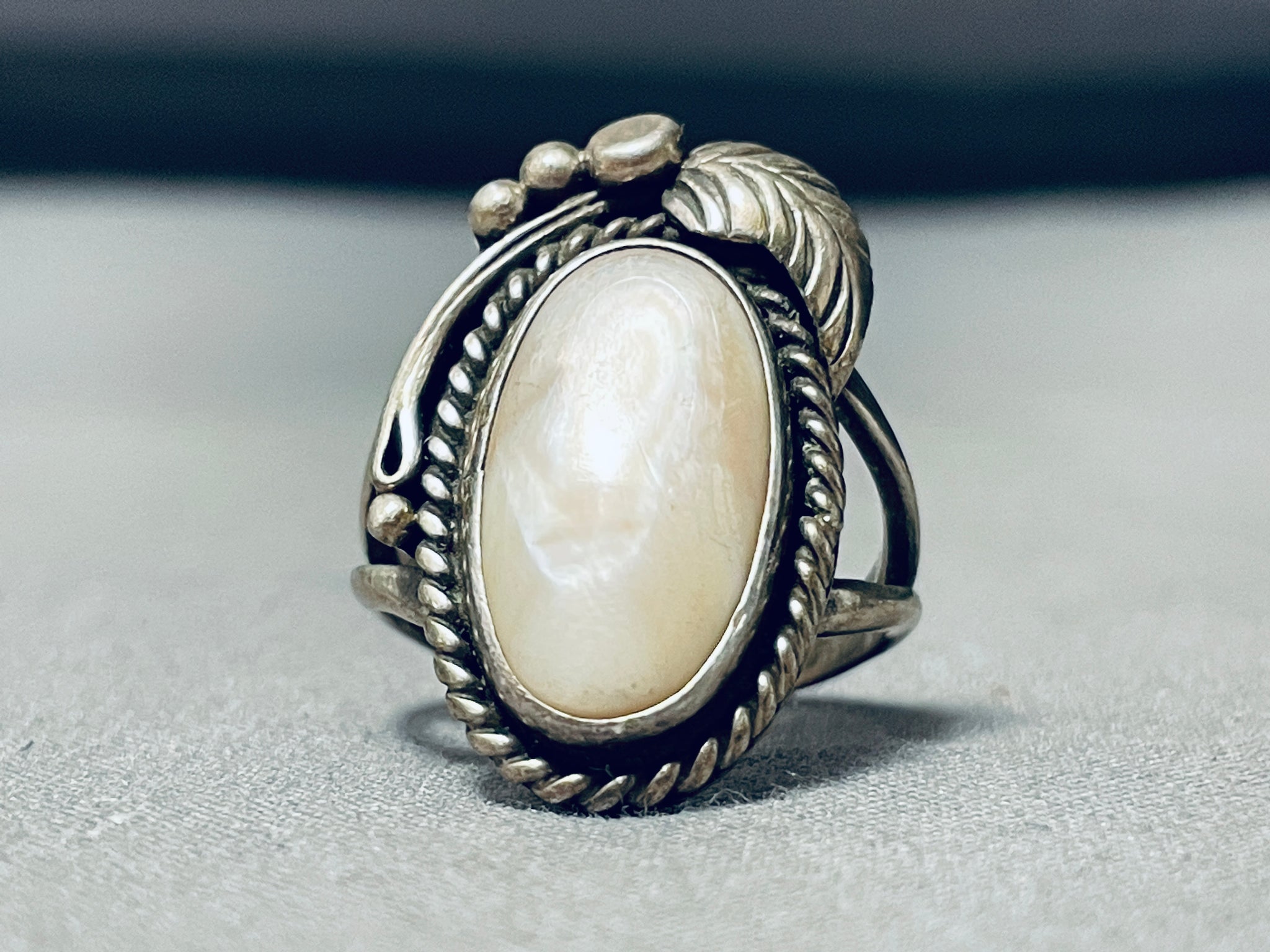 Beautiful Vintage Native American Navajo Pearl Sterling Silver Leaf Ring Old