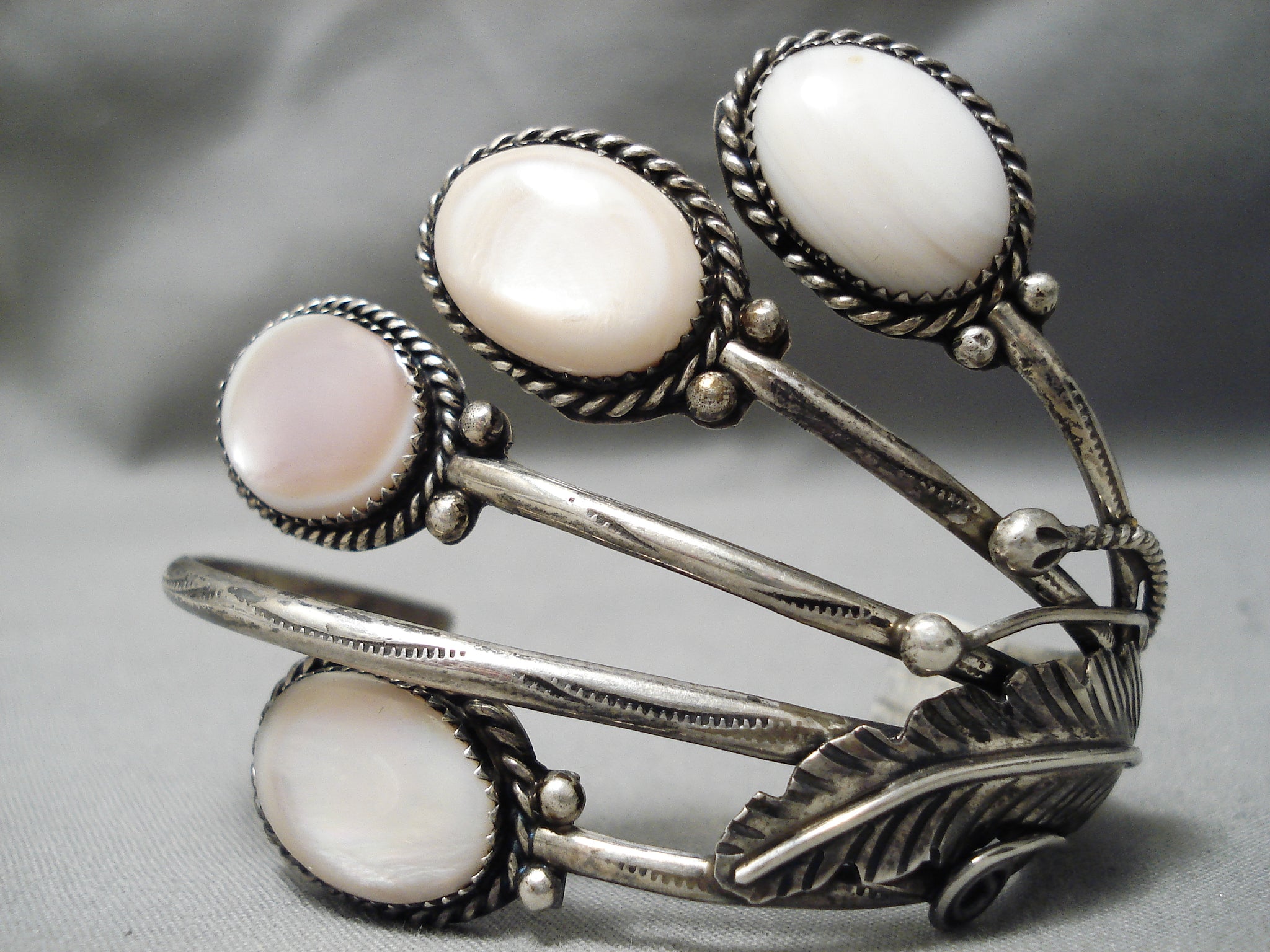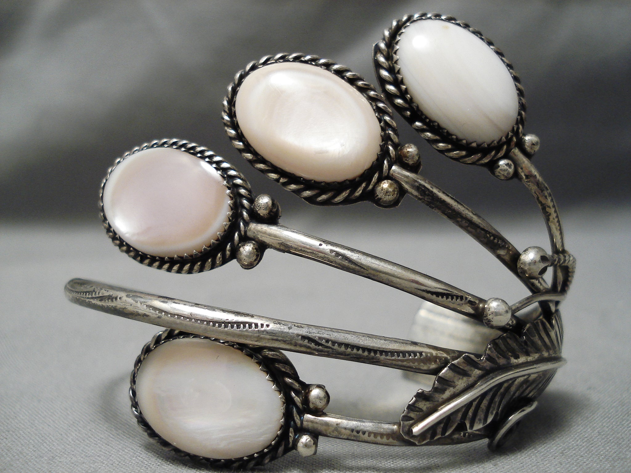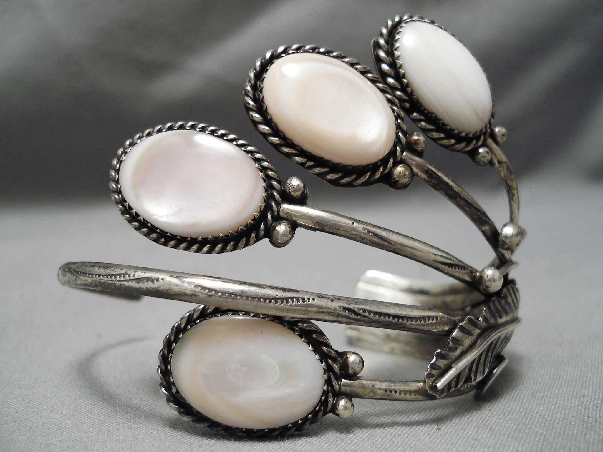 Beautiful Vintage Native American Navajo Pink Shell Sterling Silver Bracelet Old
