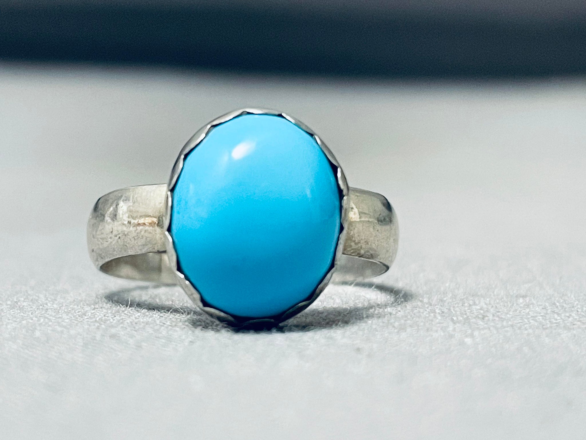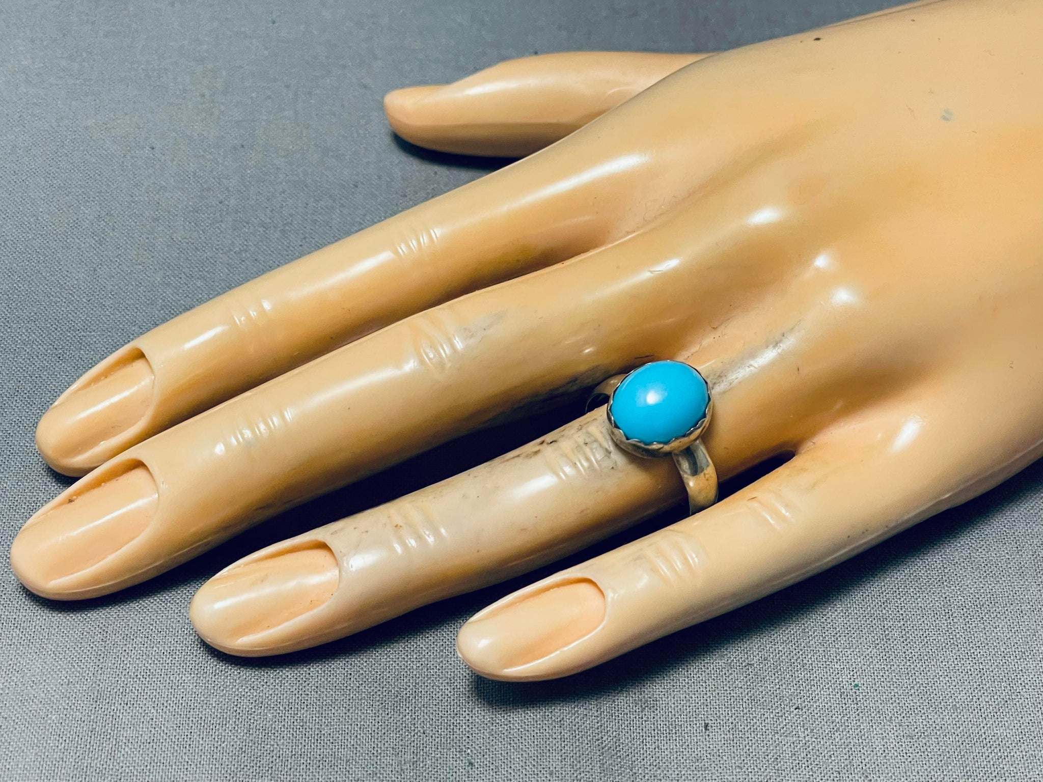 Beautiful Vintage Native American Navajo Sleeping Beauty Turquoise Sterling Silver Ring