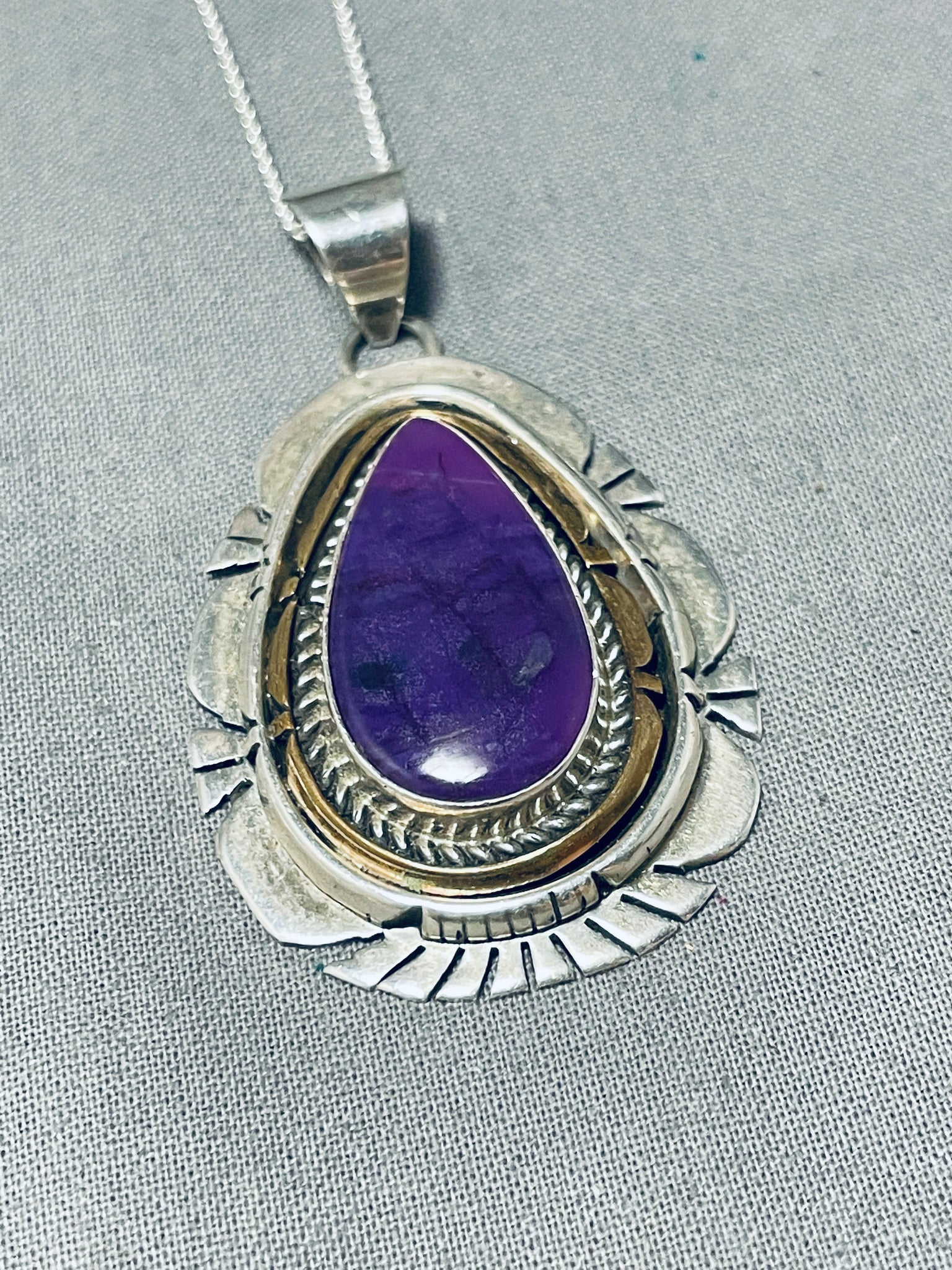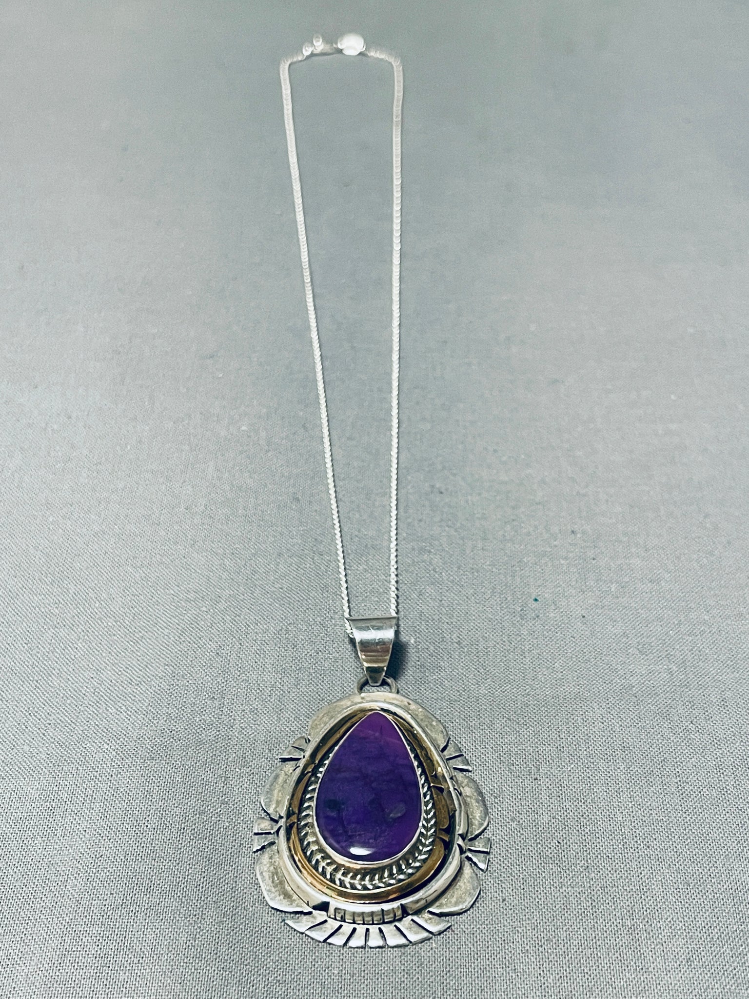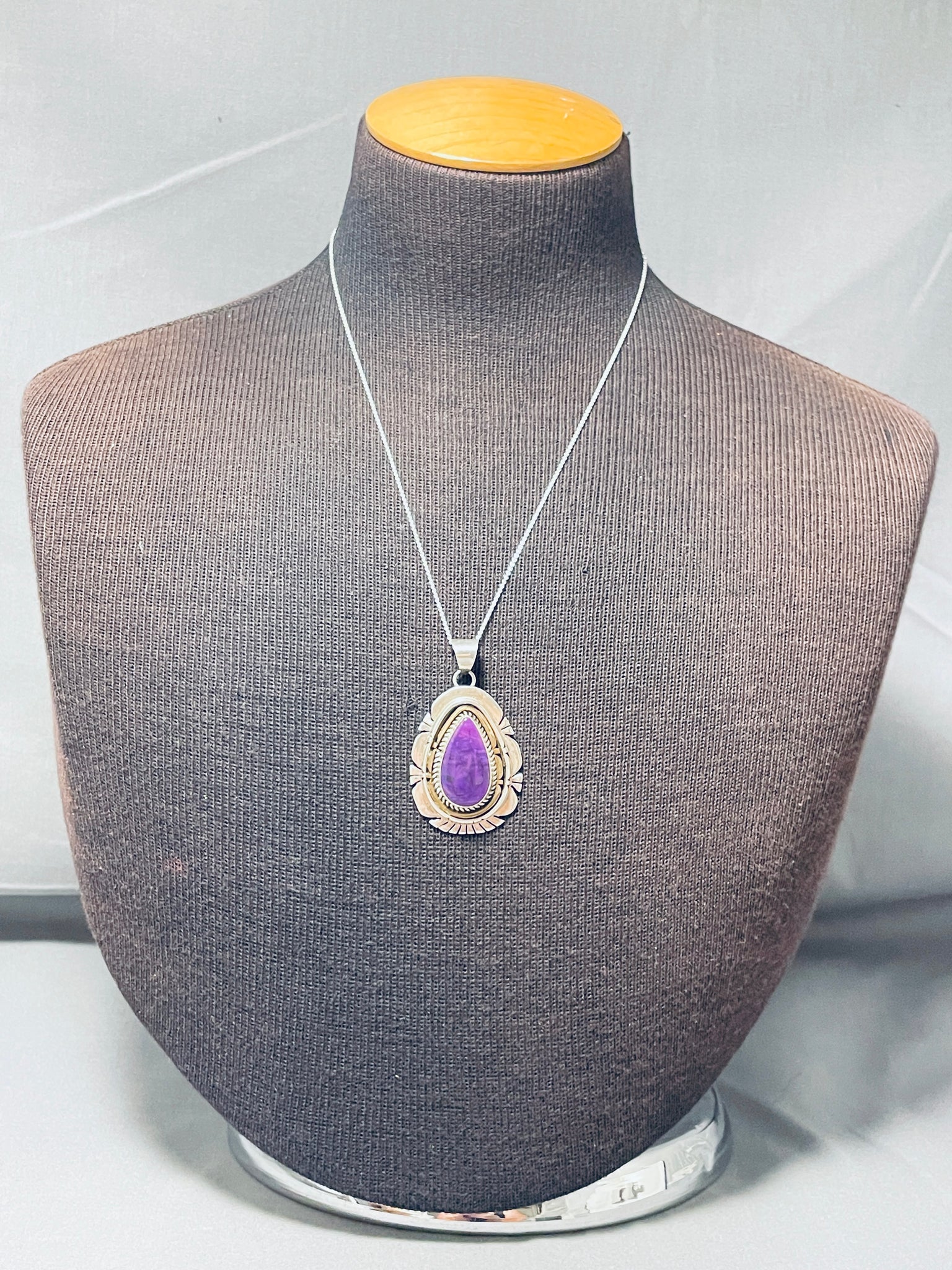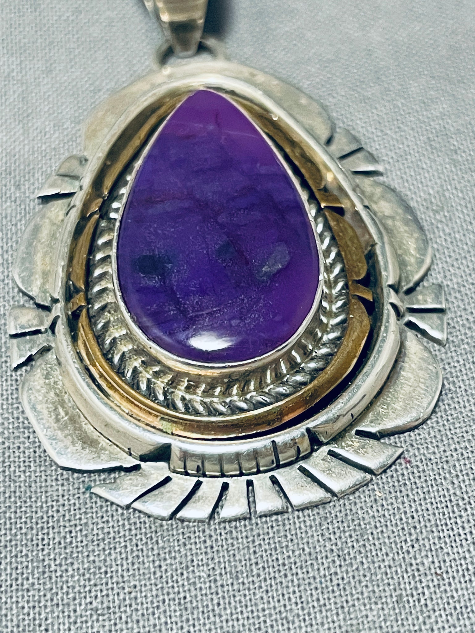 Beautiful Vintage Native American Navajo Sugulite Sterling Silver Necklace