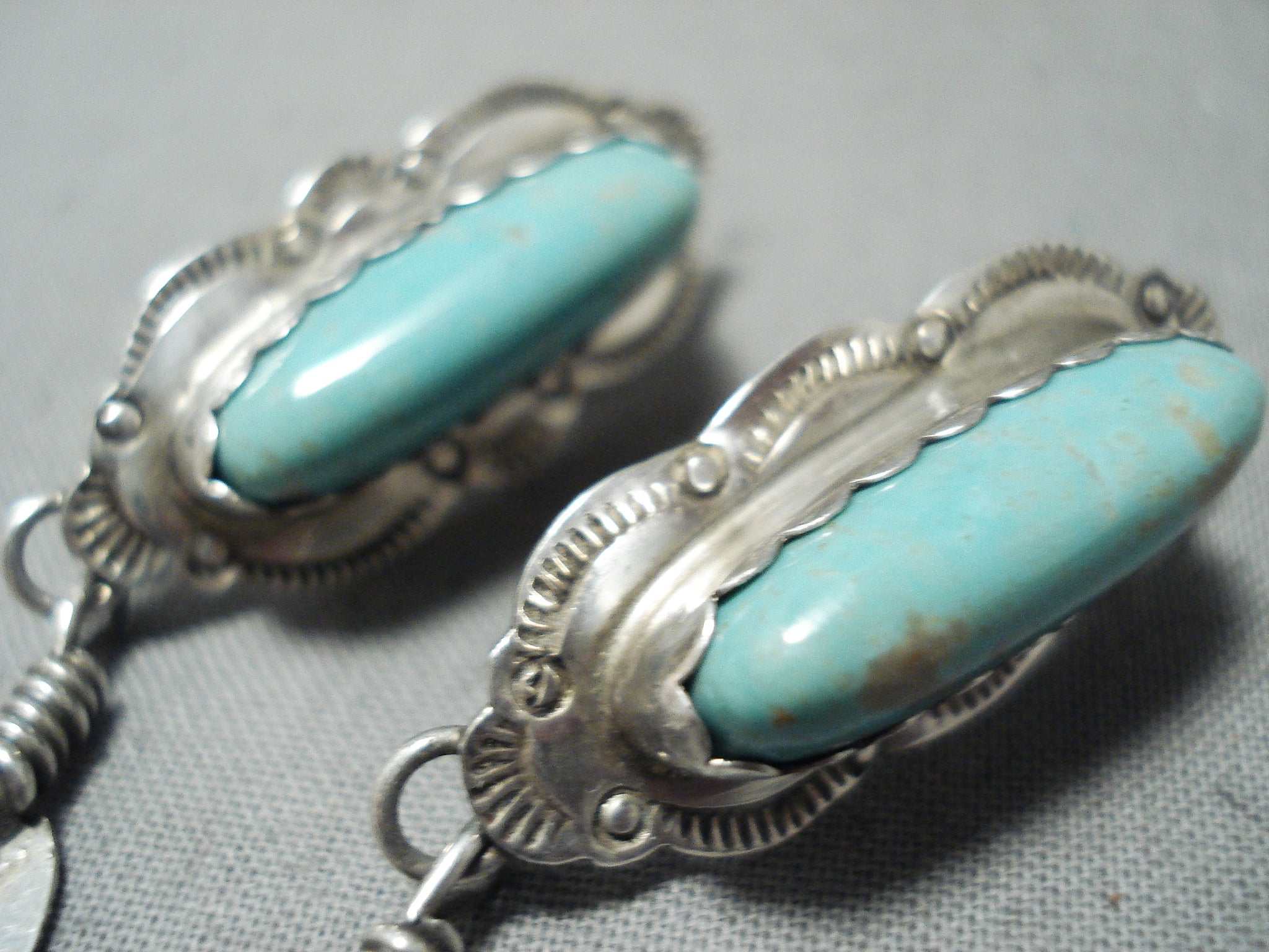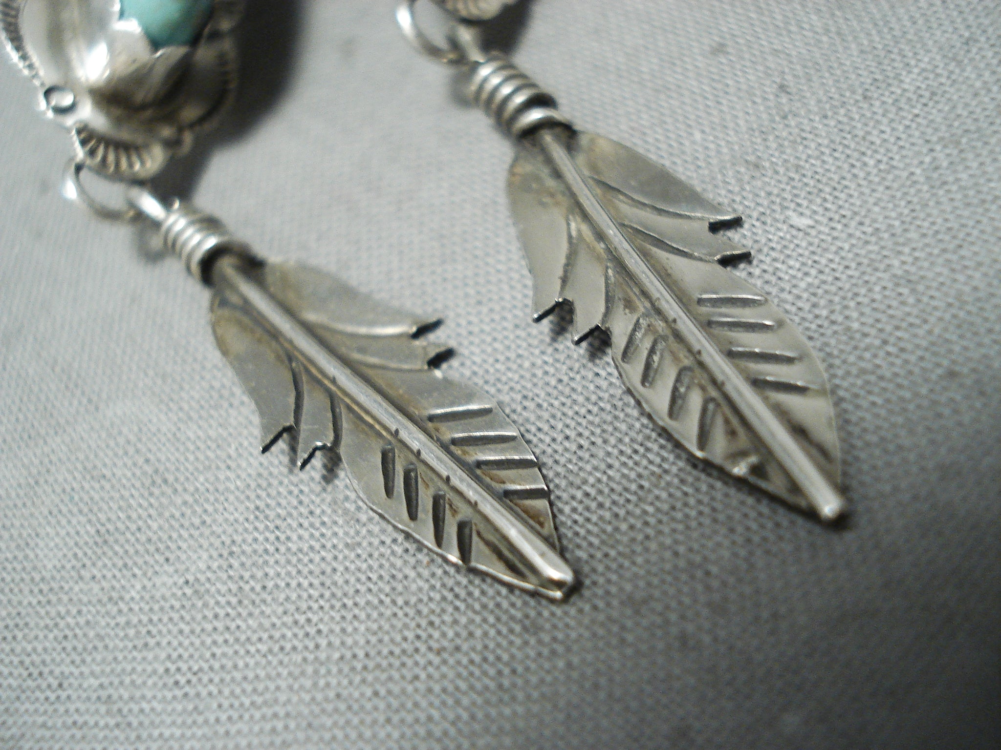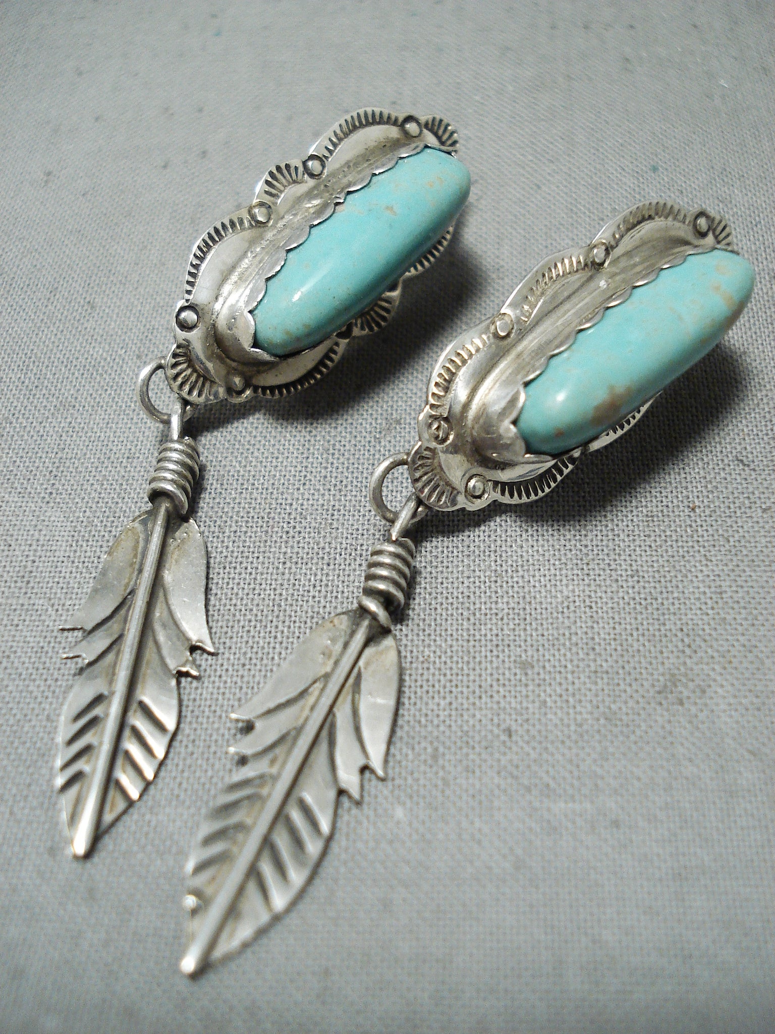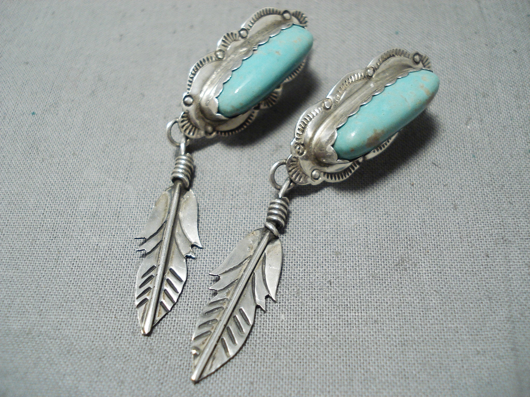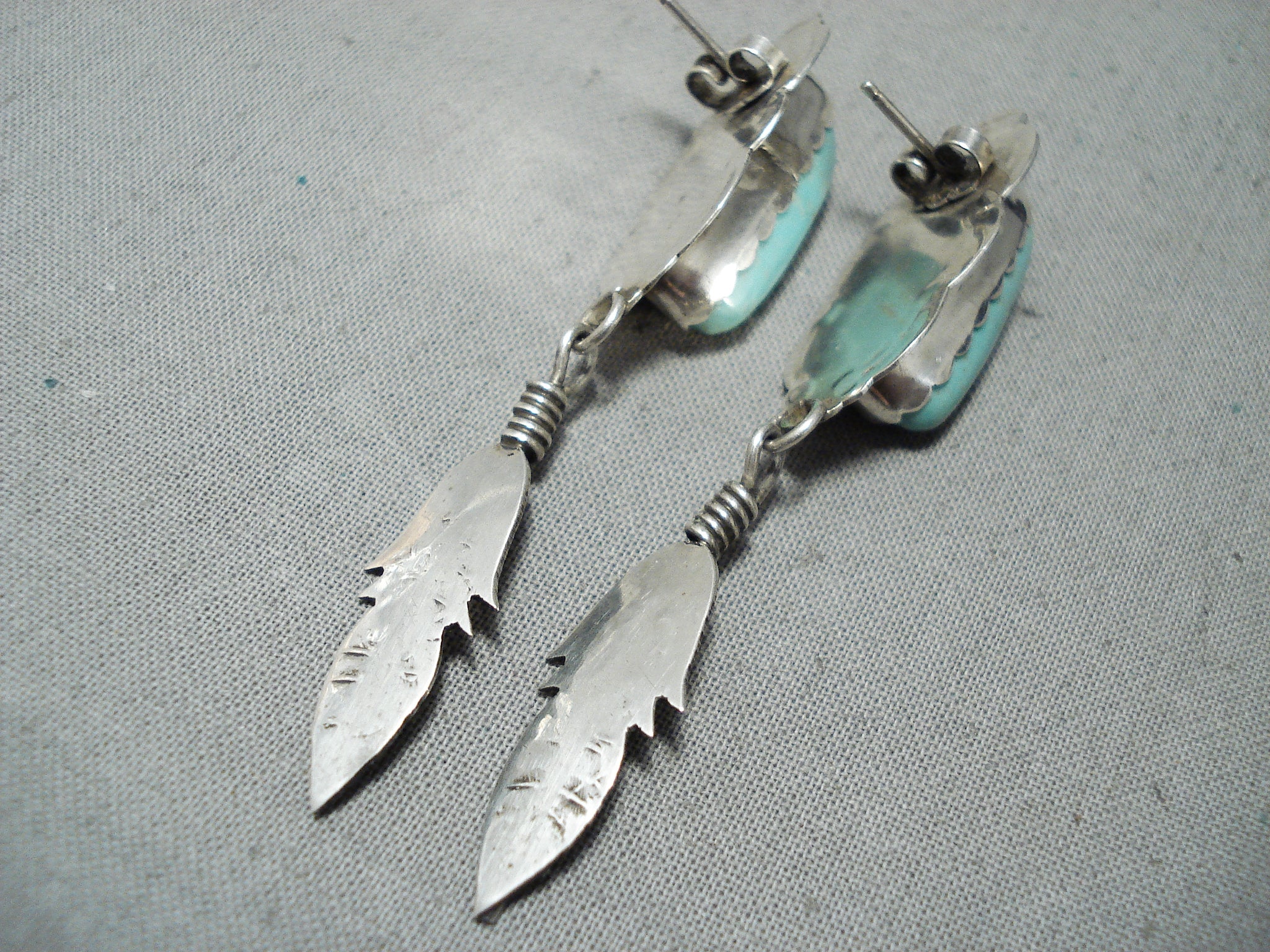 Beautiful Vintage Native American Navajo Turquoise Feather Sterling Silver Earrings