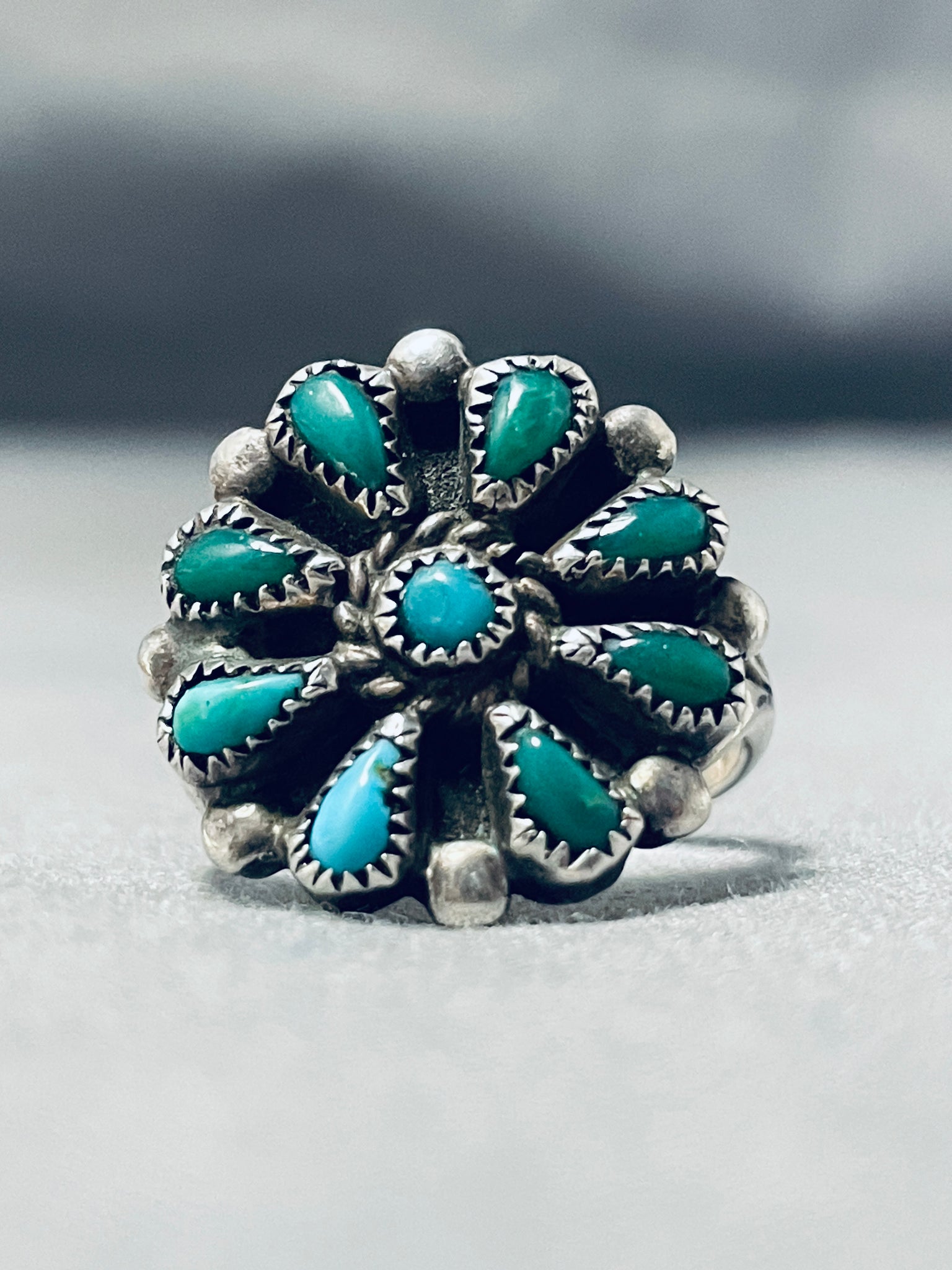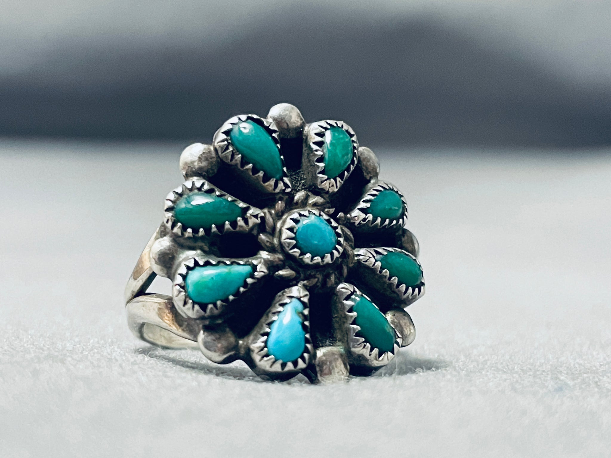 Beautiful Vintage Native American Navajo Turquoise Sterling Silver Cluster Ring