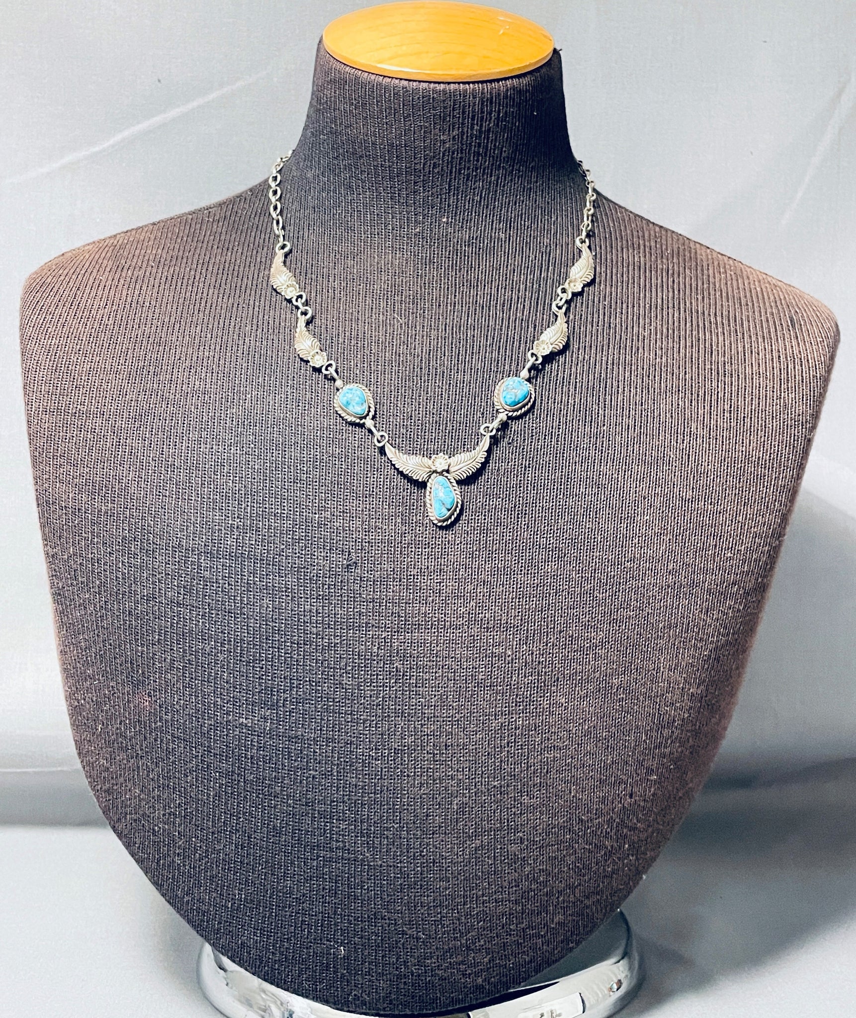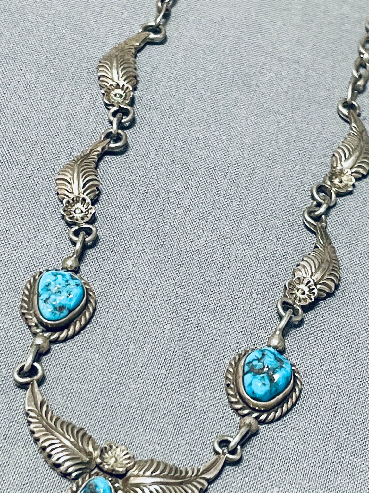 Beautiful Vintage Native American Navajo Turquoise Sterling Silver Necklace Signed