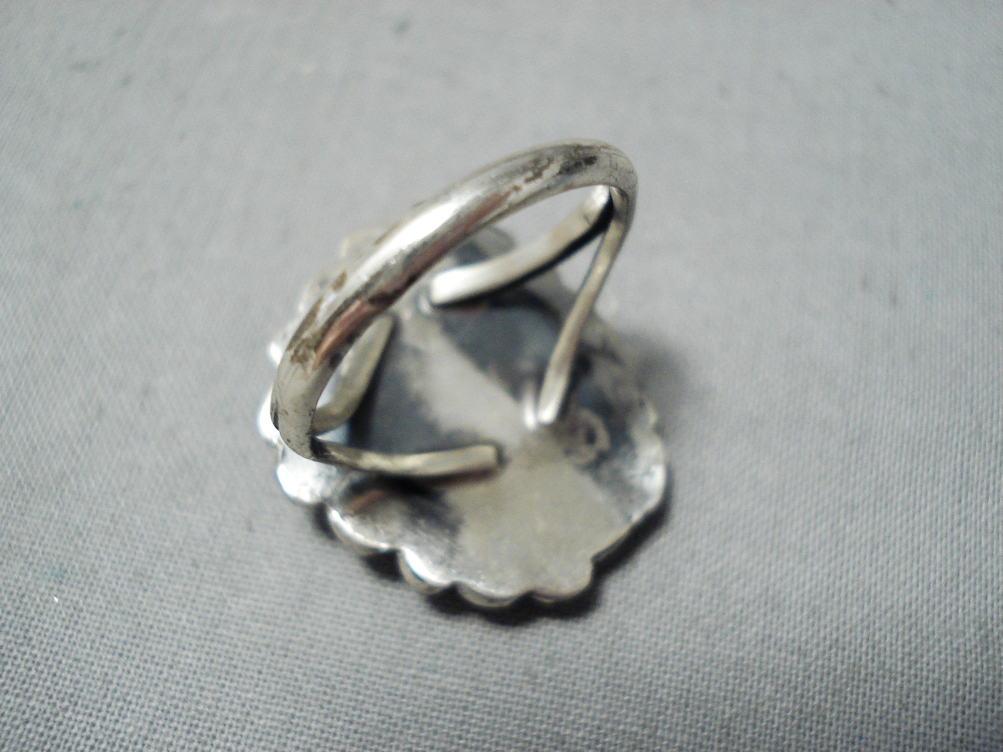 Beautiful Vintage Native American Navajo Turquoise Sterling Silver Swirl Ring Old
