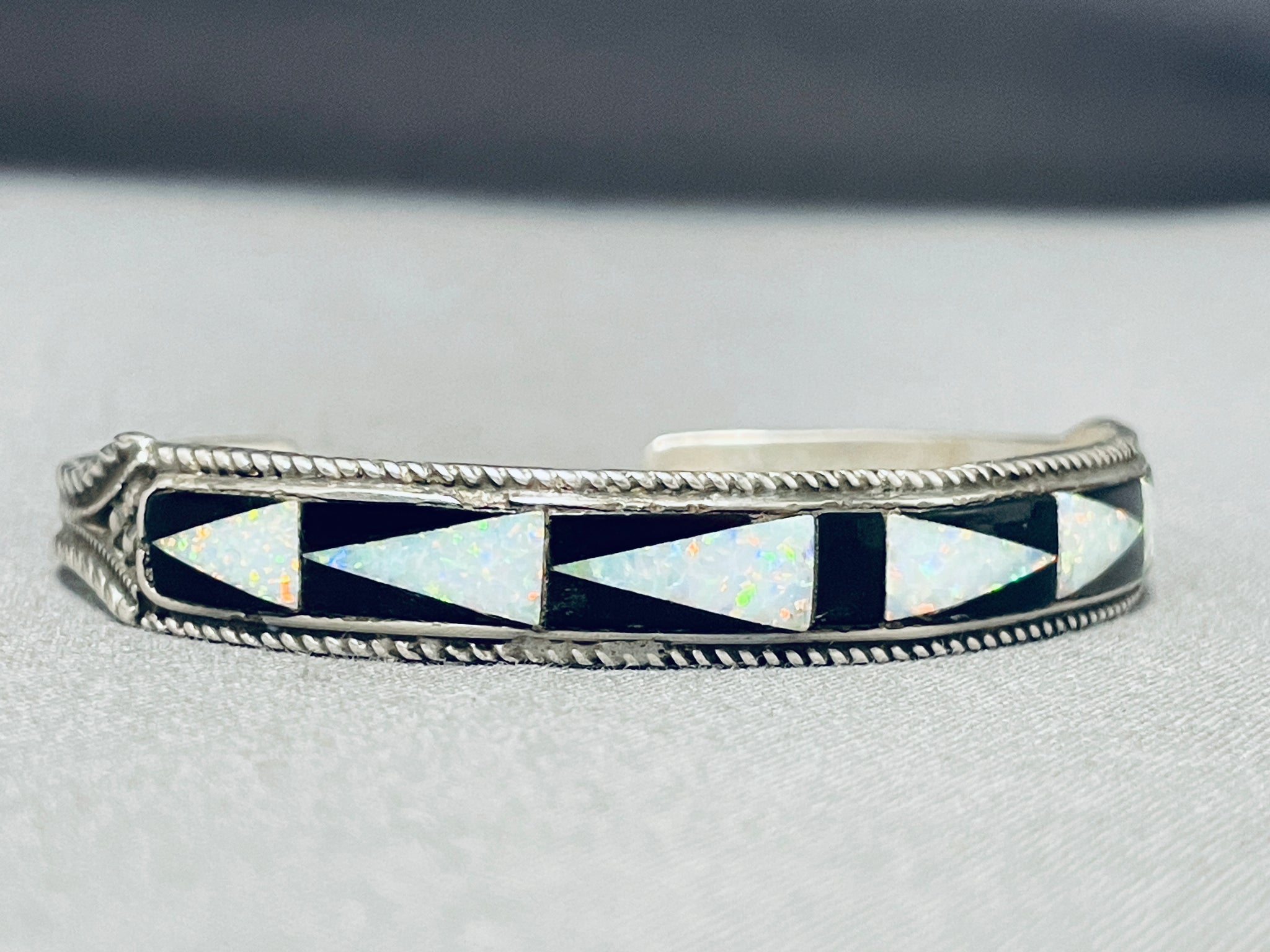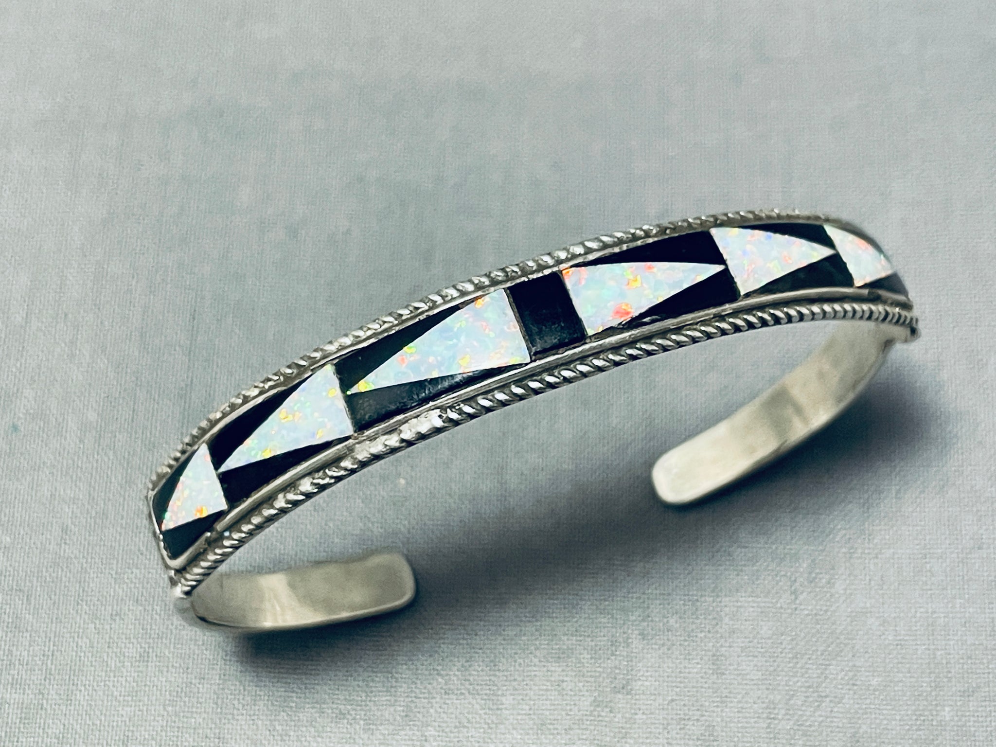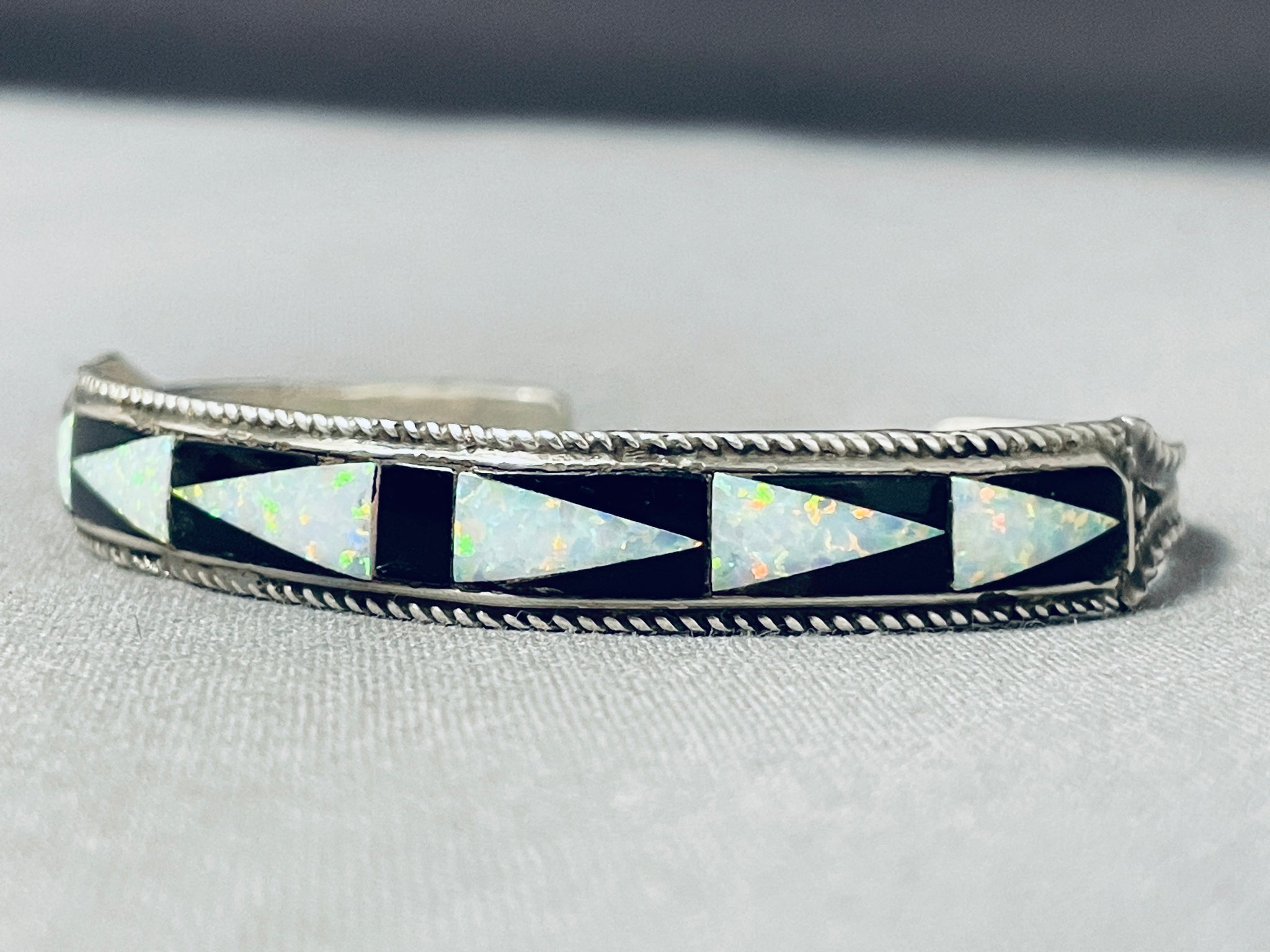 Beautiful Vintage Native American Zuni Opal Sterling Silver Bracelet Signed Joe Zunie
