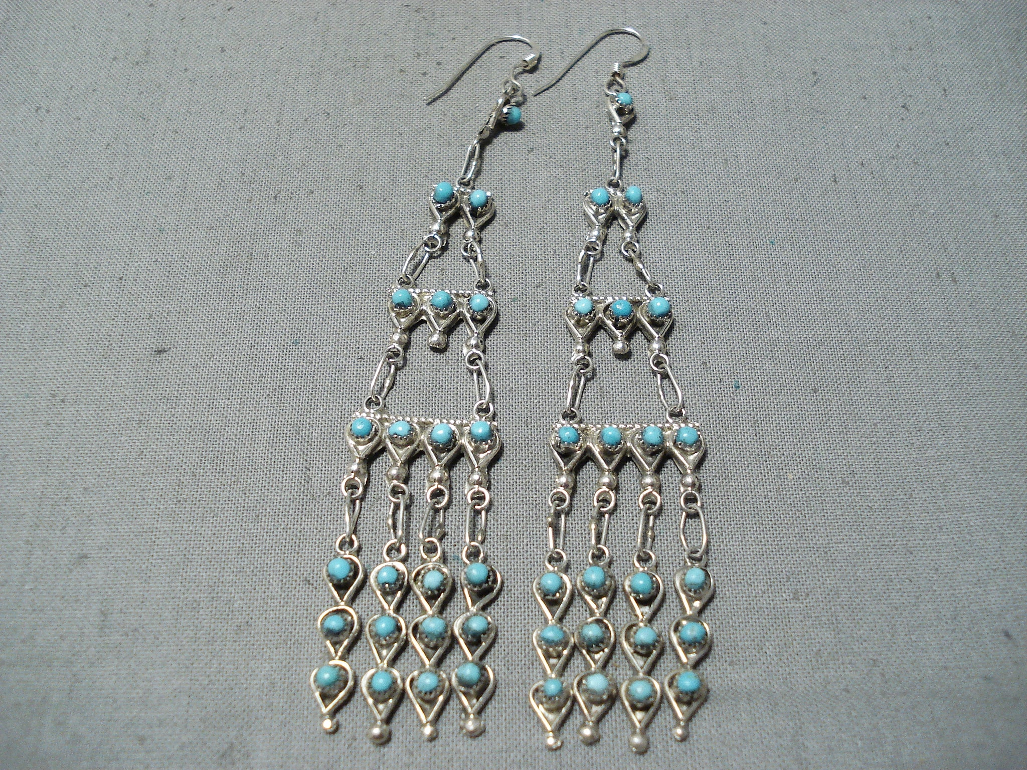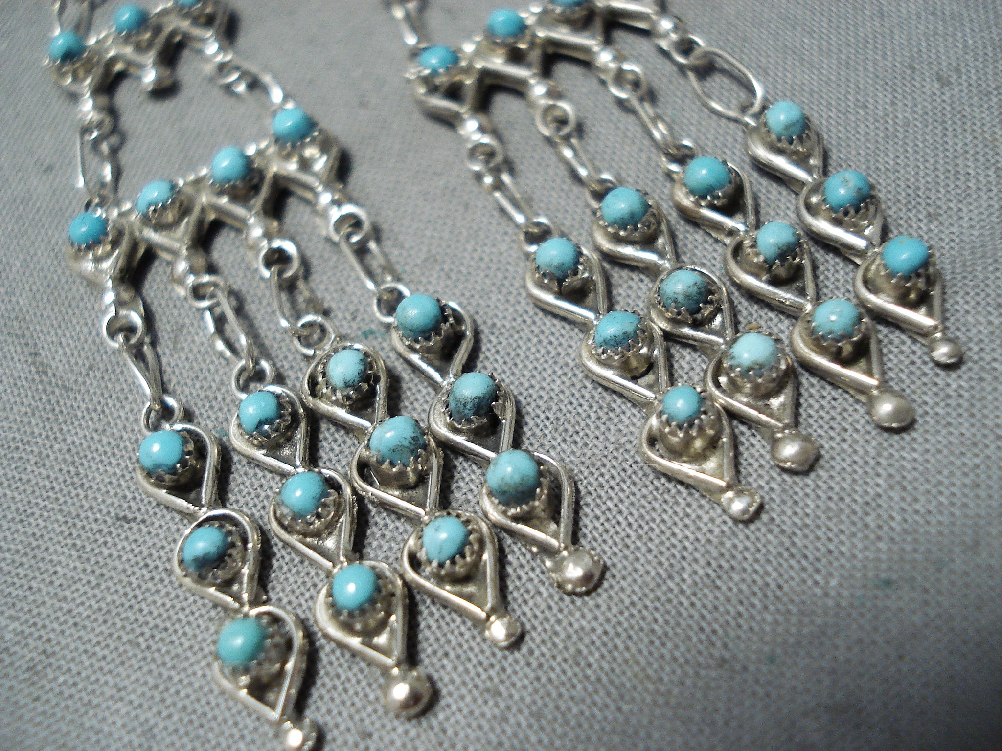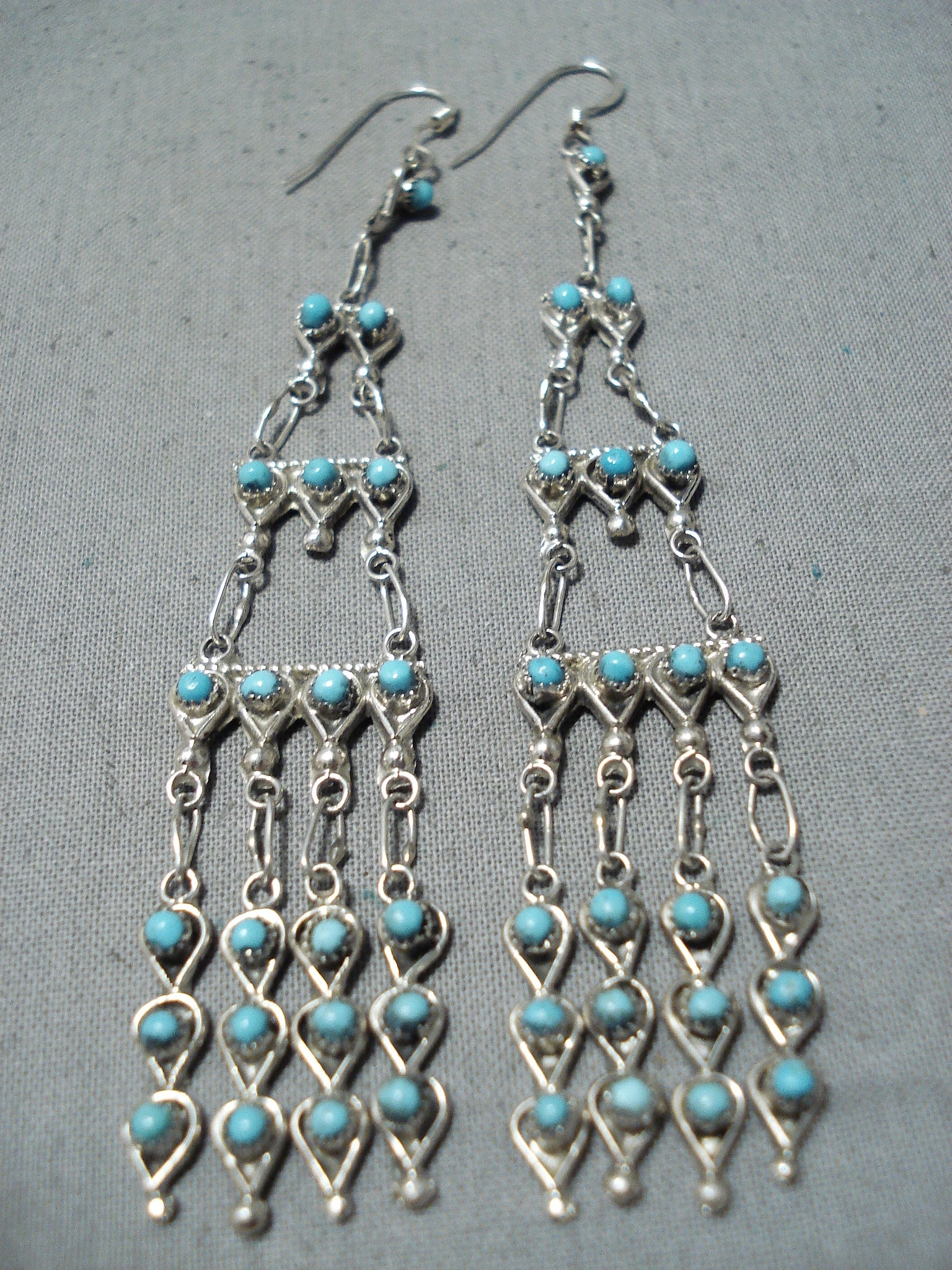 Beautiful Vintage Native American Zuni Turquoise Sterling Silver Chandelier Earrings