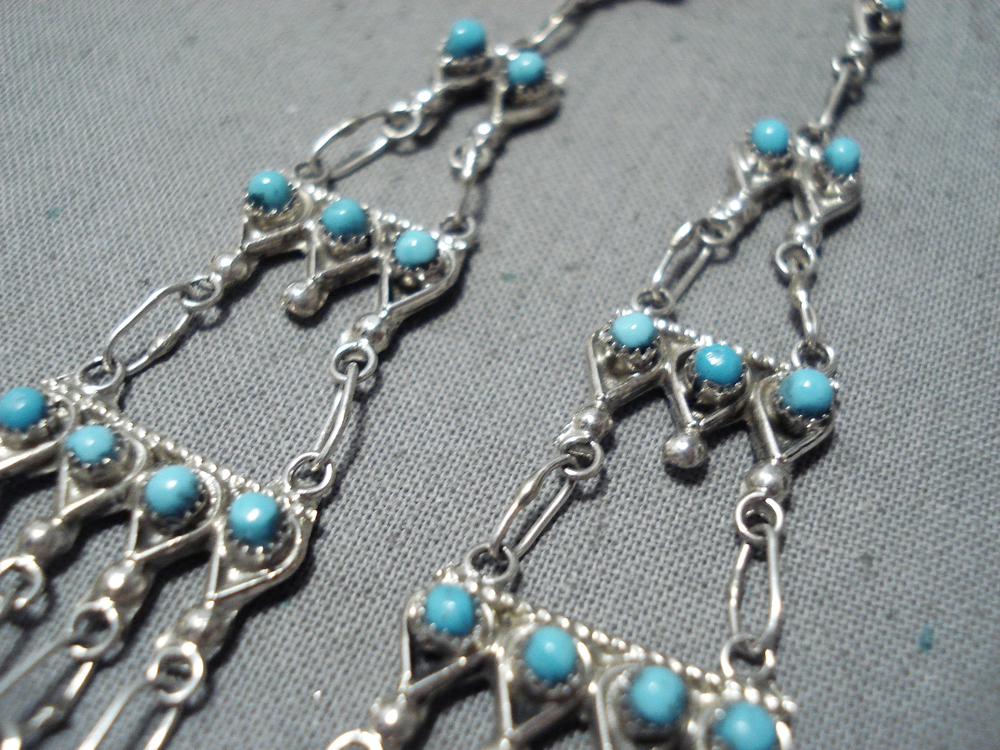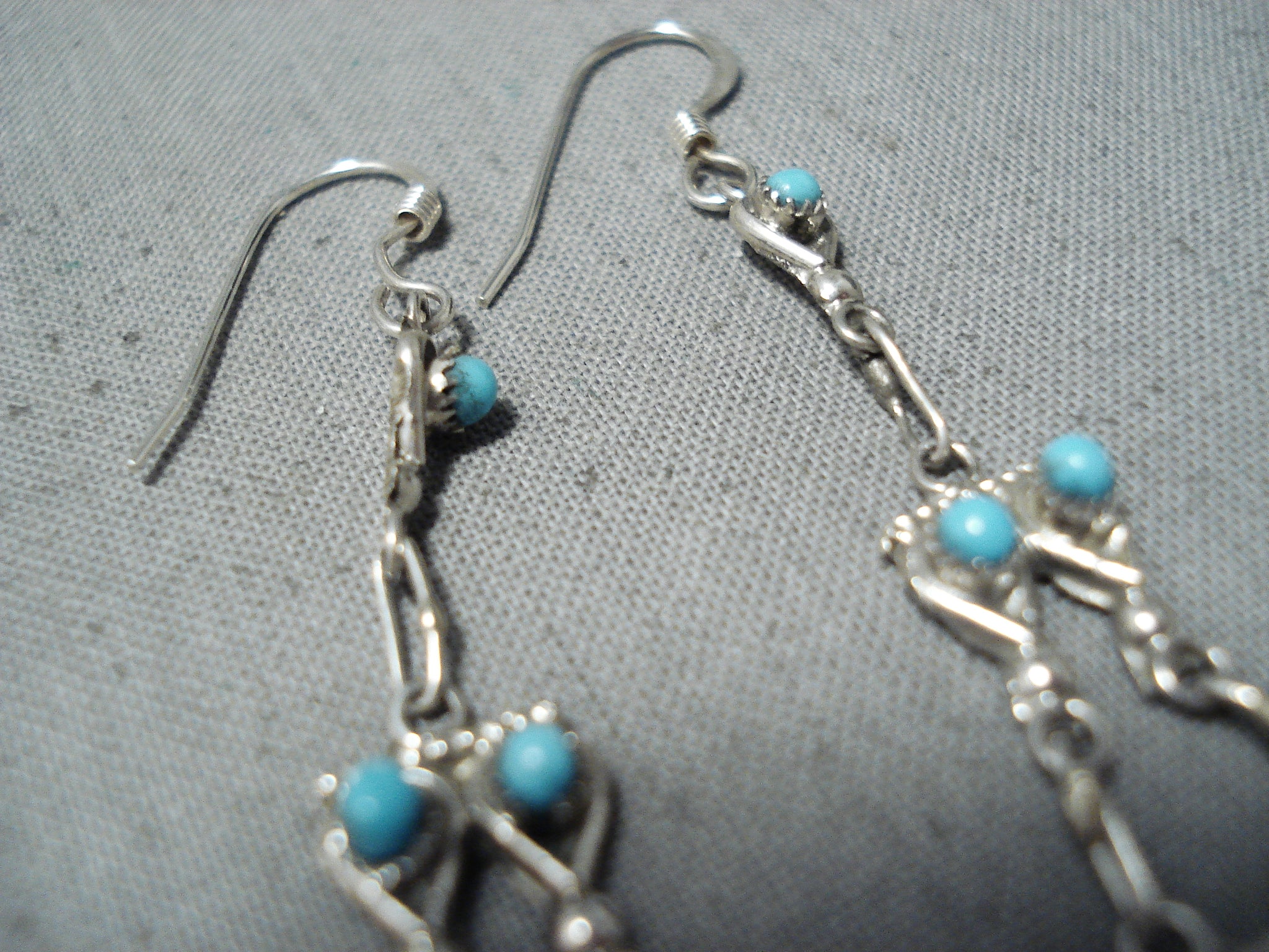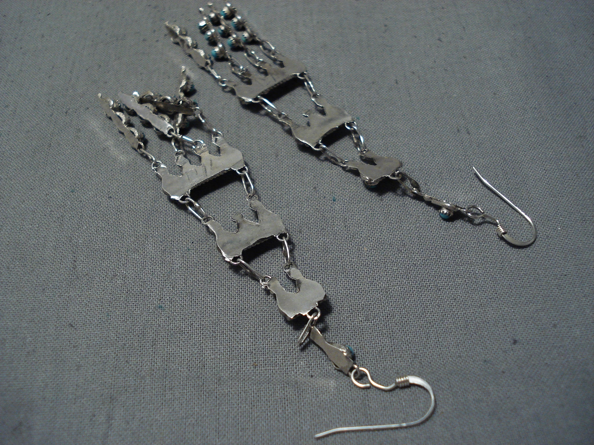 Beautiful Vintage Native American Zuni Turquoise Sterling Silver Chandelier Earrings