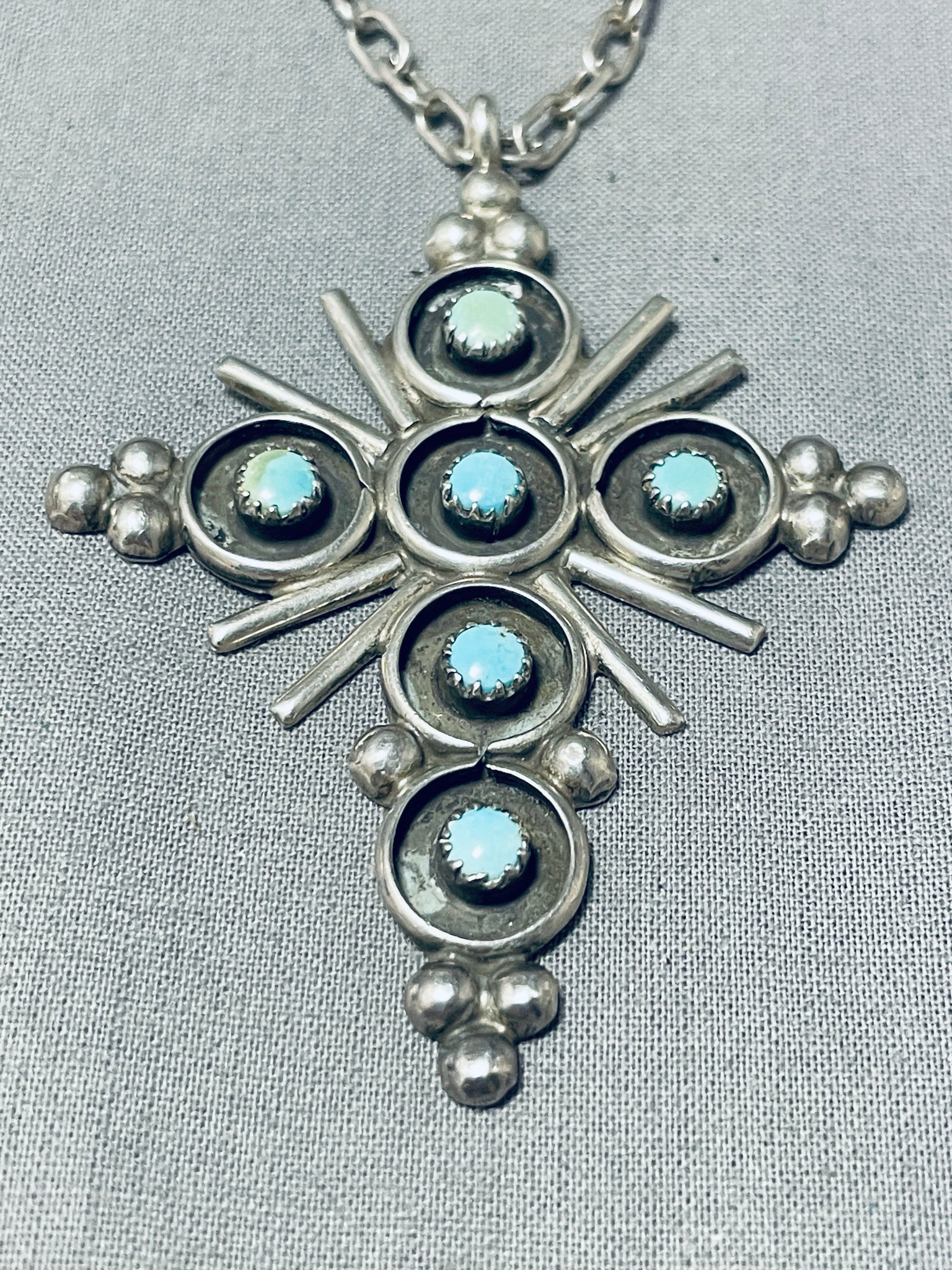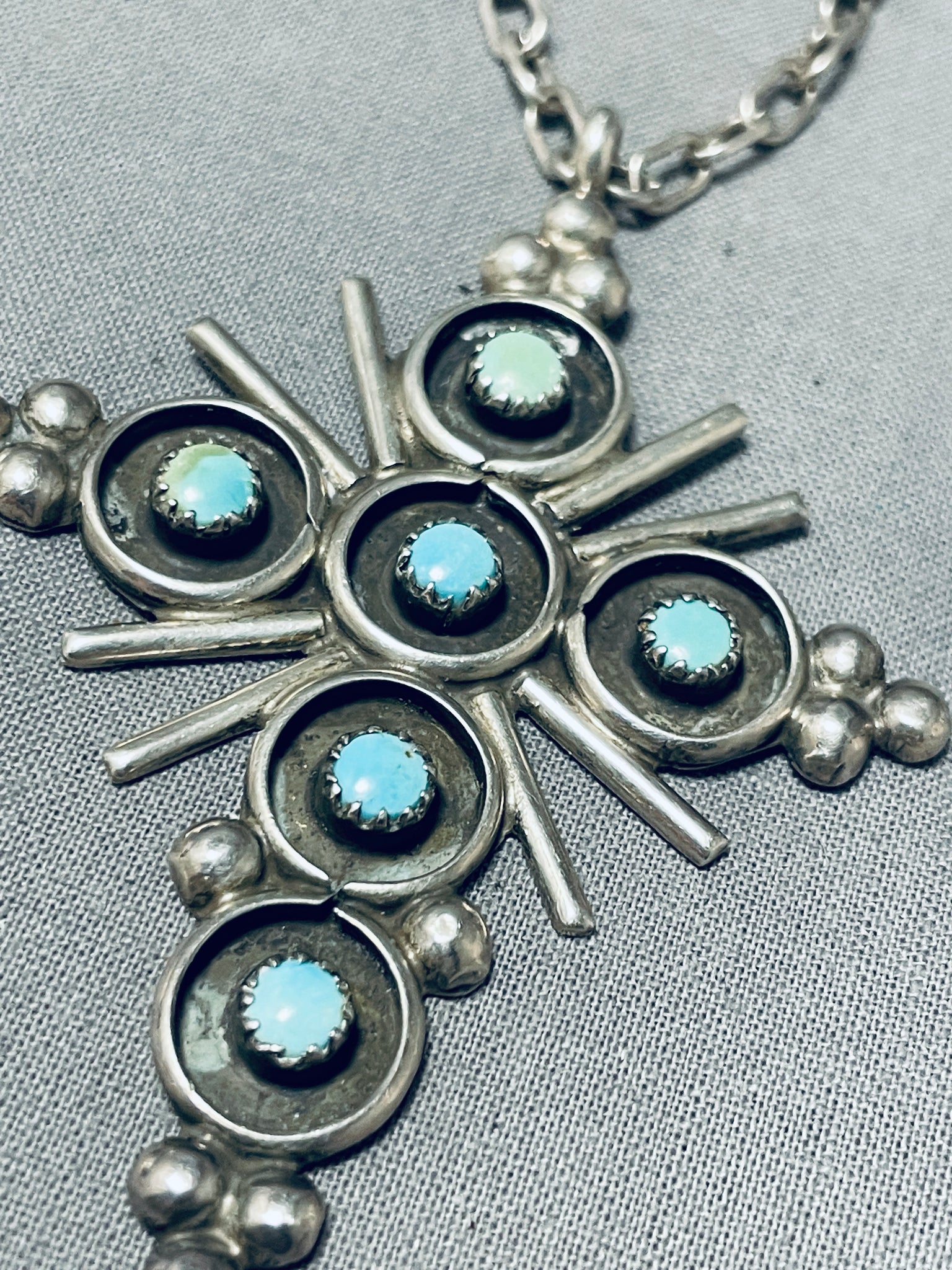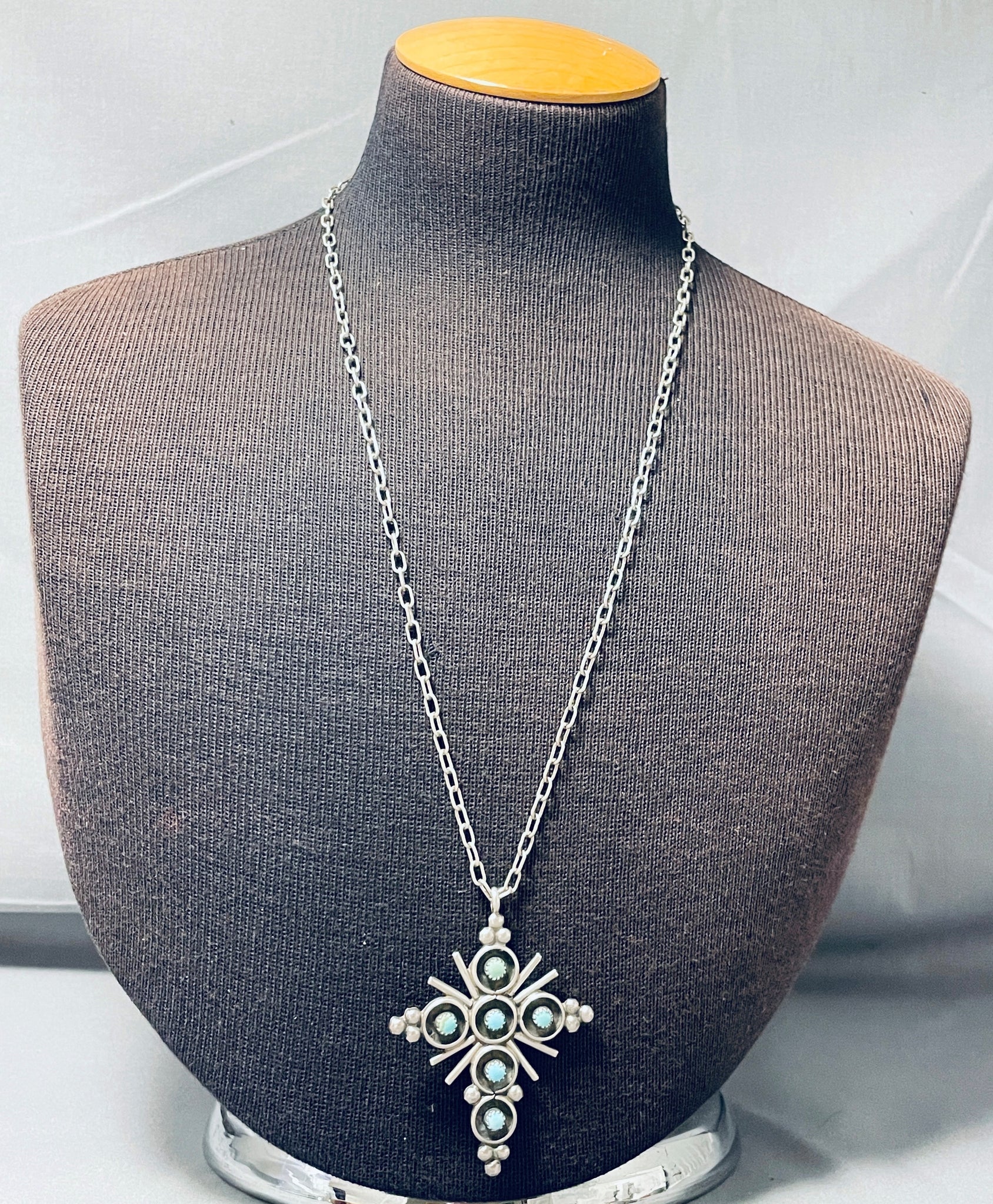 Beautiful Vintage Native American Zuni Turquoise Sterling Silver Cross Necklace