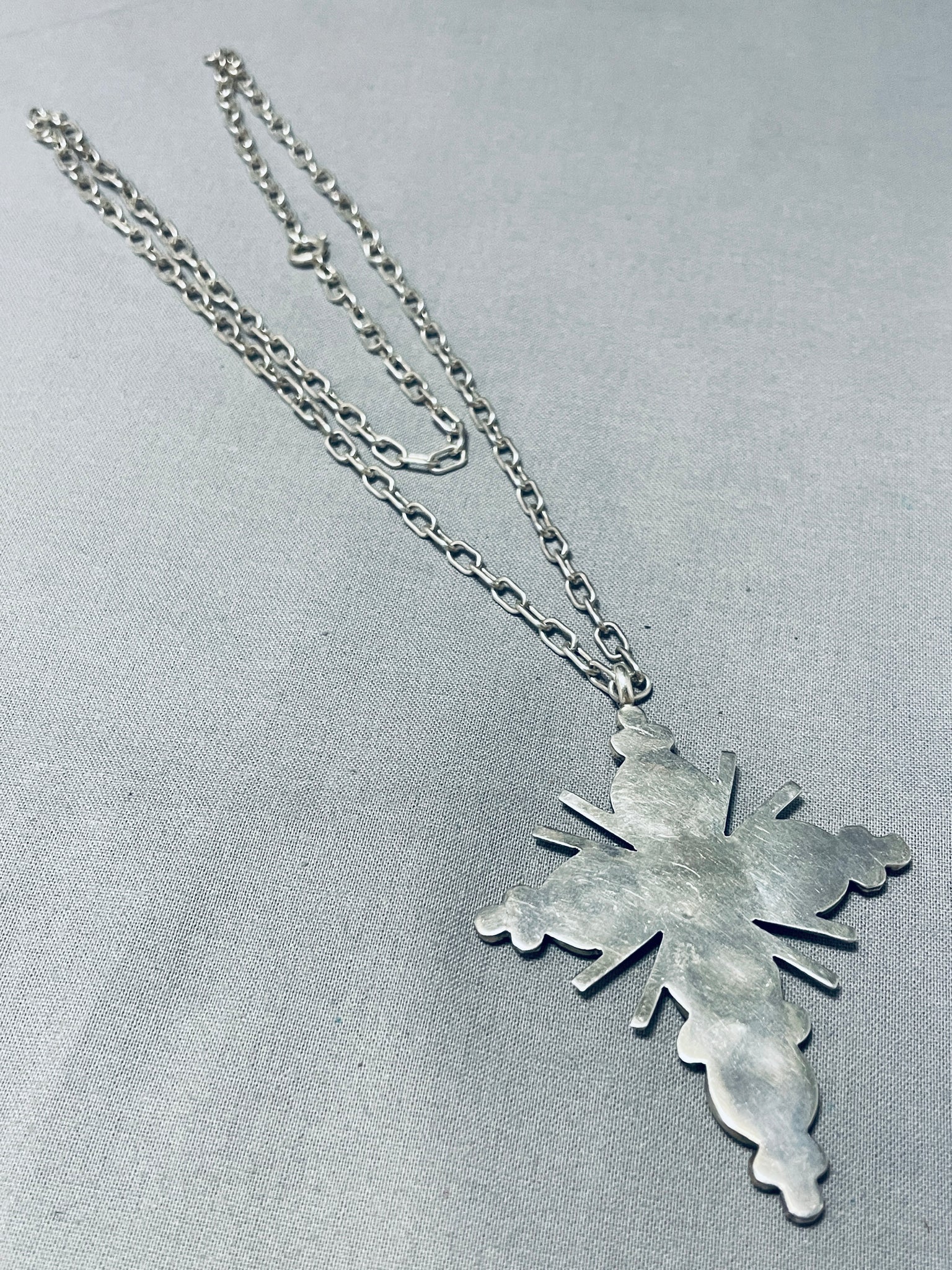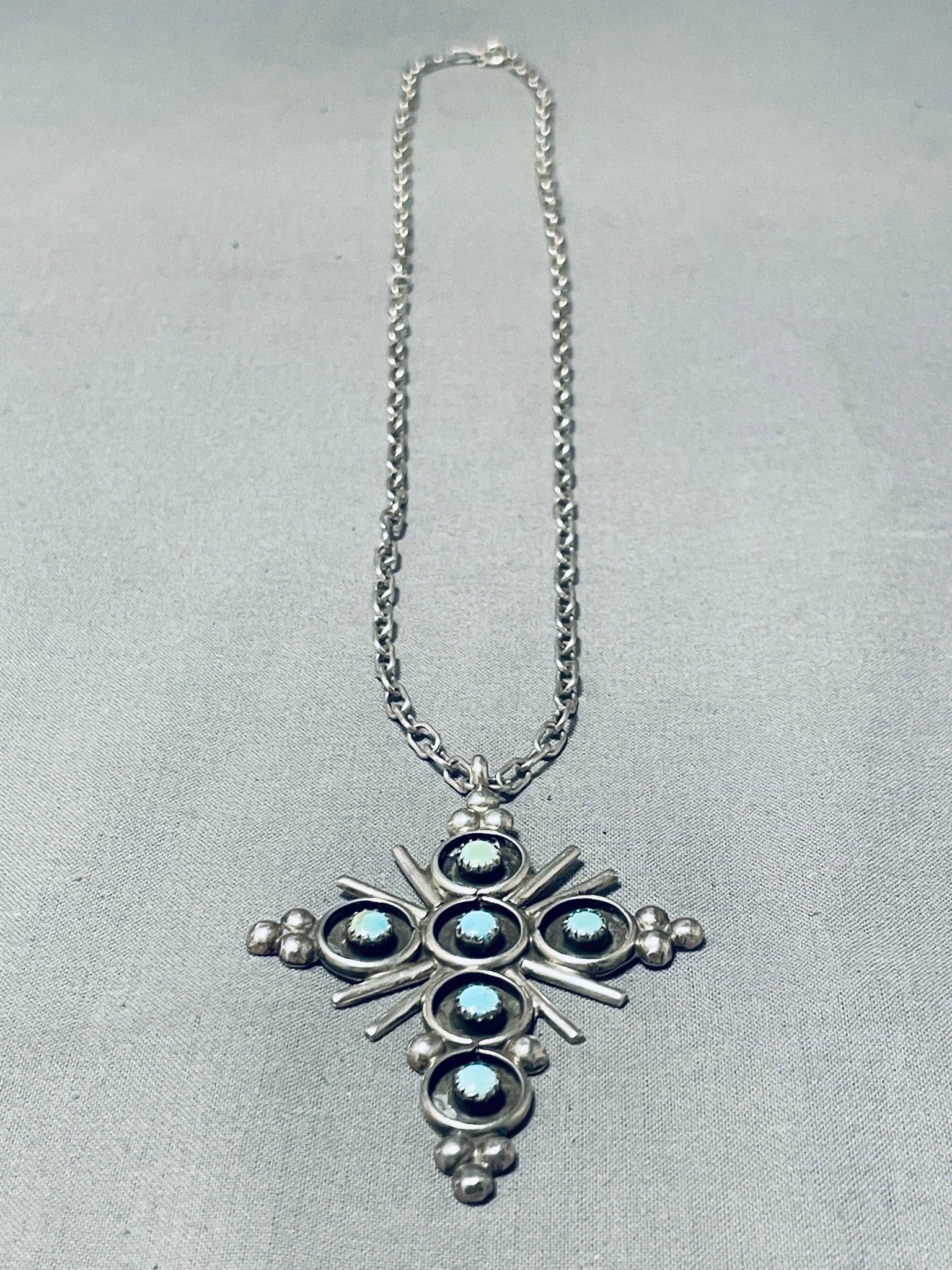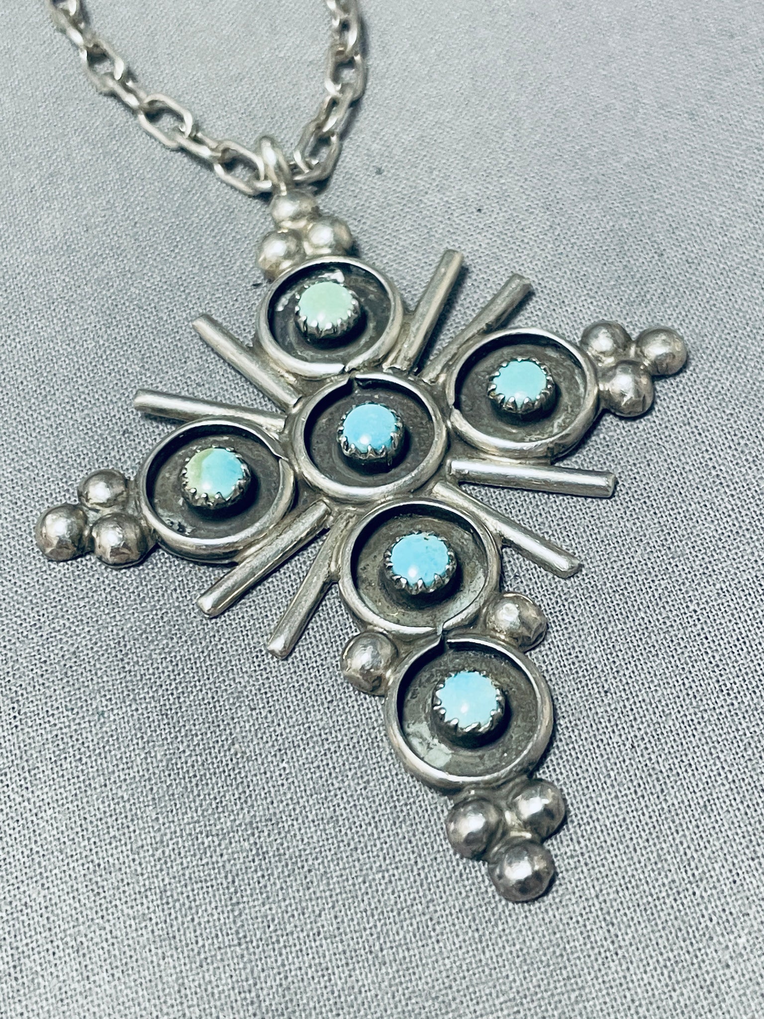 Beautiful Vintage Native American Zuni Turquoise Sterling Silver Cross Necklace