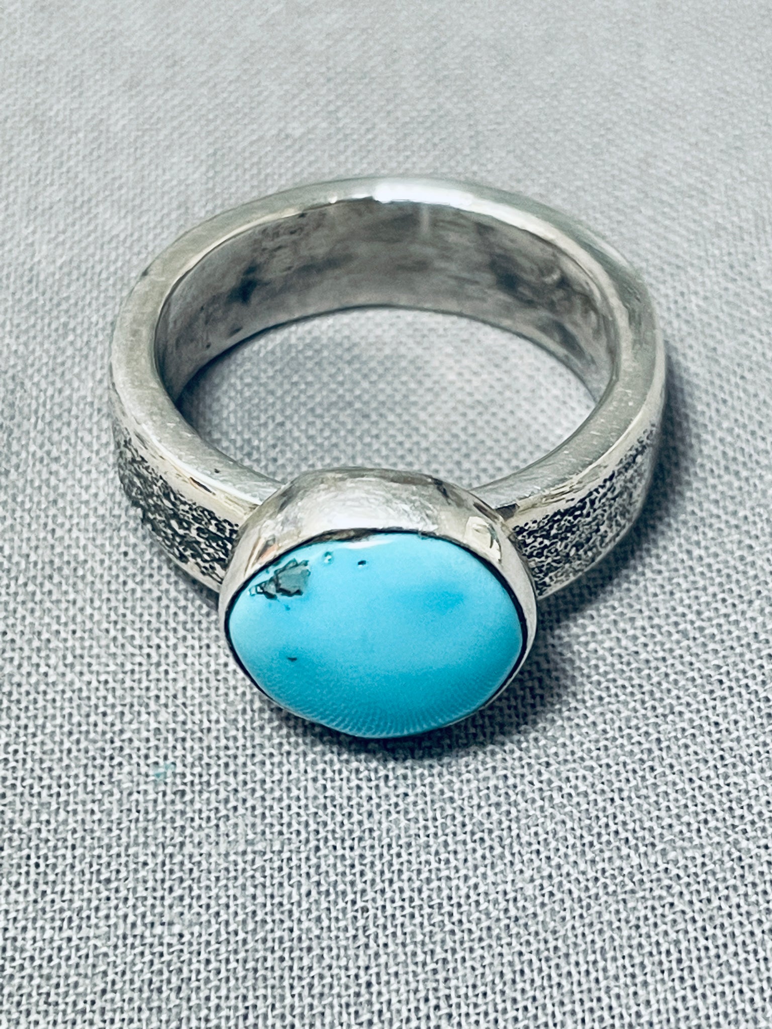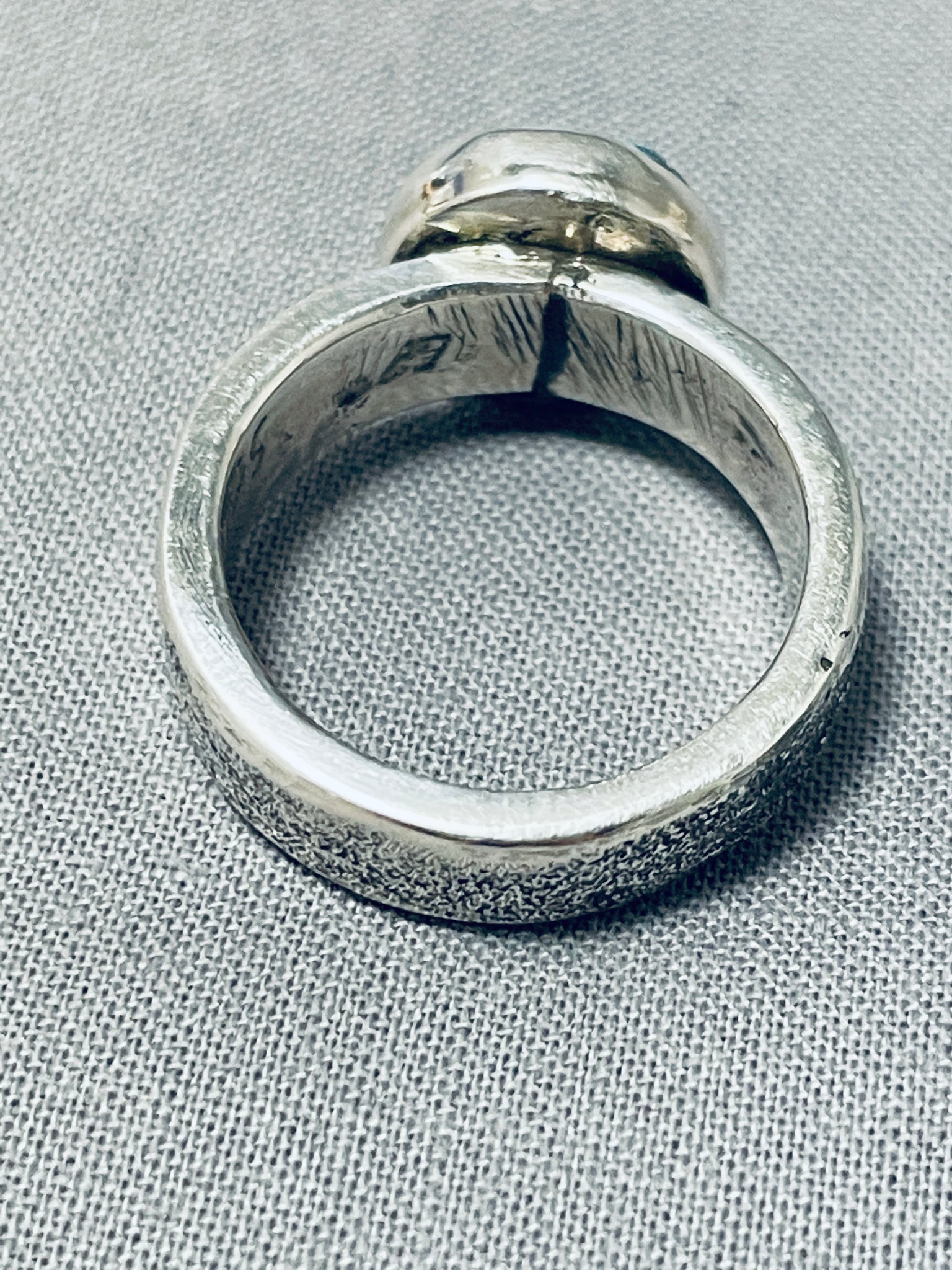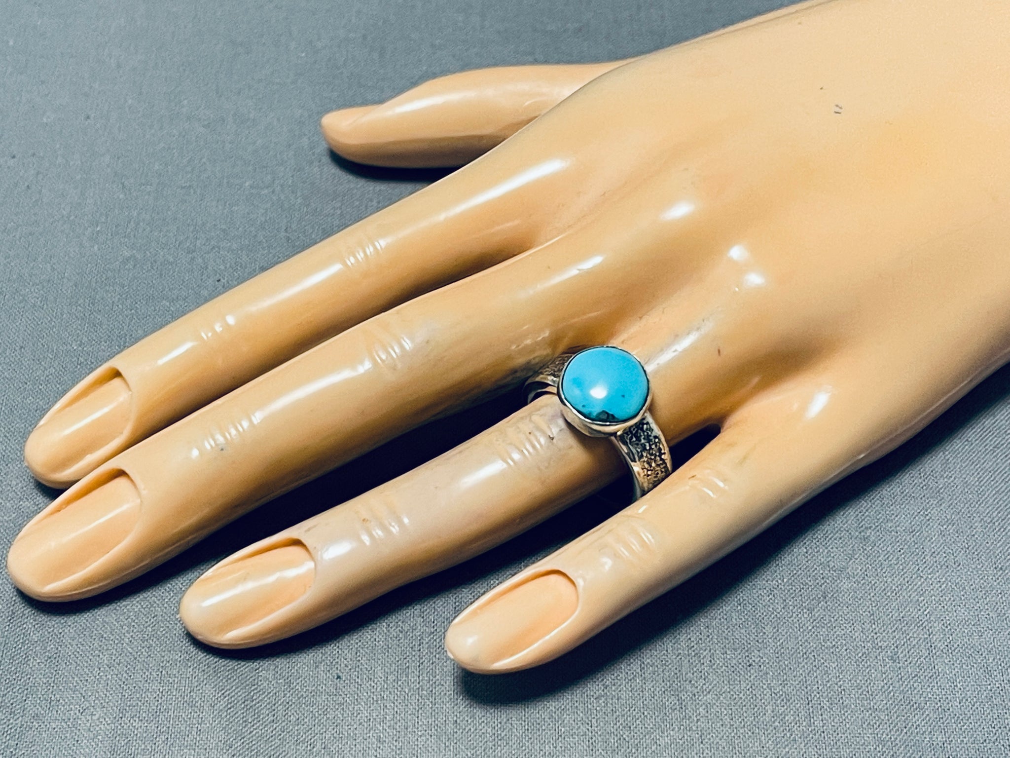 Beautiful Vintage Signed Native American Navajo Pilot Mountain Turquoise Sterling Silver Ring