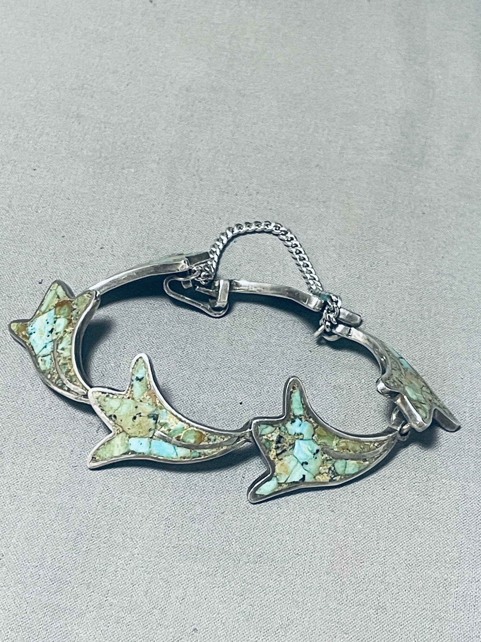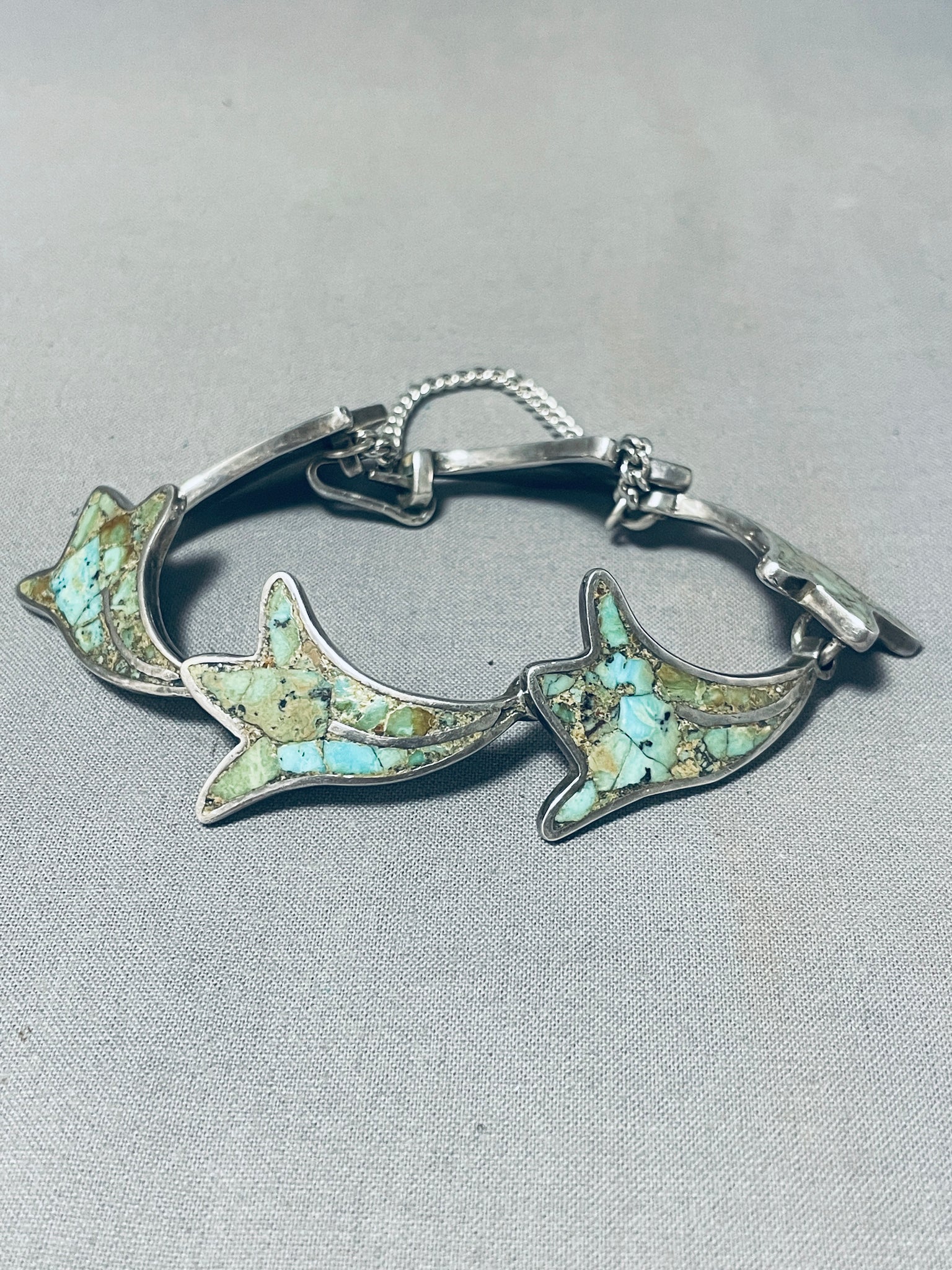 Beautiful Vintage Southwest Sterling Silver Green Turquoise Inlay Bracelet