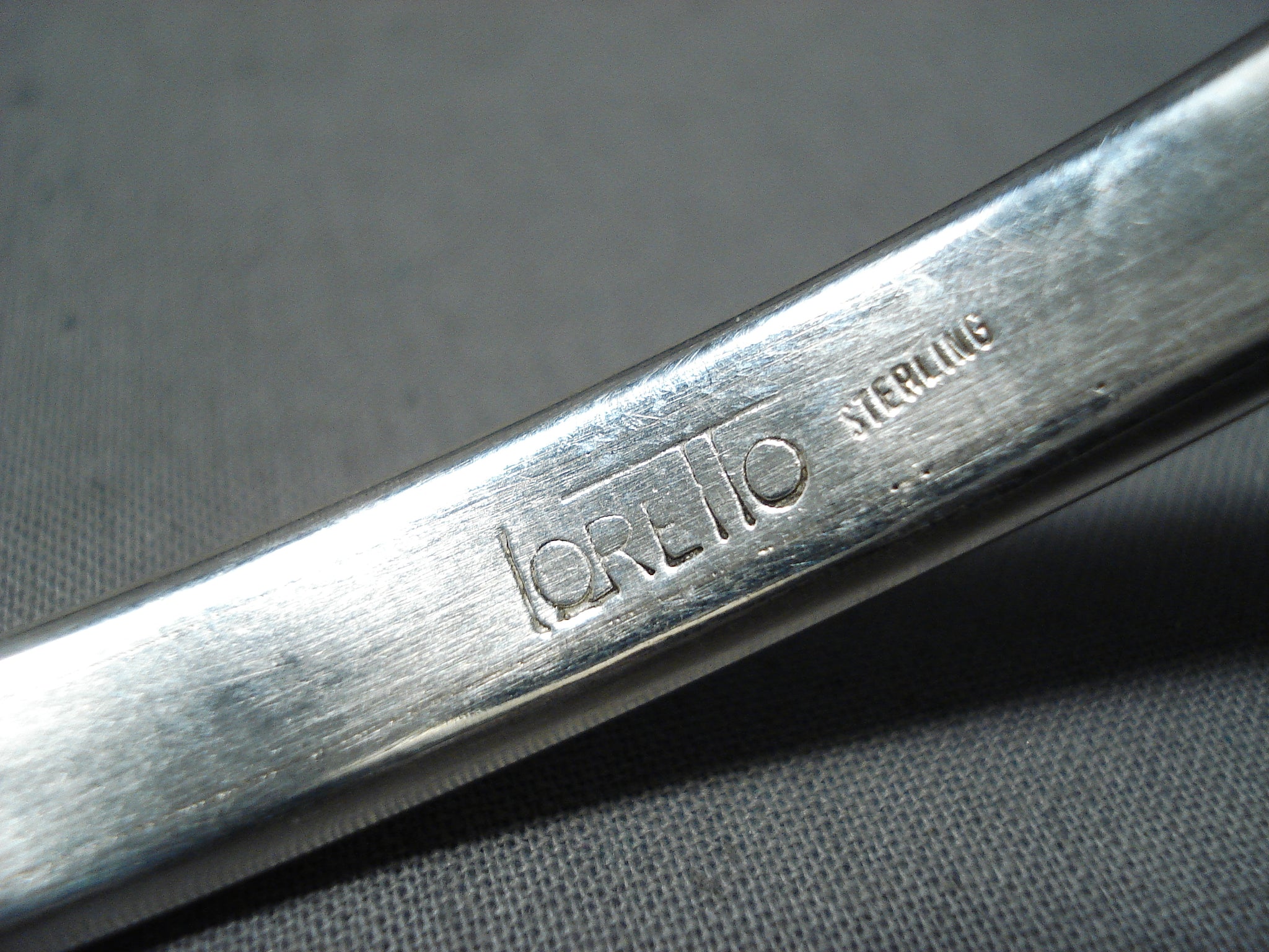 Up for sale is this stunning Zuni bracelet featuring turquoise inlay rectangles with silver borders on a smooth solid silver cuff! So Impressive! The width of the bracelet measures around 3/8". Signed by Zuni artist, Larry Loretto. Sterling silver, marked. The inside end to end measures around 5-7/8" with an additional 1-1/4" gap. Sturdy 31 grams.