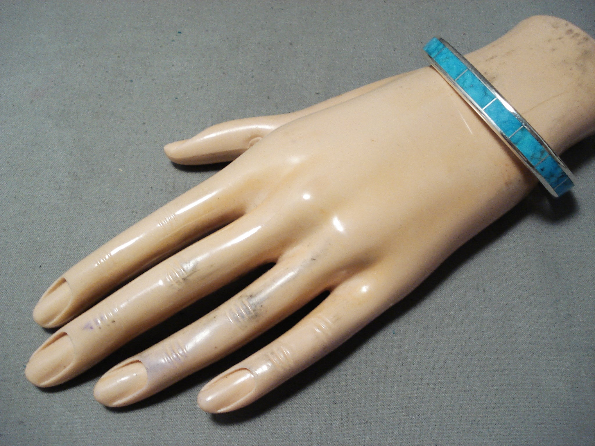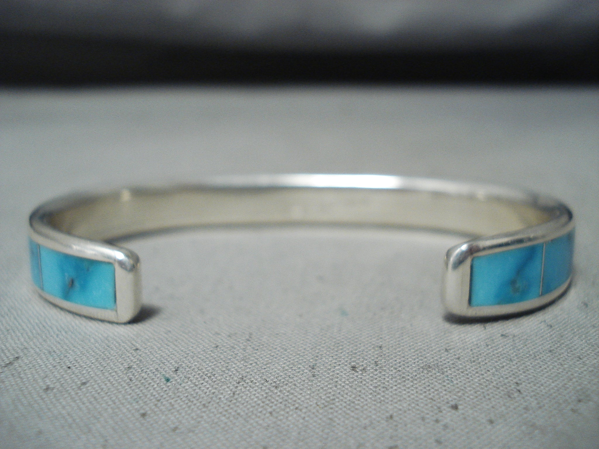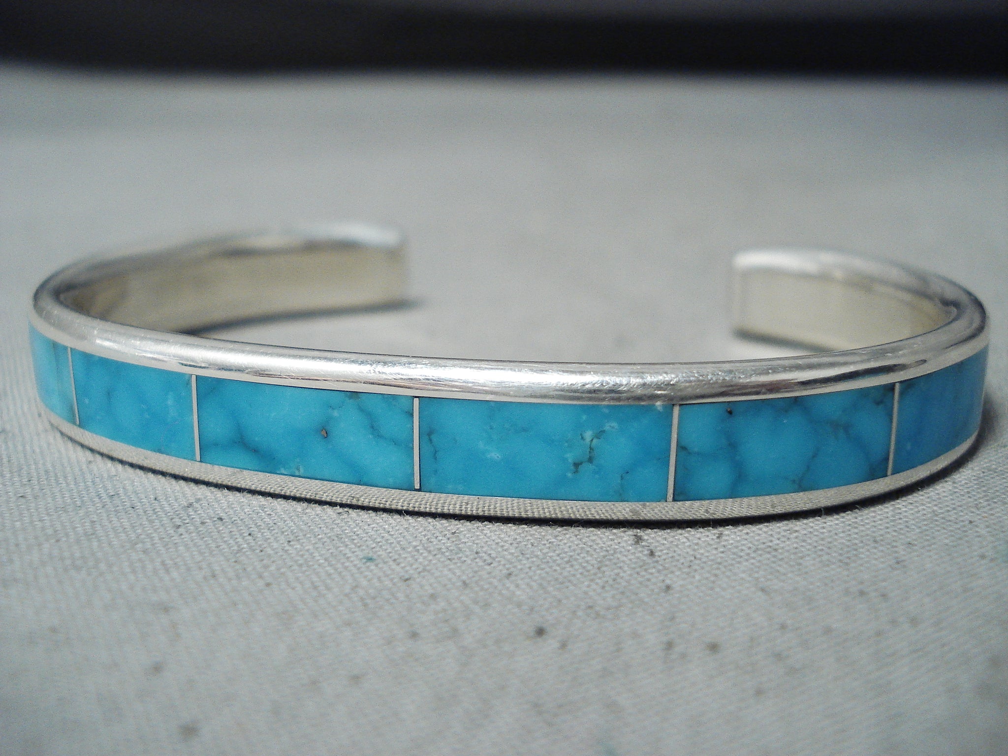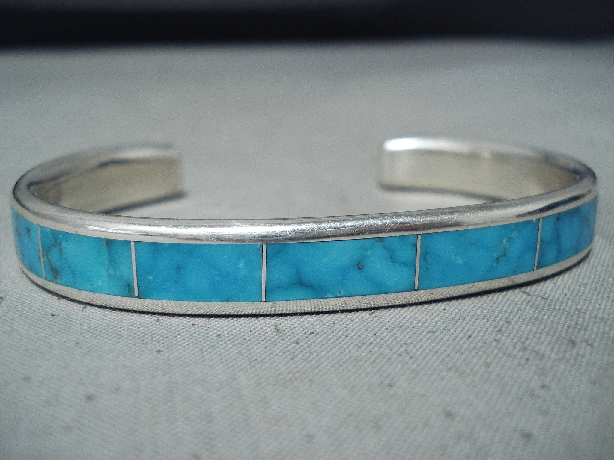 Beautiful Zuni Native American Turquoise Inlay Sterling Silver Bracelet