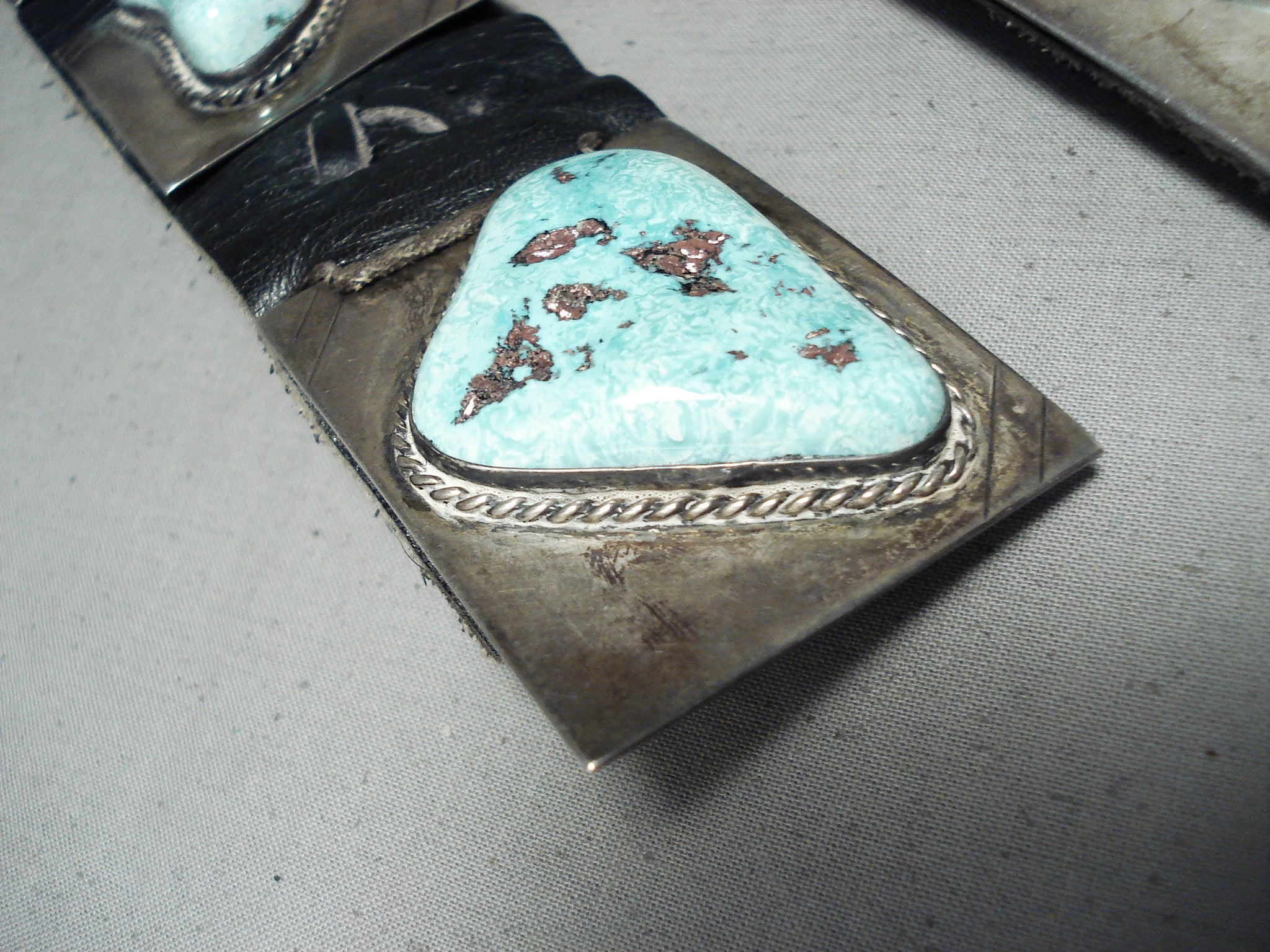 Beeny Boyd Vintage Native American Navajo Turquoise Slab Sterling Silver Concho Belt