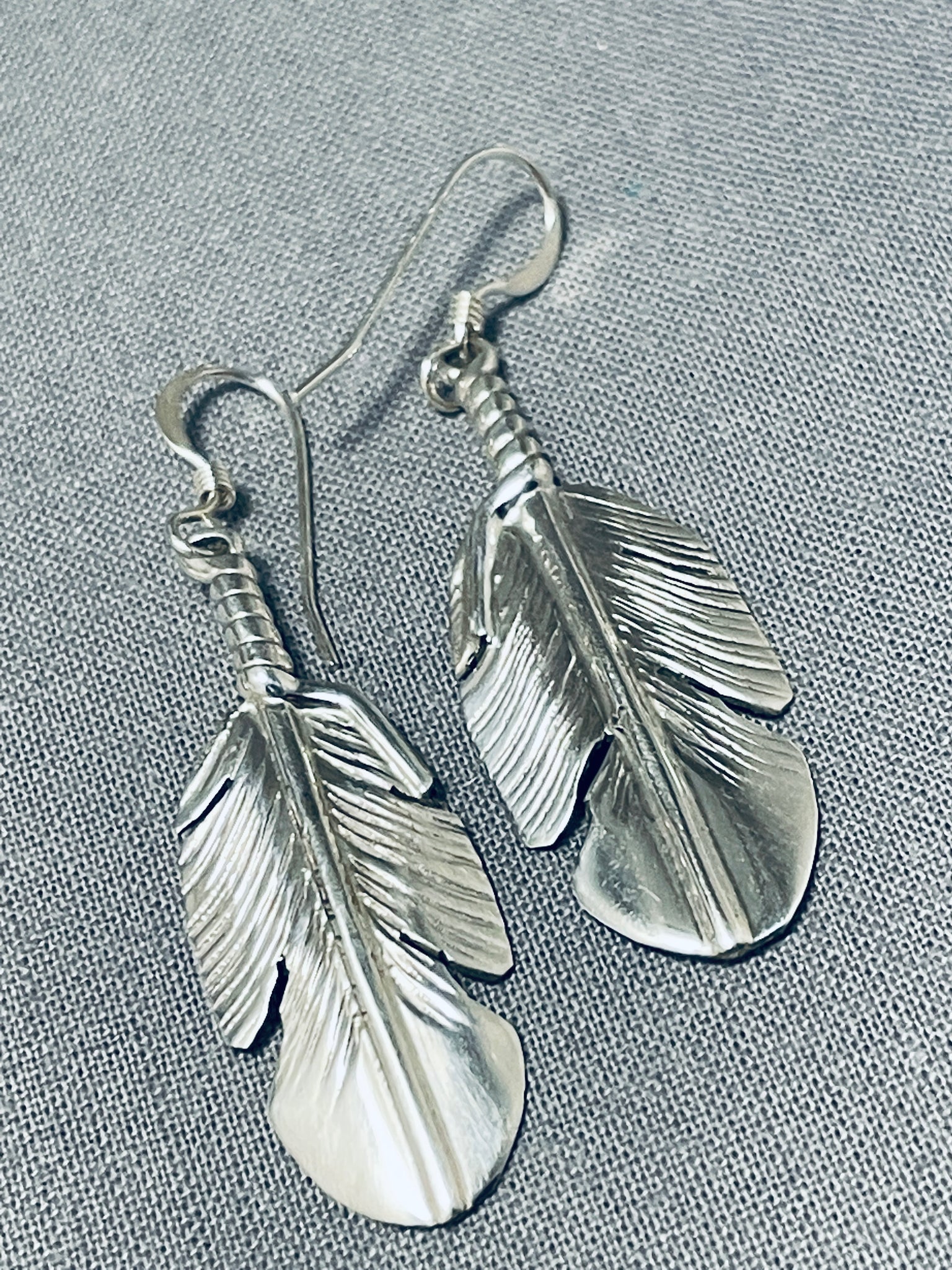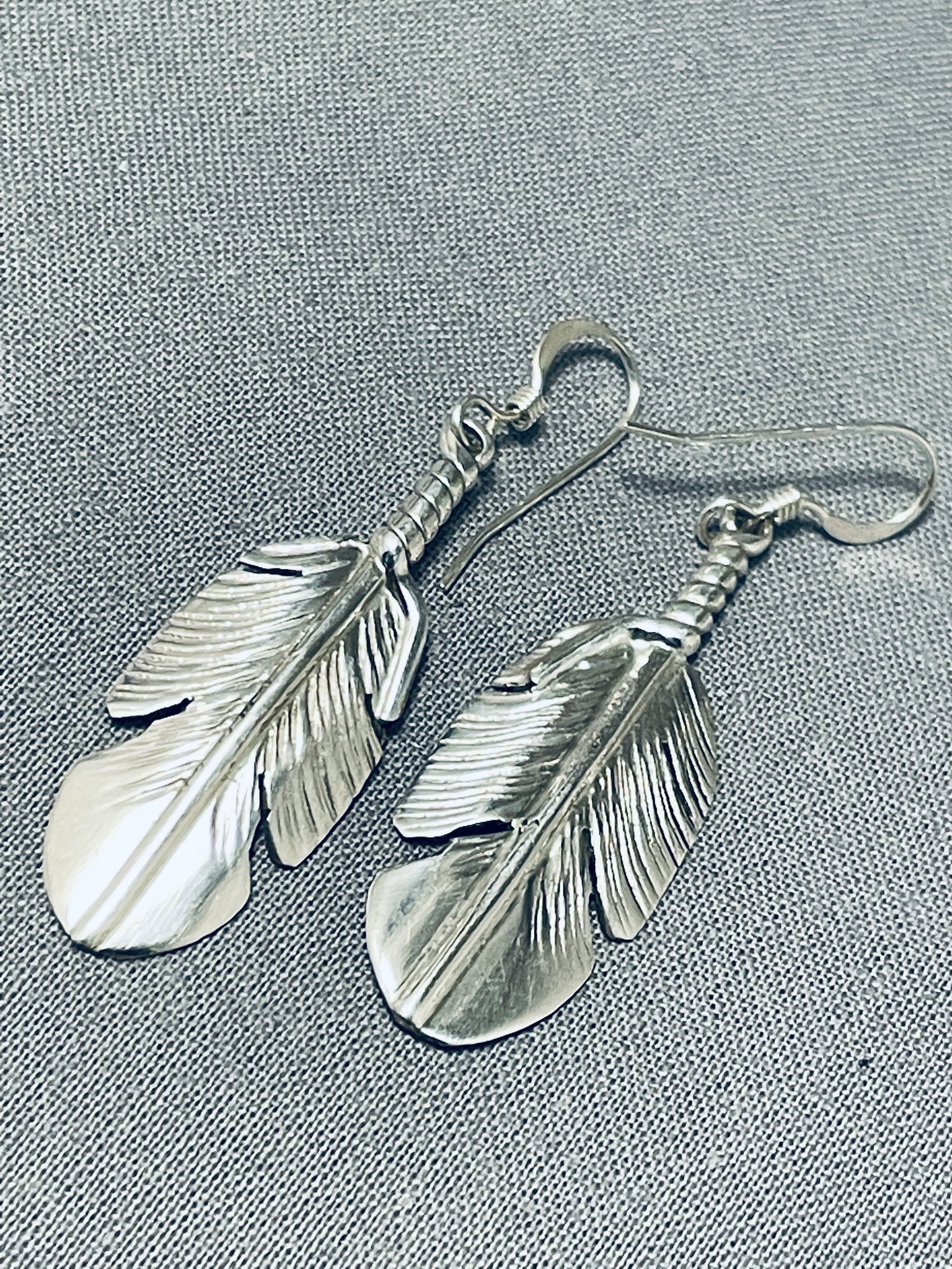 Ben Begaye (d.) Native American Navajo Sterling Silver Feather Earrings