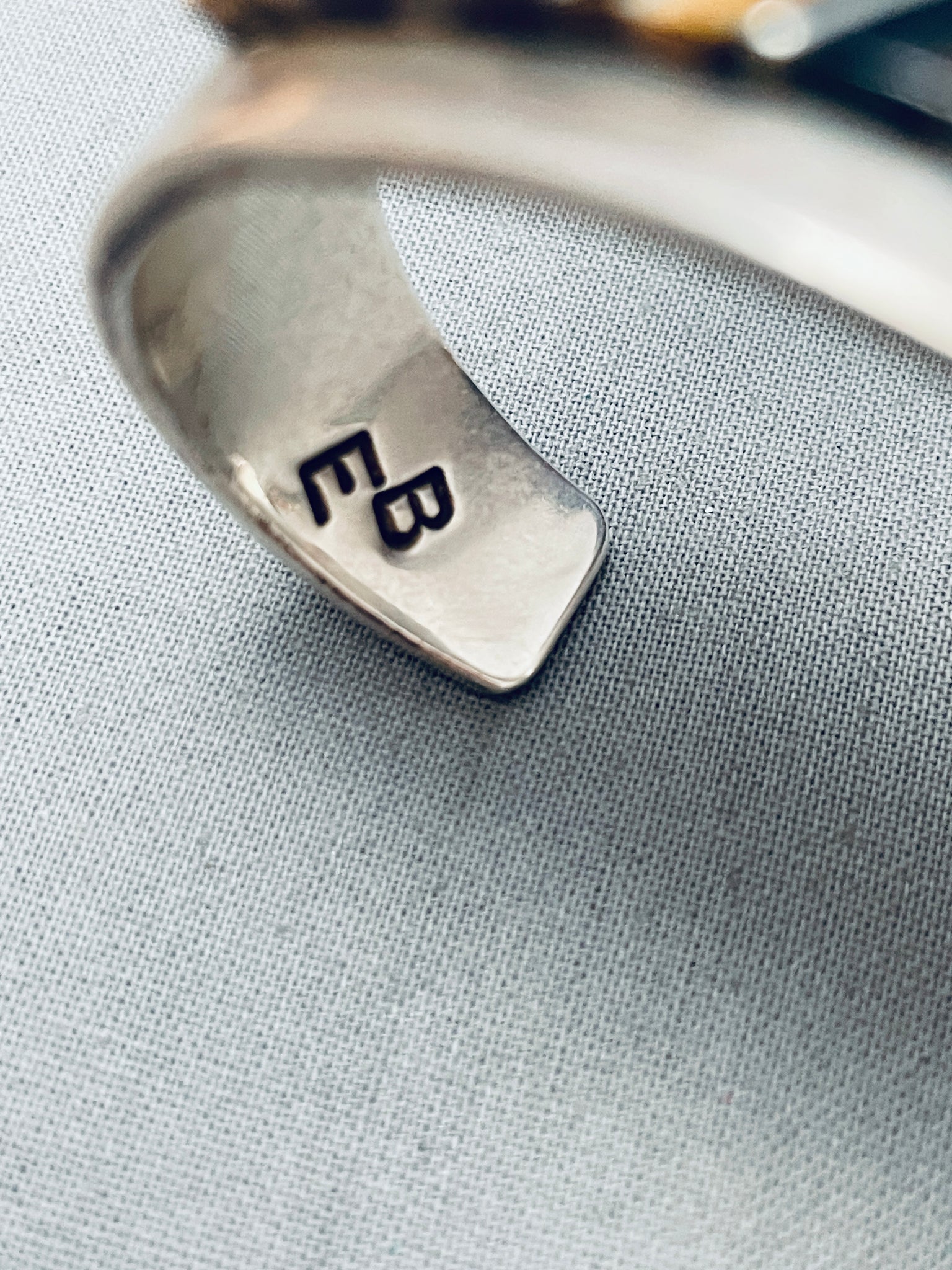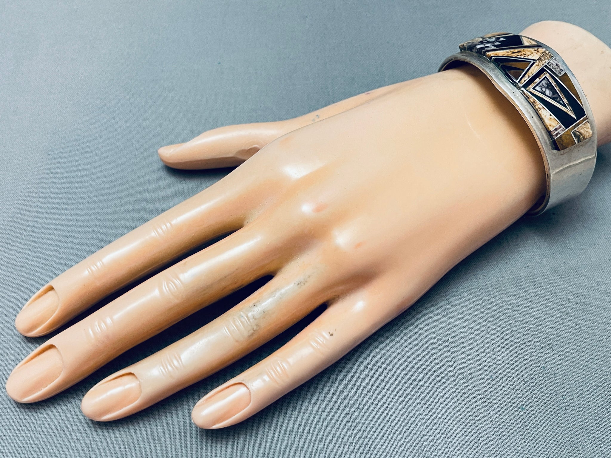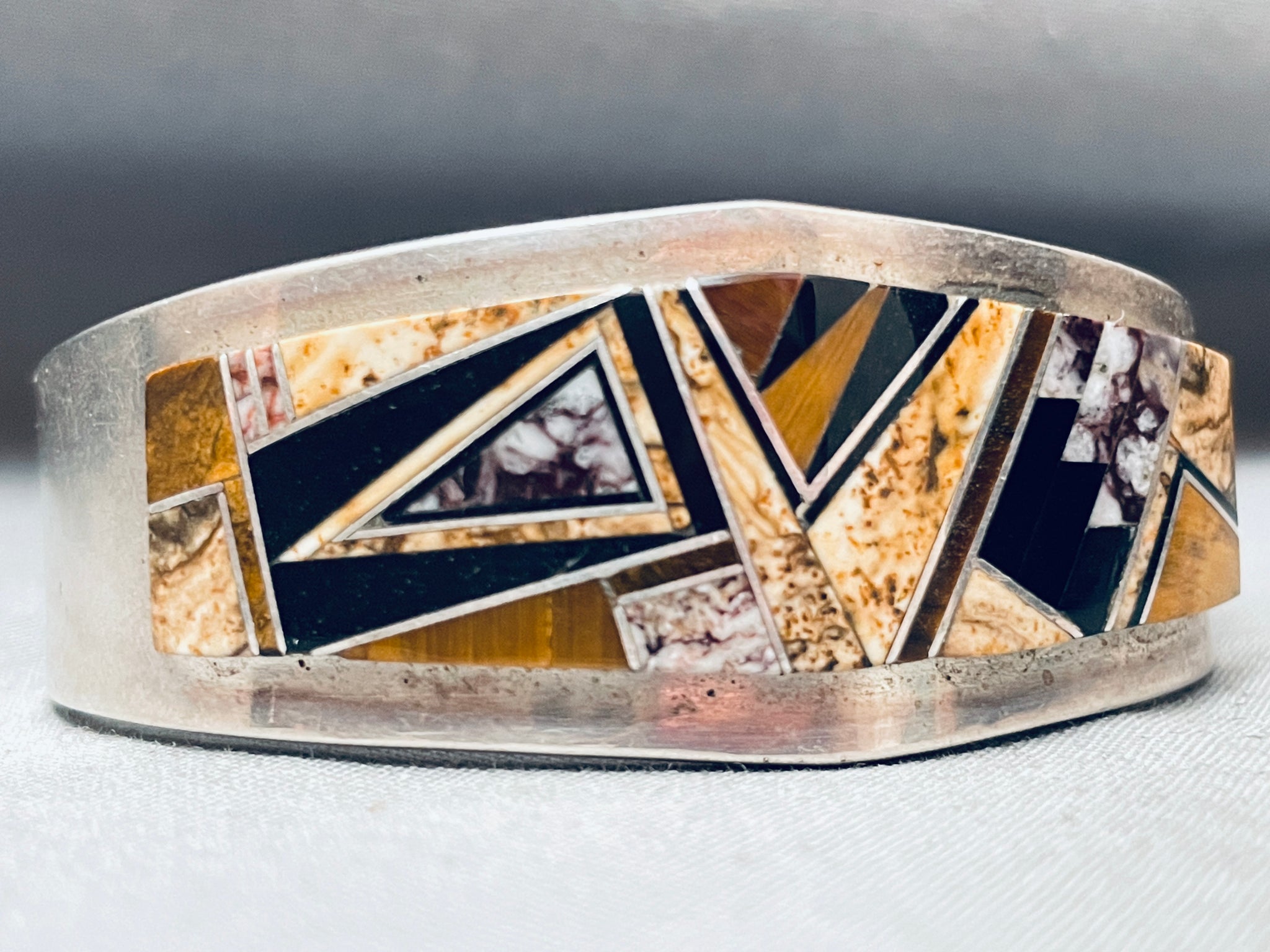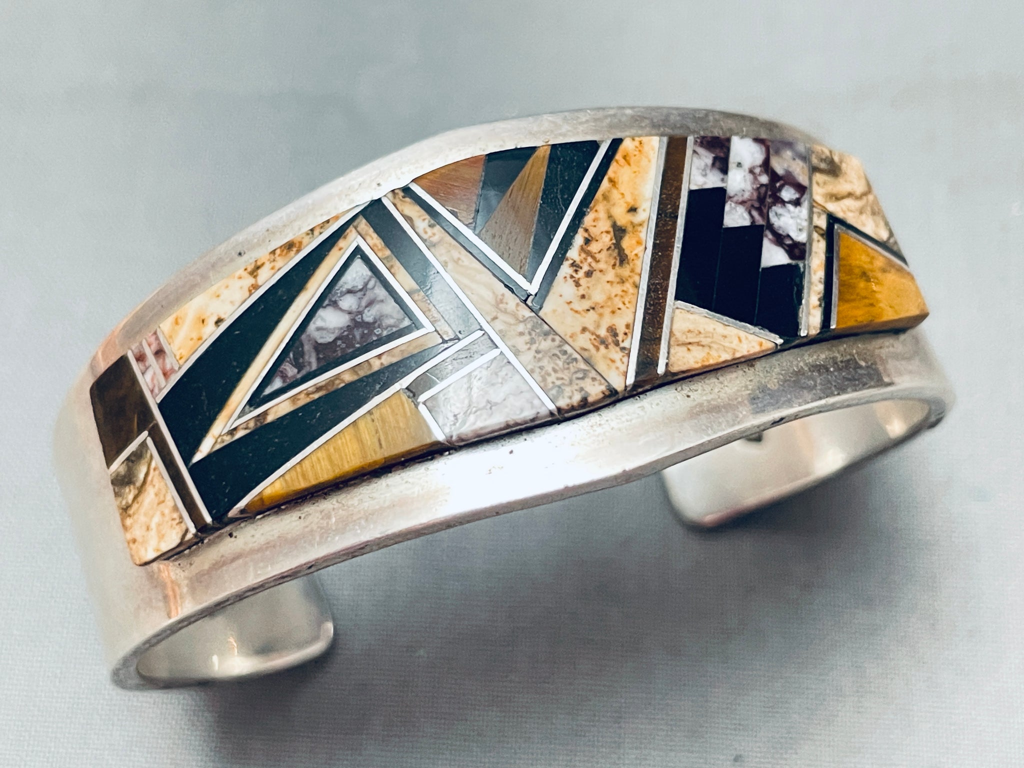 Best 6.5 Inch Wrist Vintage Native American Navajo Tan Agate Inlay Sterling Silver Bracelet