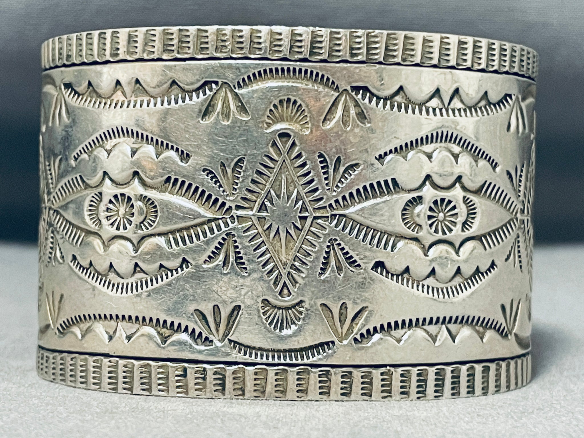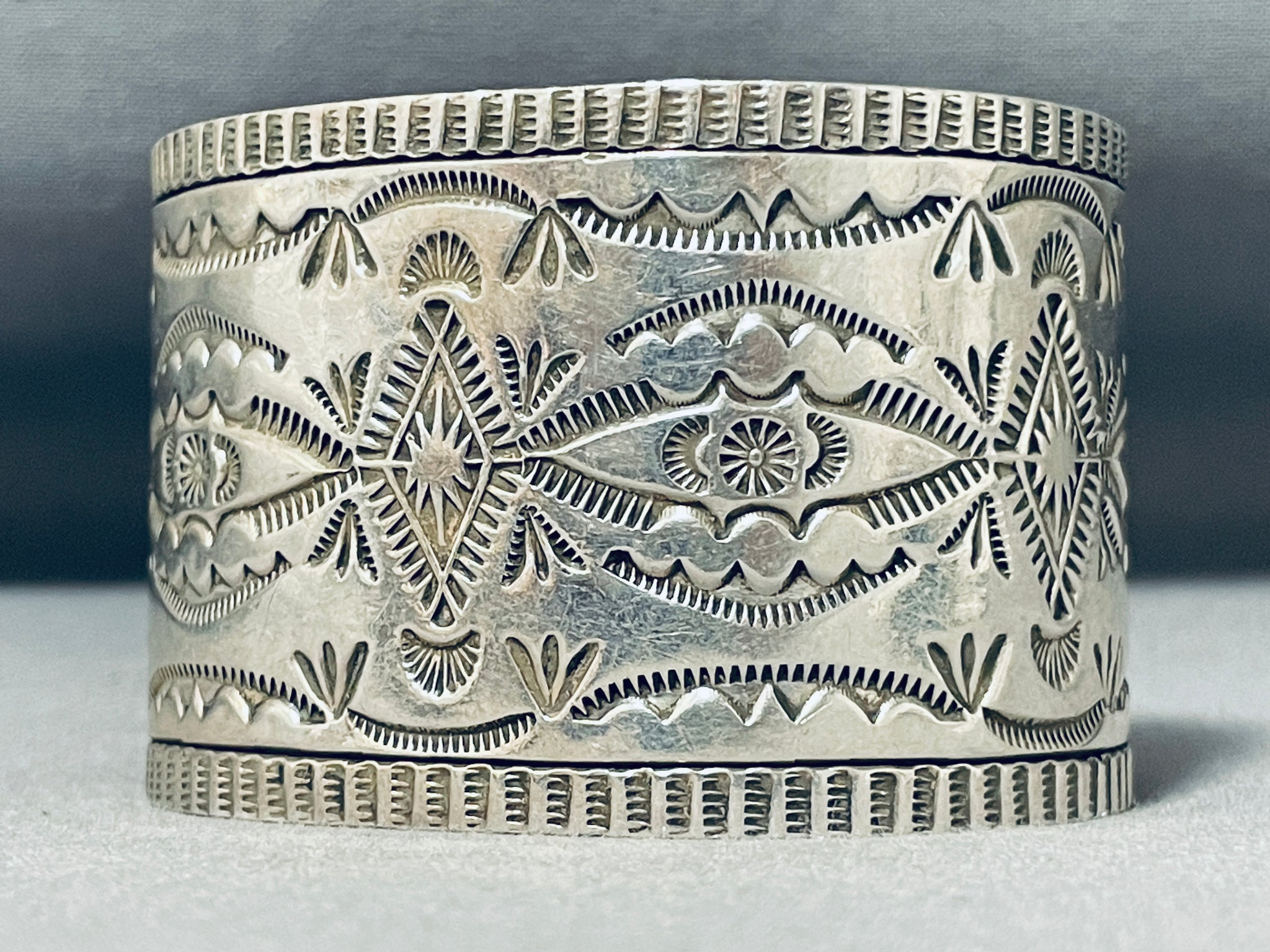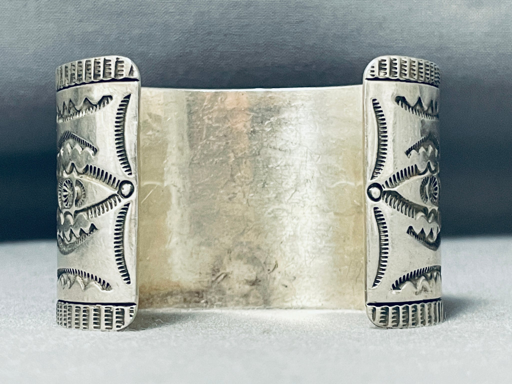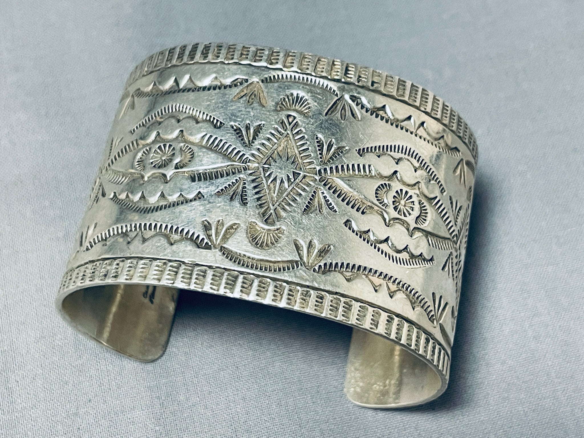 Best All Silver Vintage Native American Navajo Oscar Alexius Sterling Silver Wide Bracelet