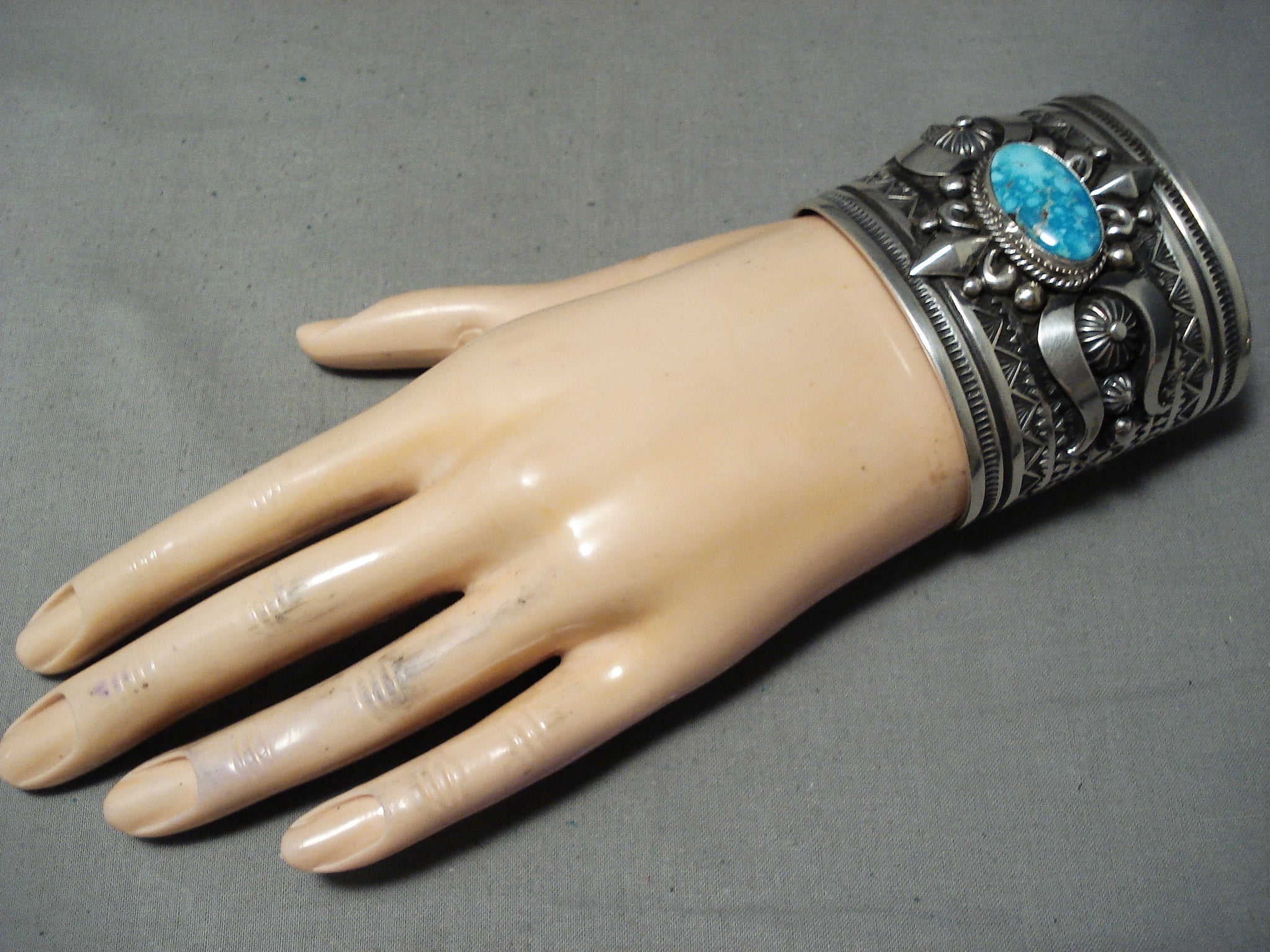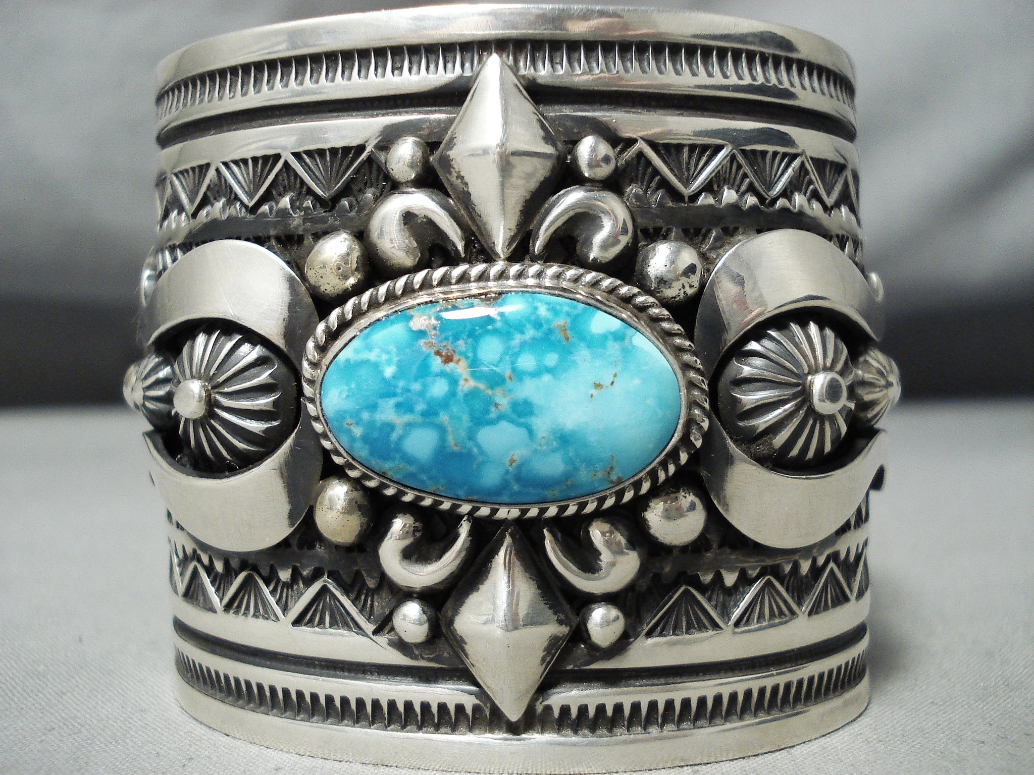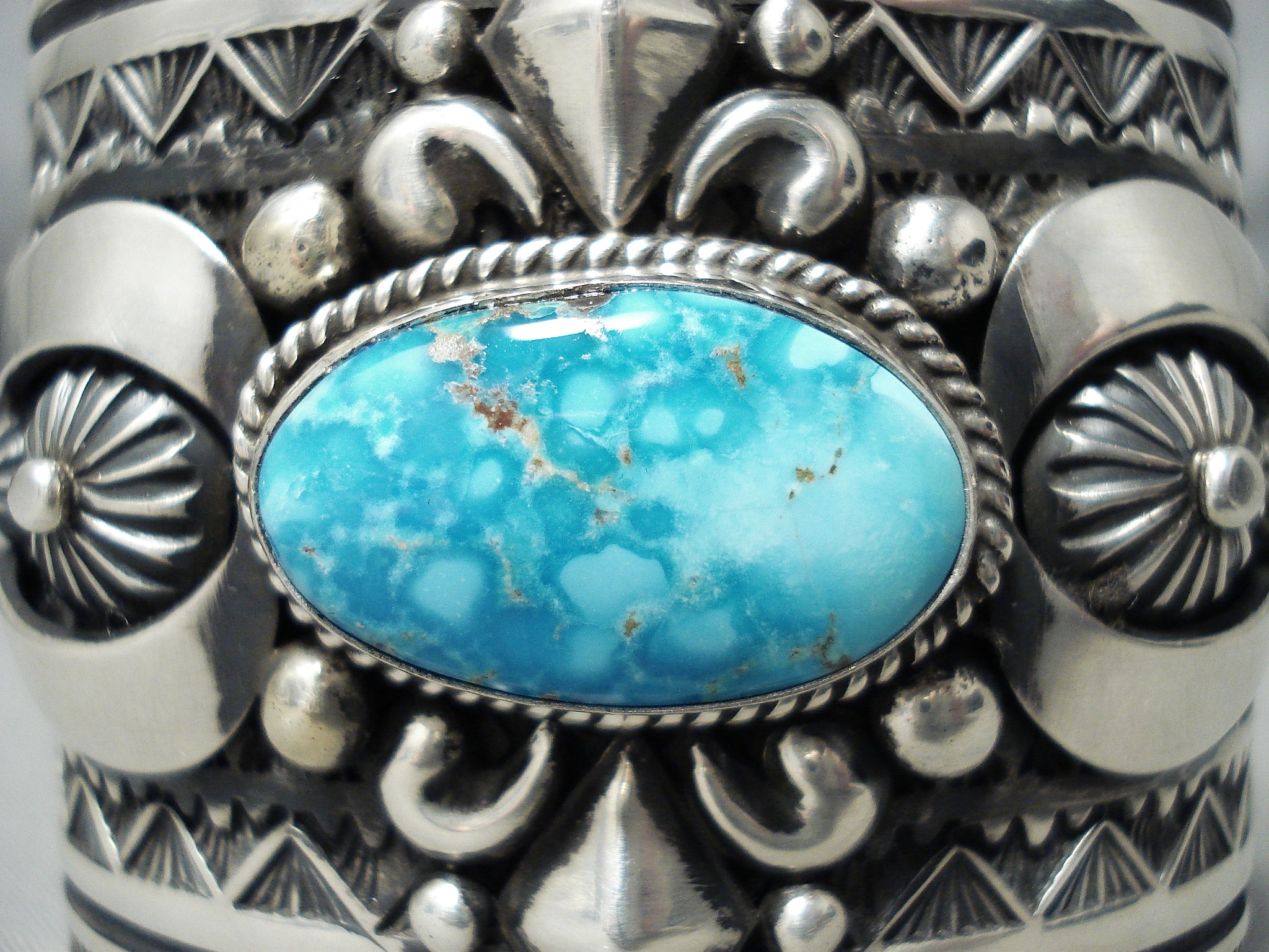 Best Authentic Native American Navajo Albert Jake Turquoise Sterling Silver Bracelet