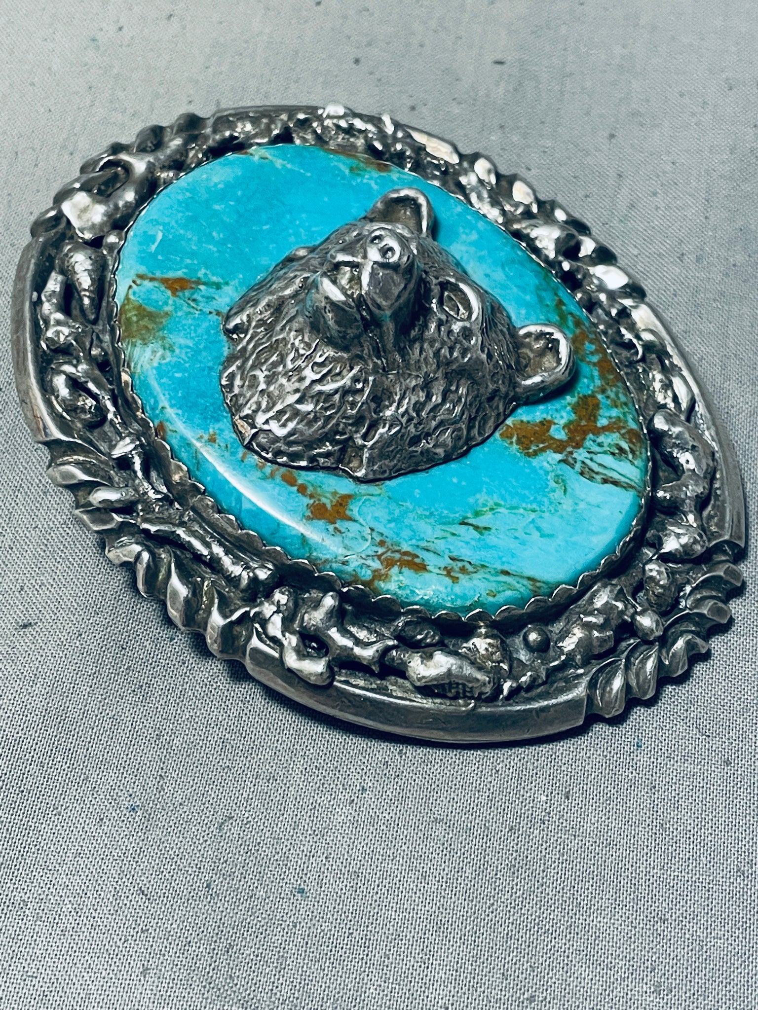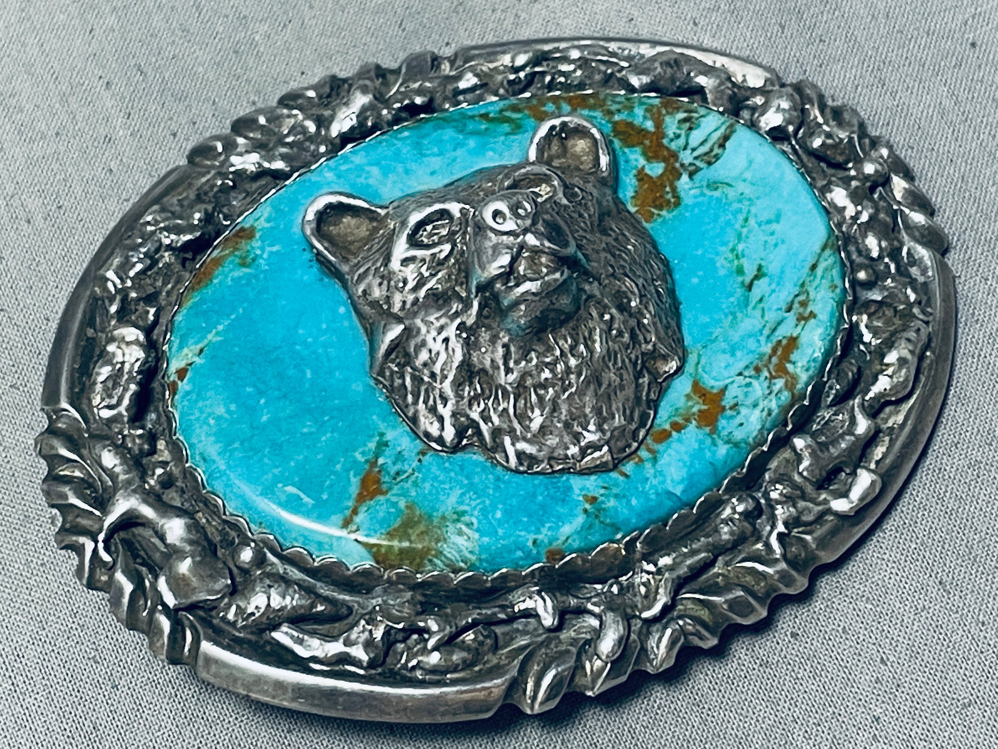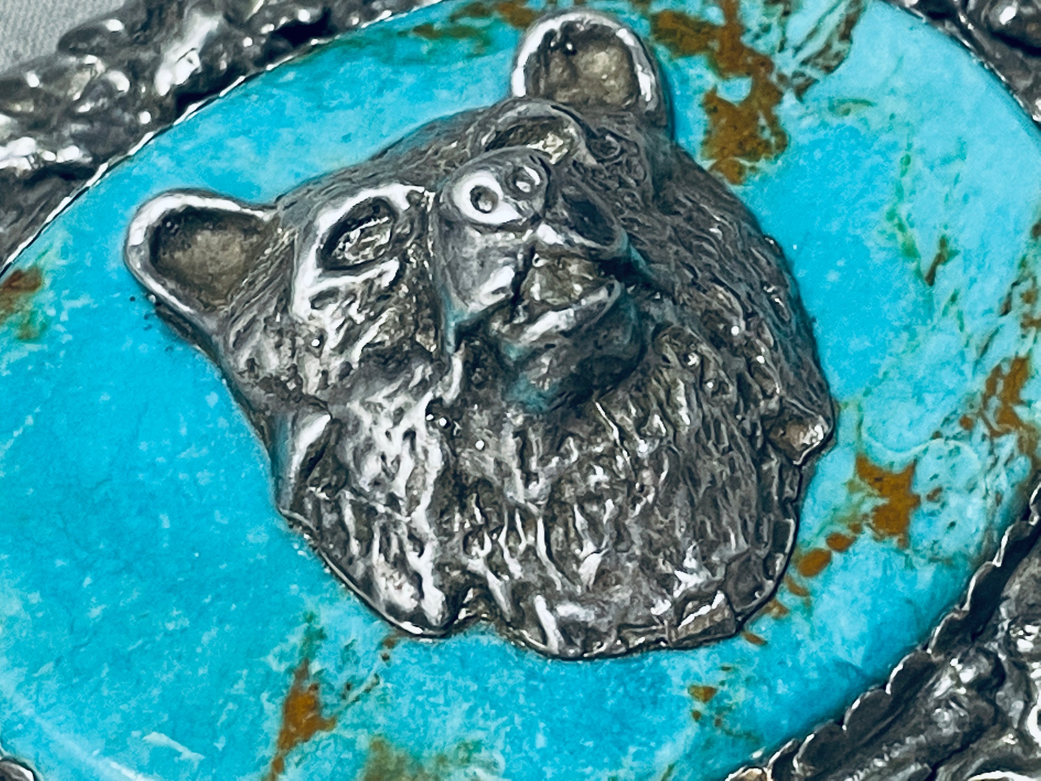 Best Bear Vintage Native American Navajo Turquoise Sterling Silver Buckle