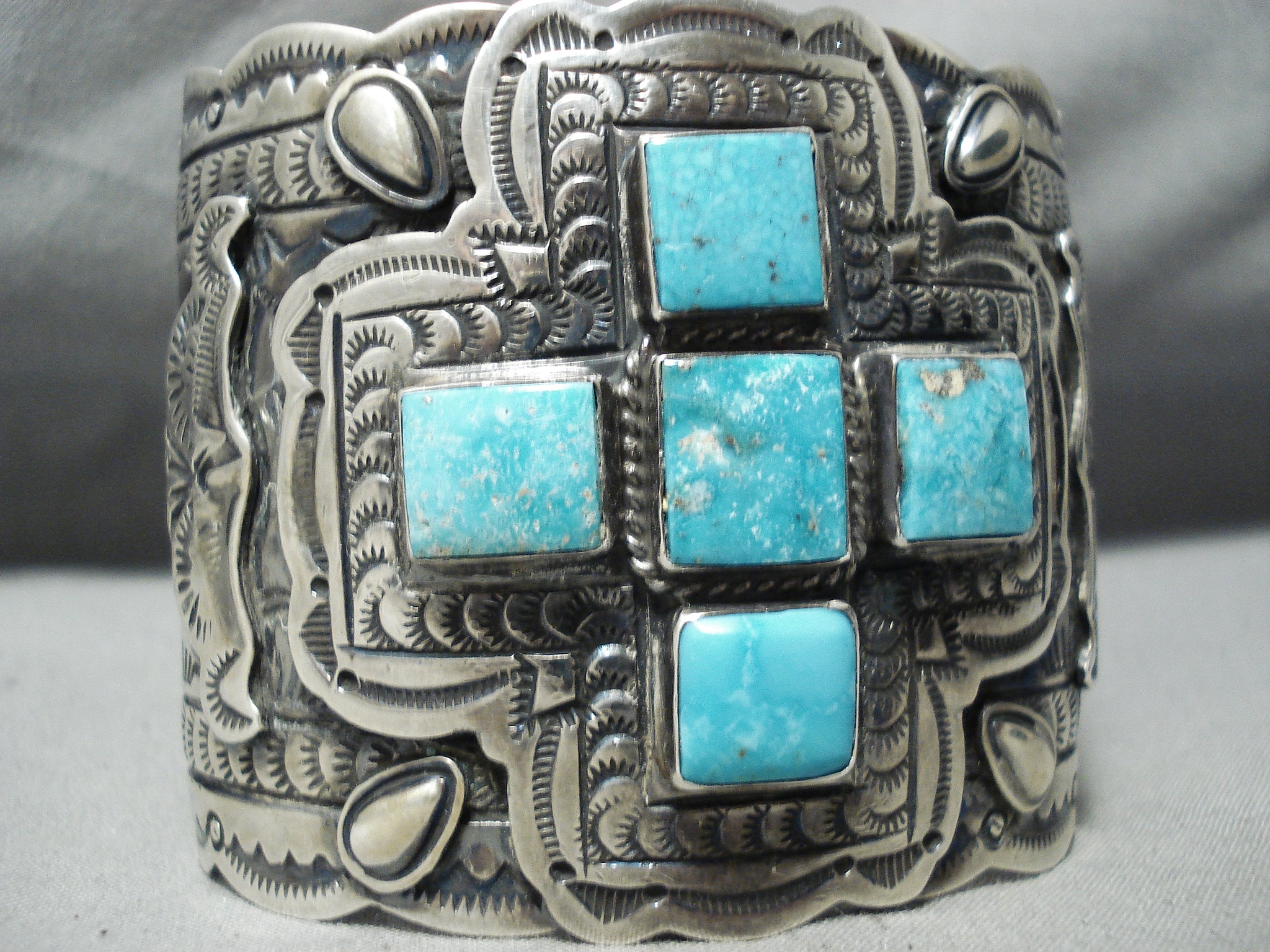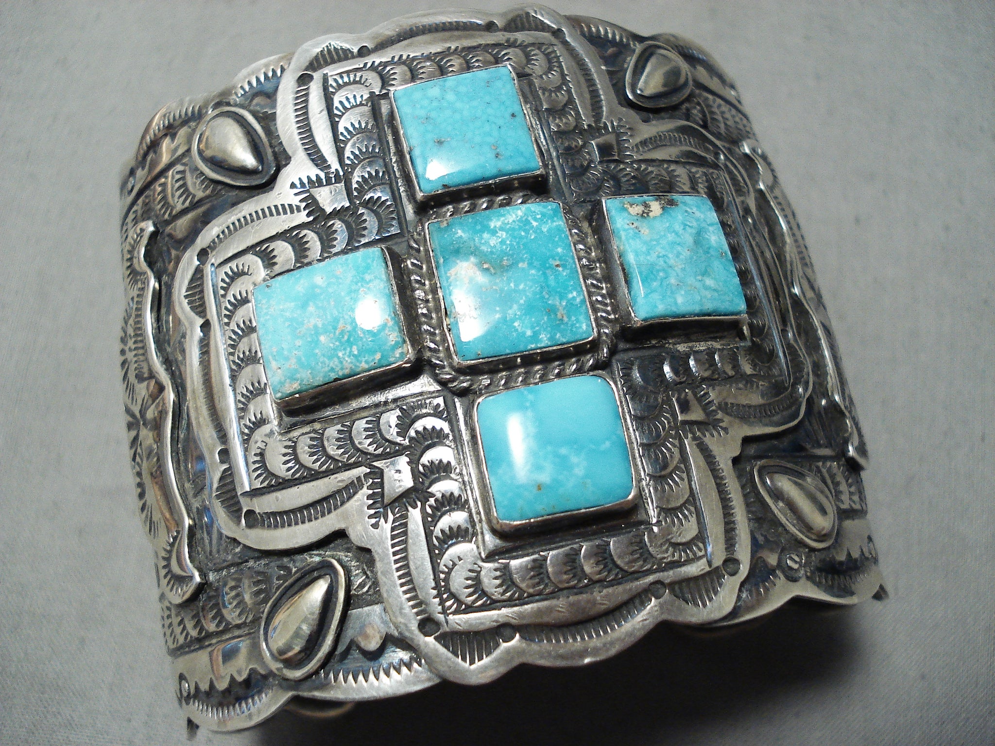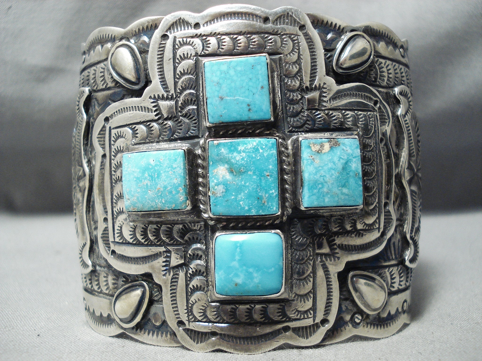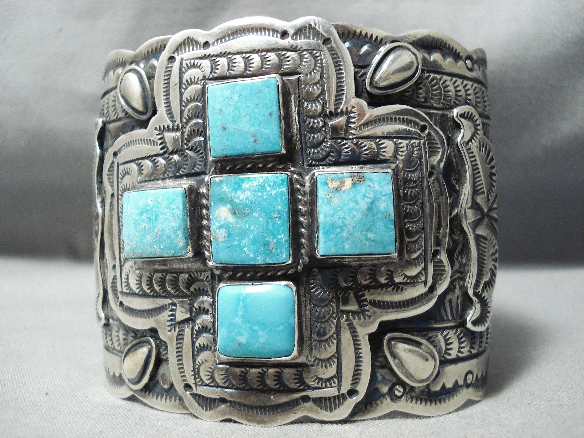 Best Biggest Vintage Native American Navajo Turquoise Sterling Silver Cross Bracelet