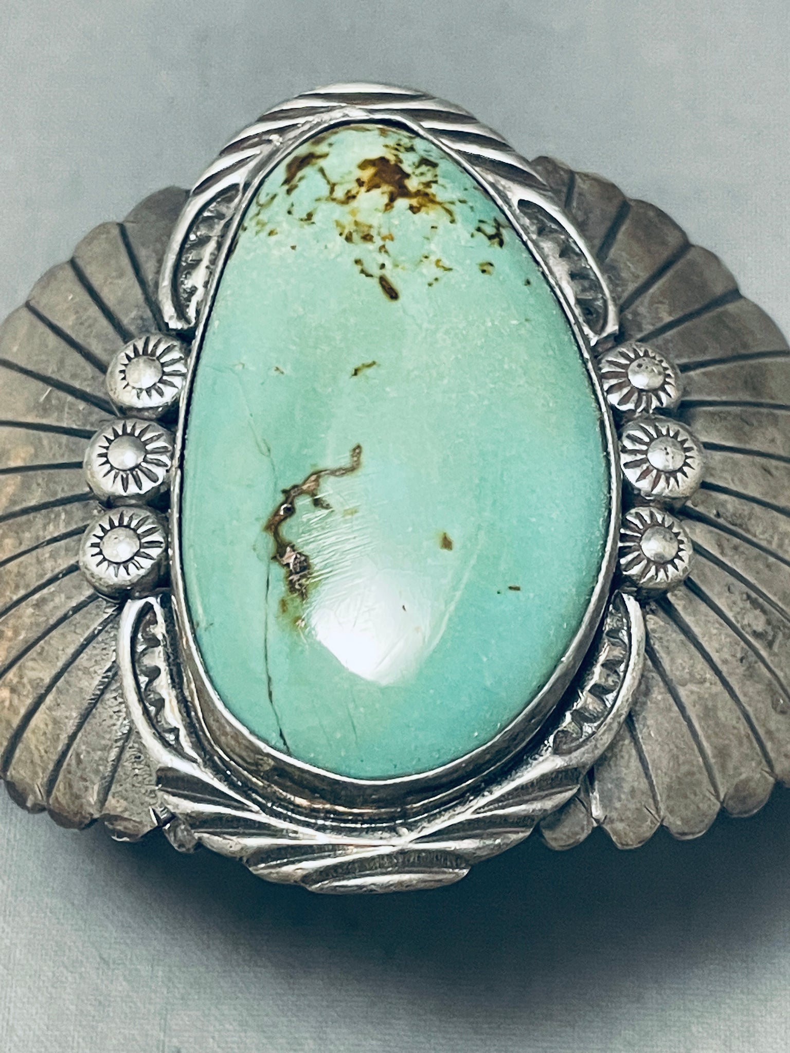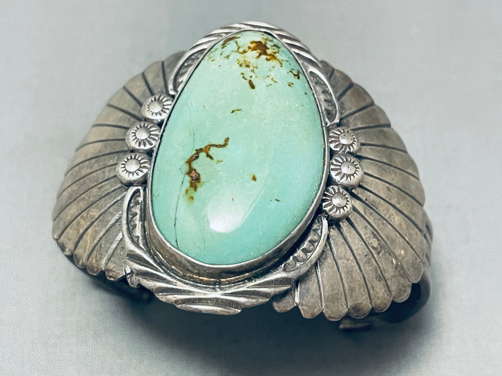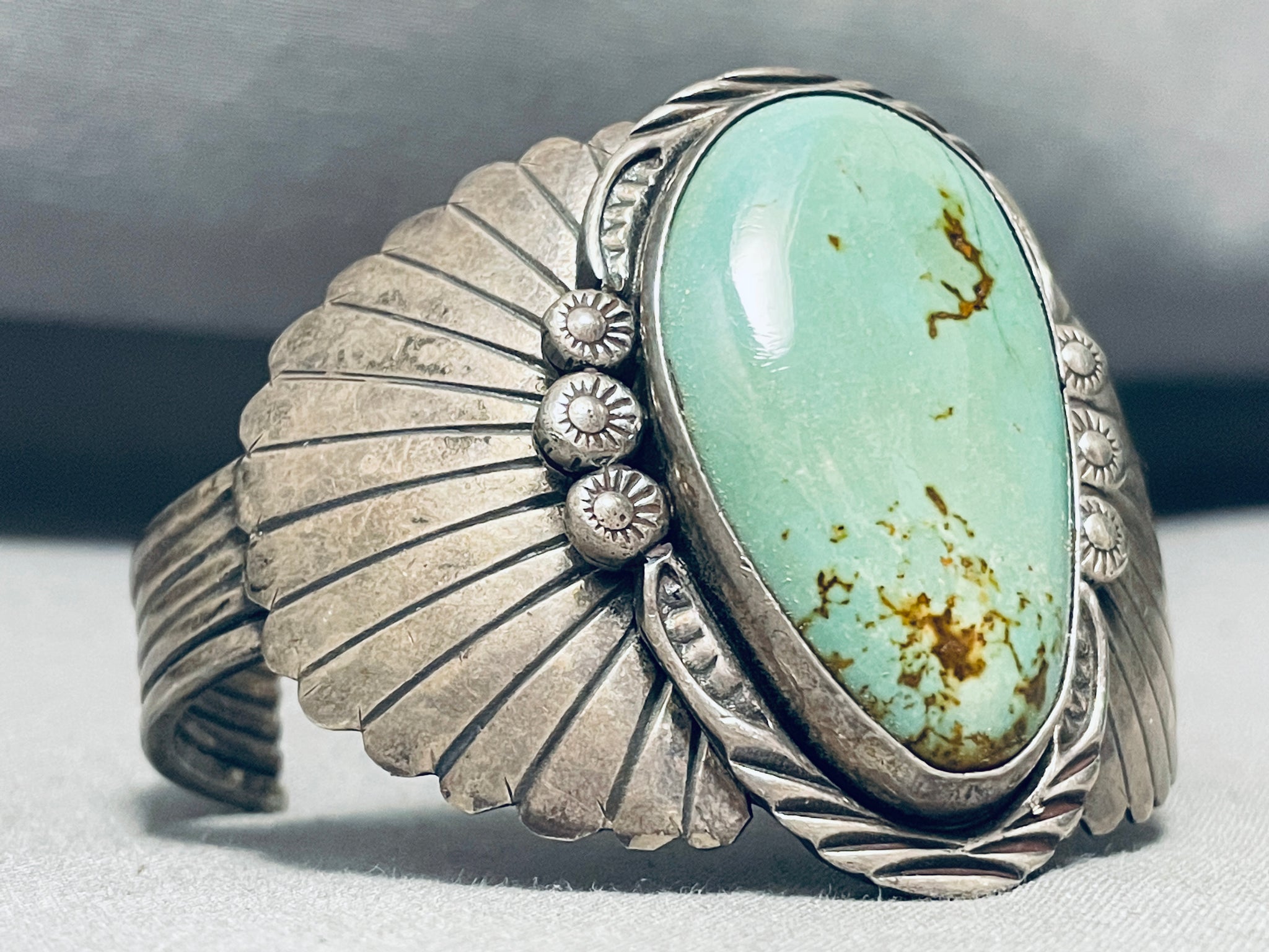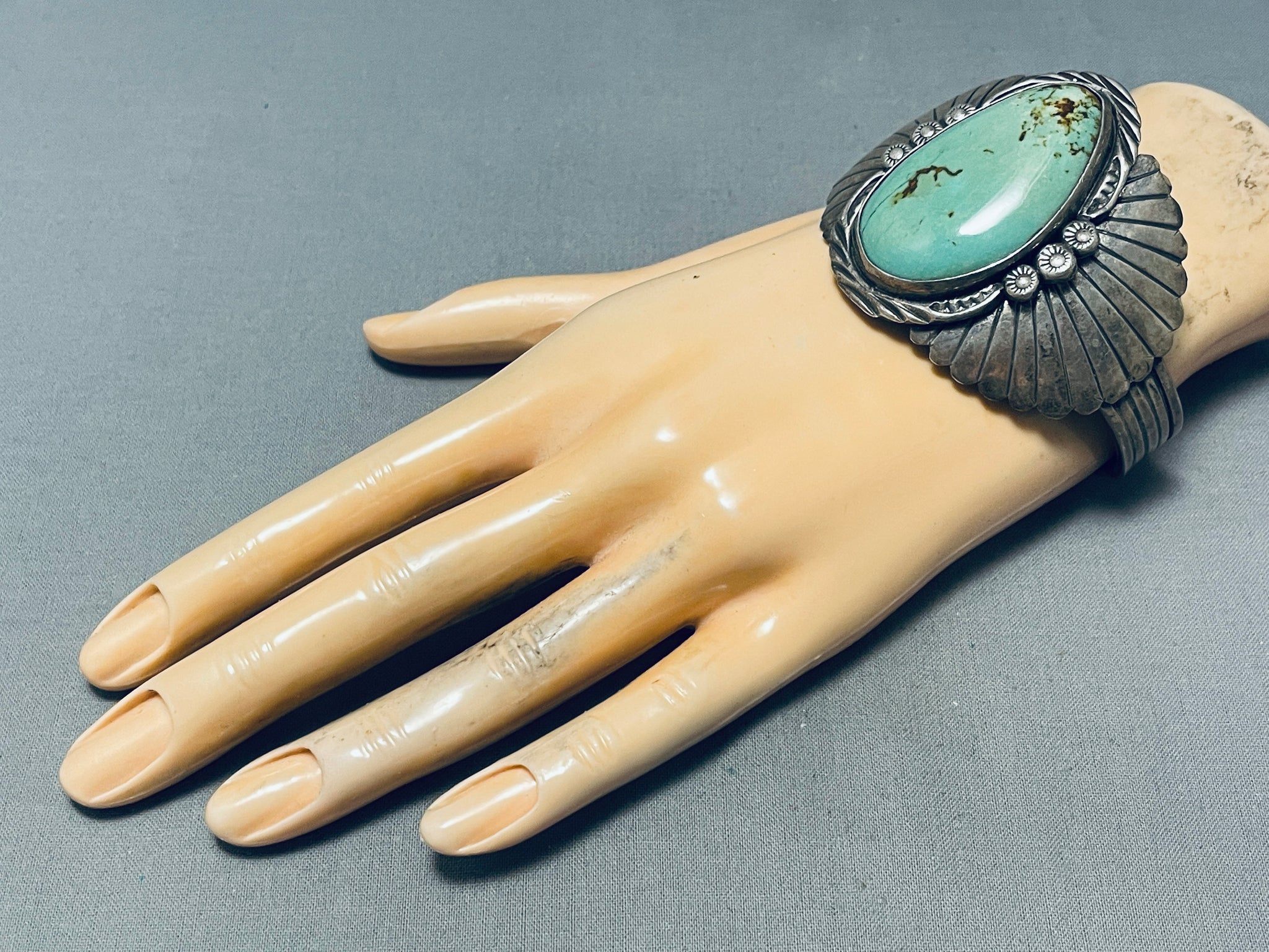 Best Del Chatter Vintage Native American Navajo Green Turquoise Sterling Silver Bracelet