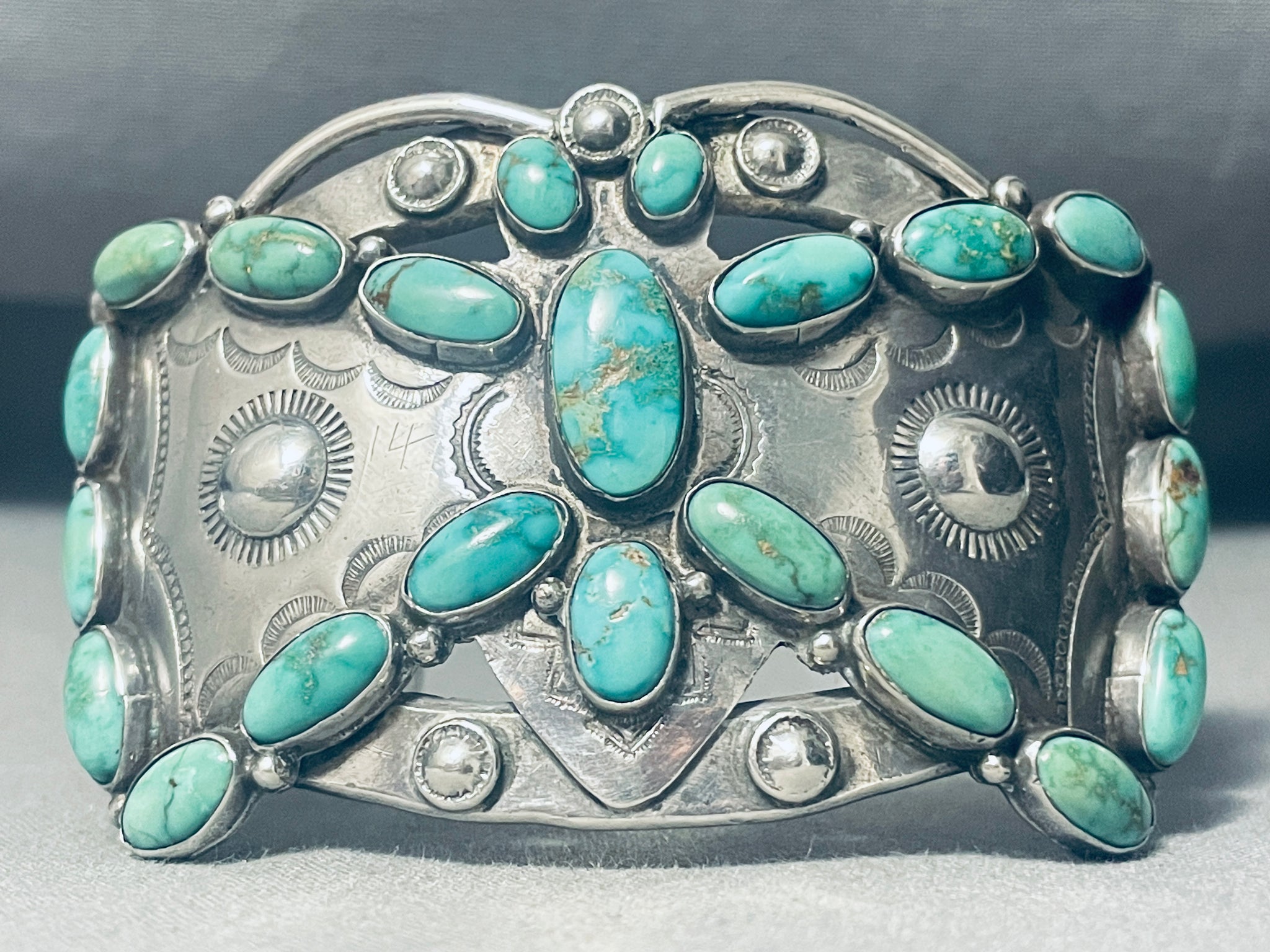 Best Early 1900's Vintage Native American Navajo Carico Lake Turquoise Sterling Silver Bracelet
