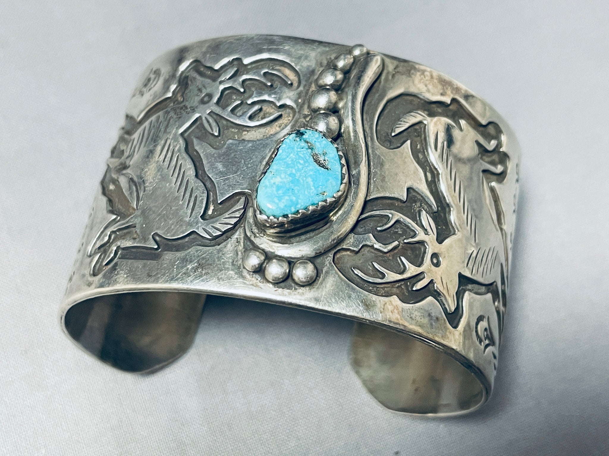 Best Frddy Platero Vintage Native American Navajo Turquoise Sterling Silver Bracelet