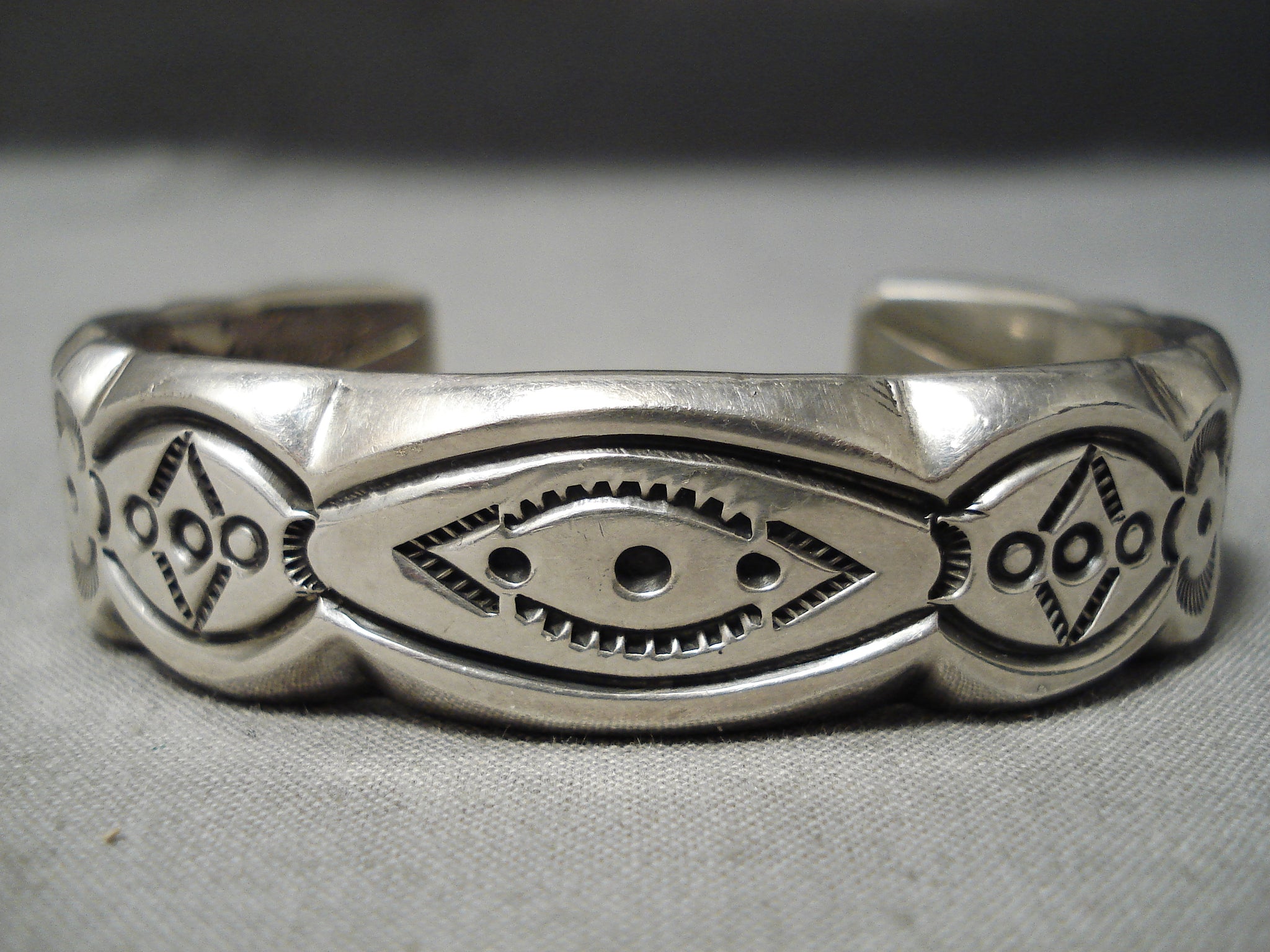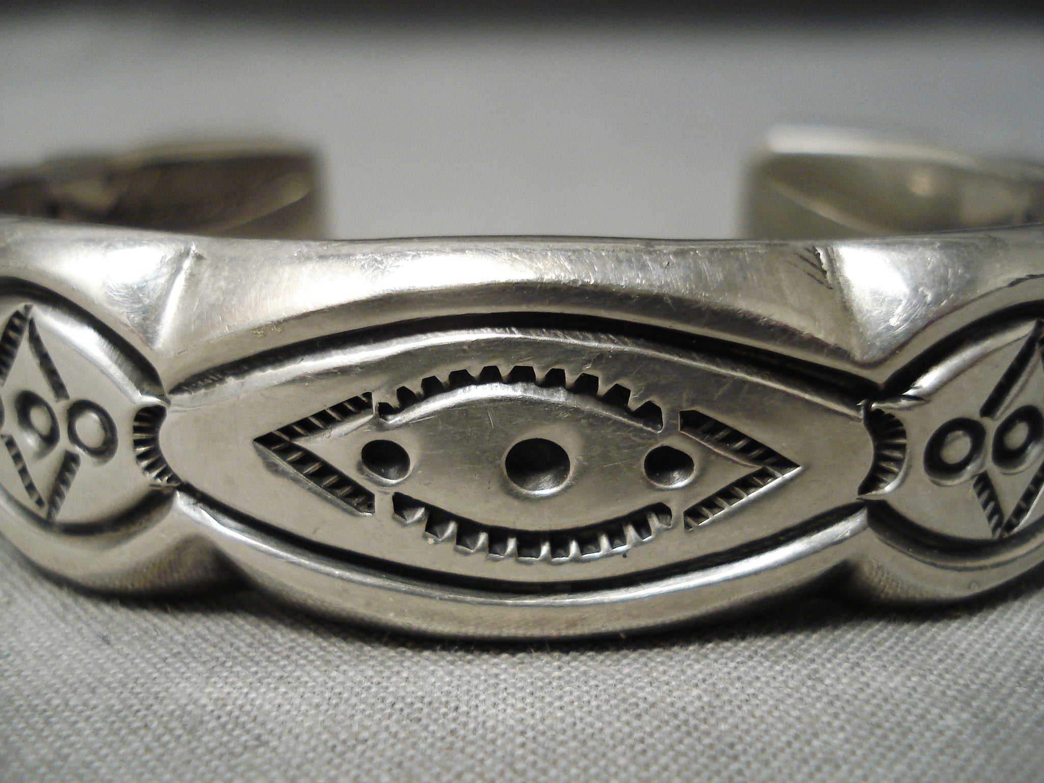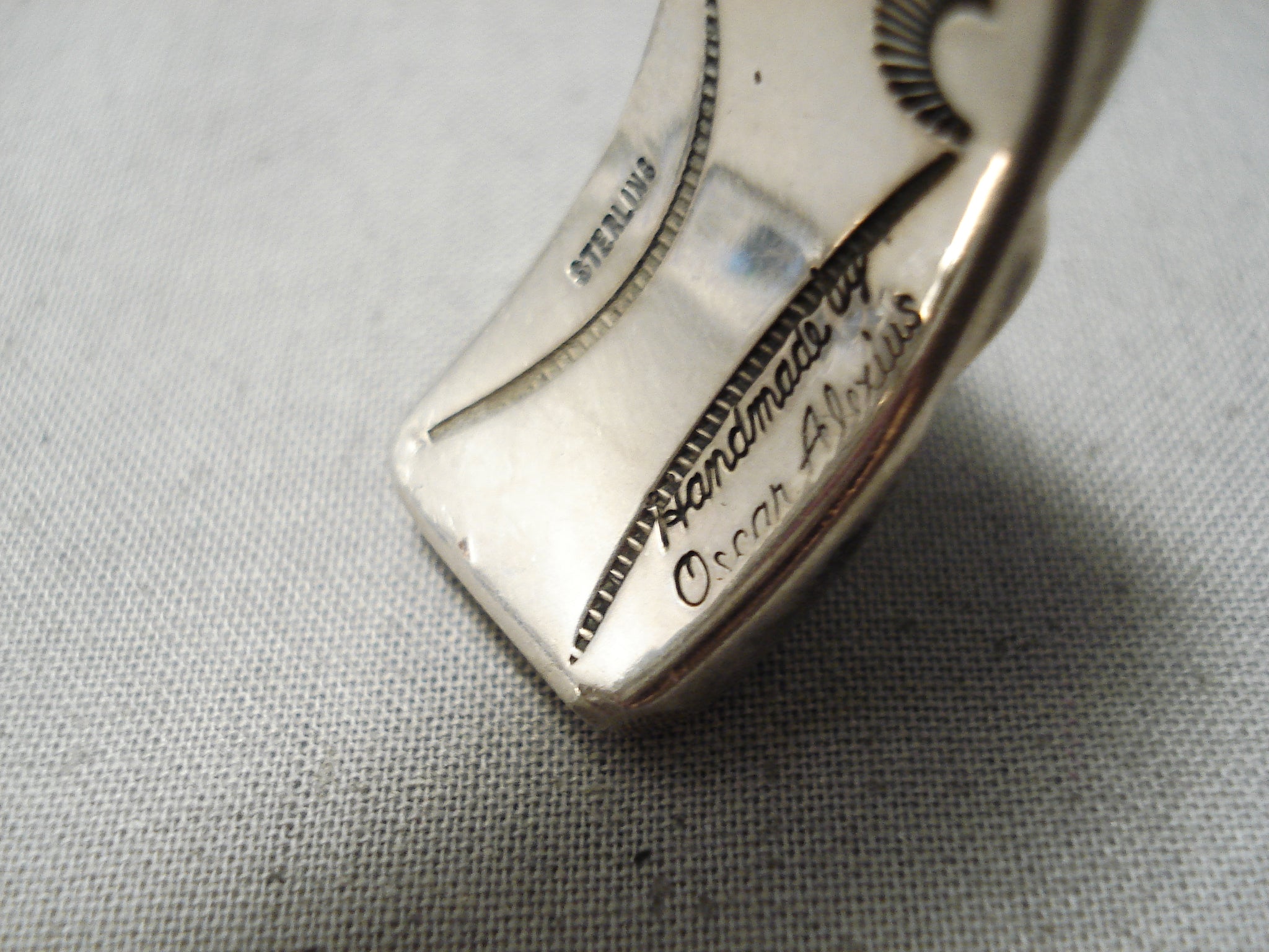 Best Hand Tooled Vintage Native American Navajo Oscar Alexius Sterling Silver Heavy Bracelet