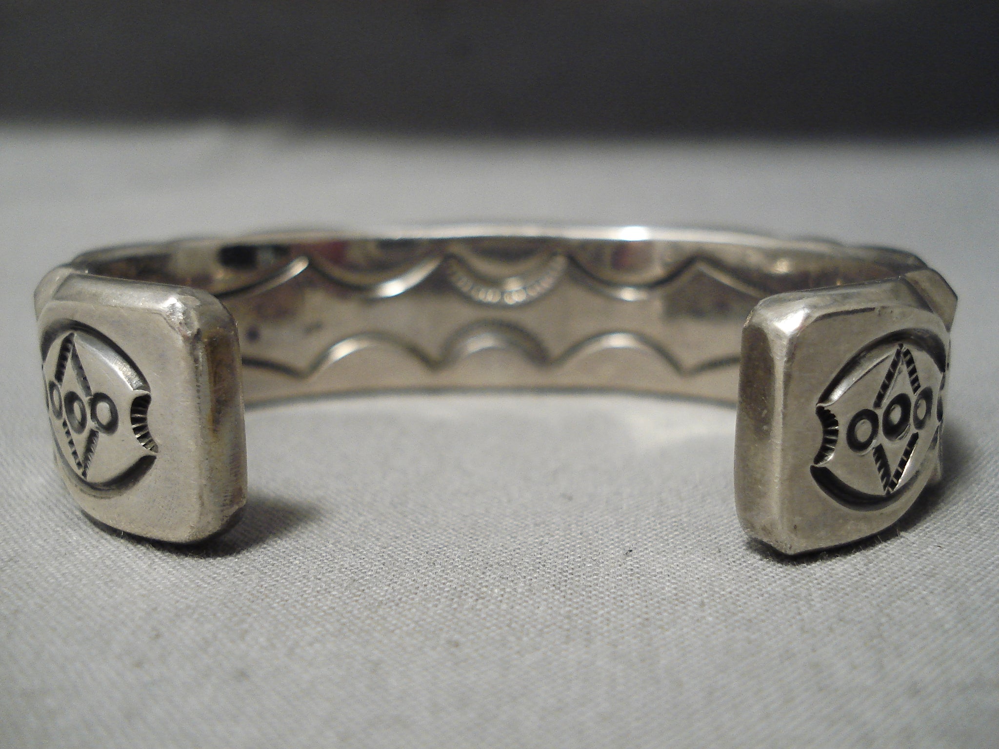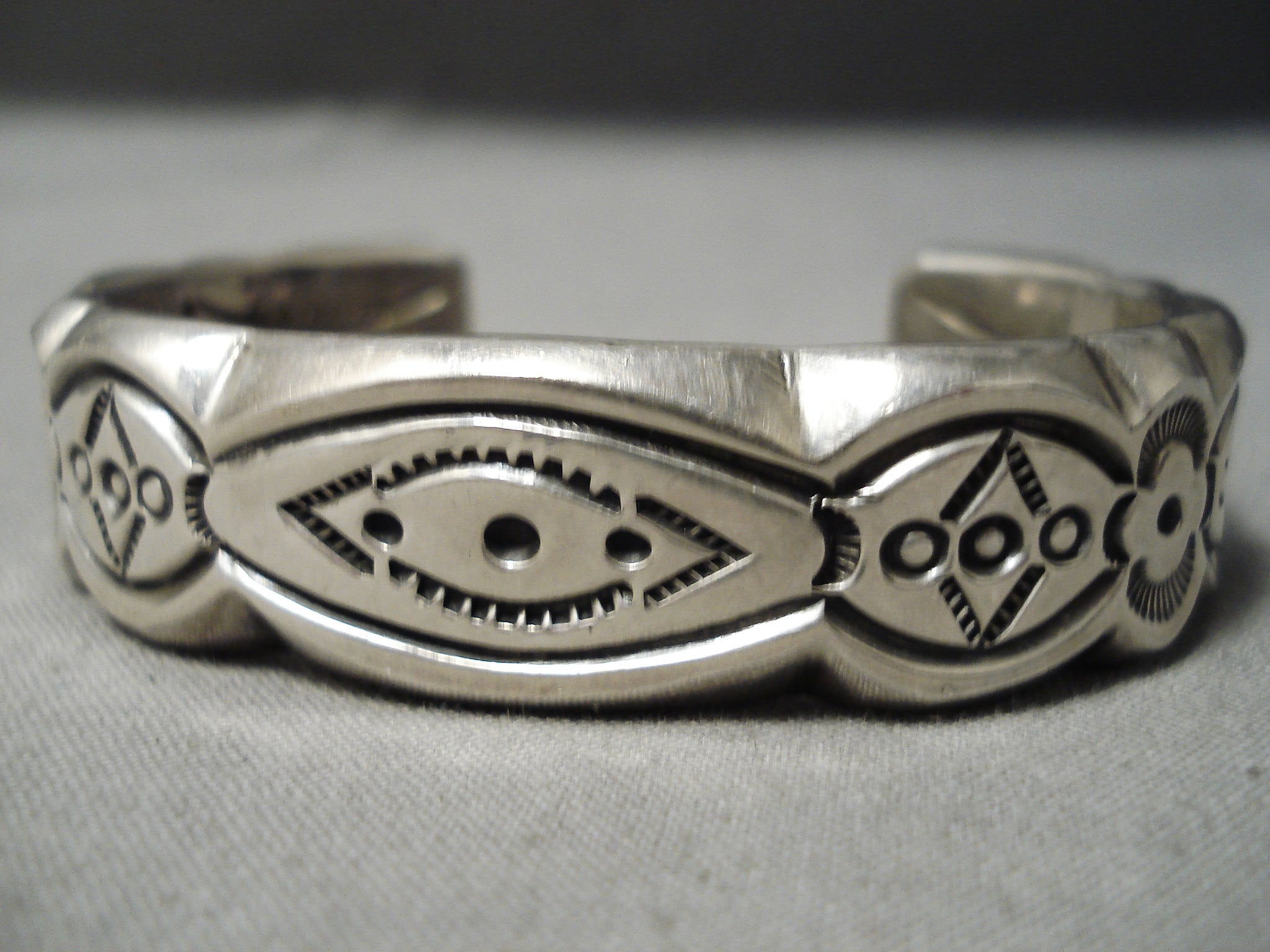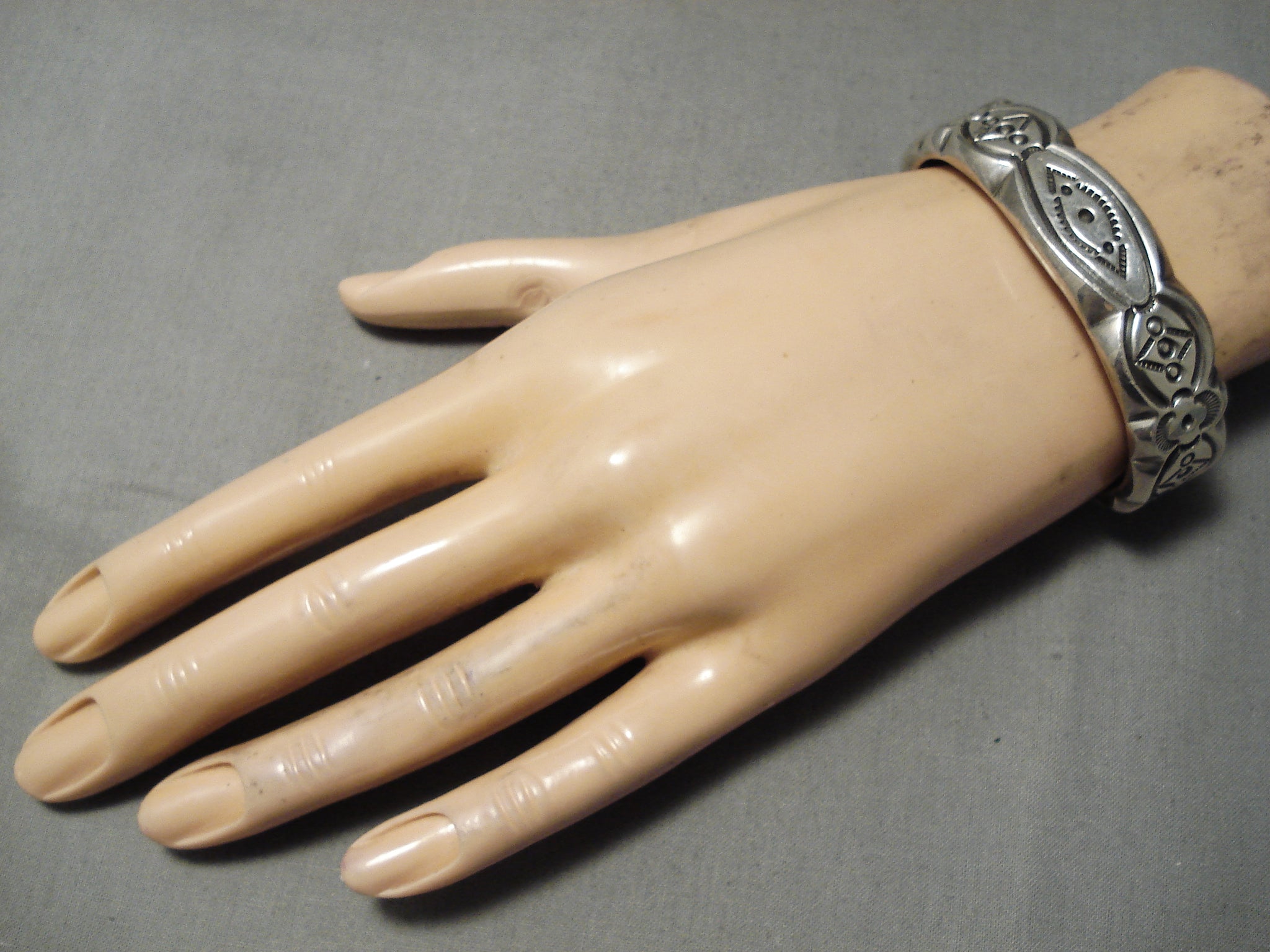 Best Hand Tooled Vintage Native American Navajo Oscar Alexius Sterling Silver Heavy Bracelet