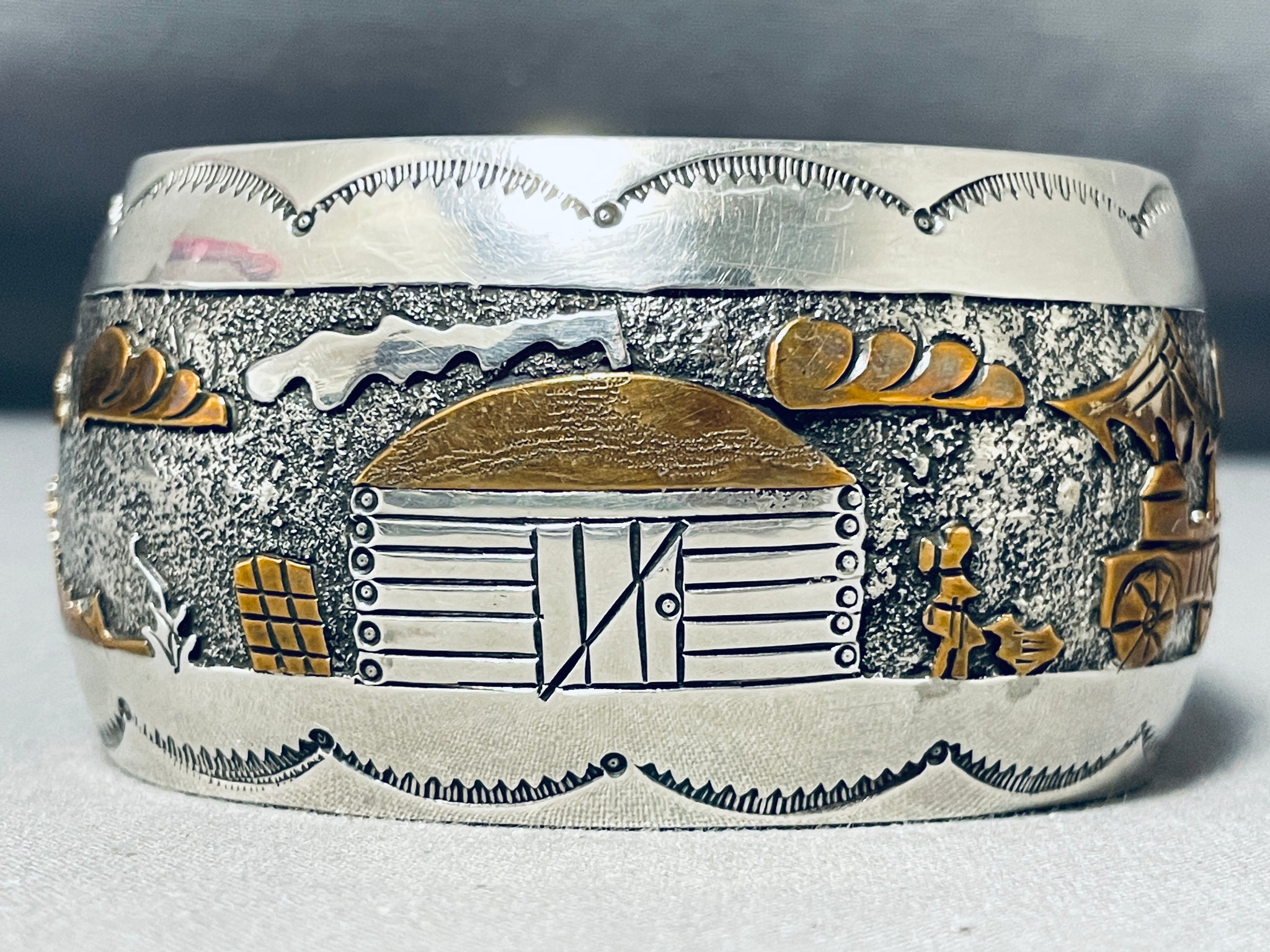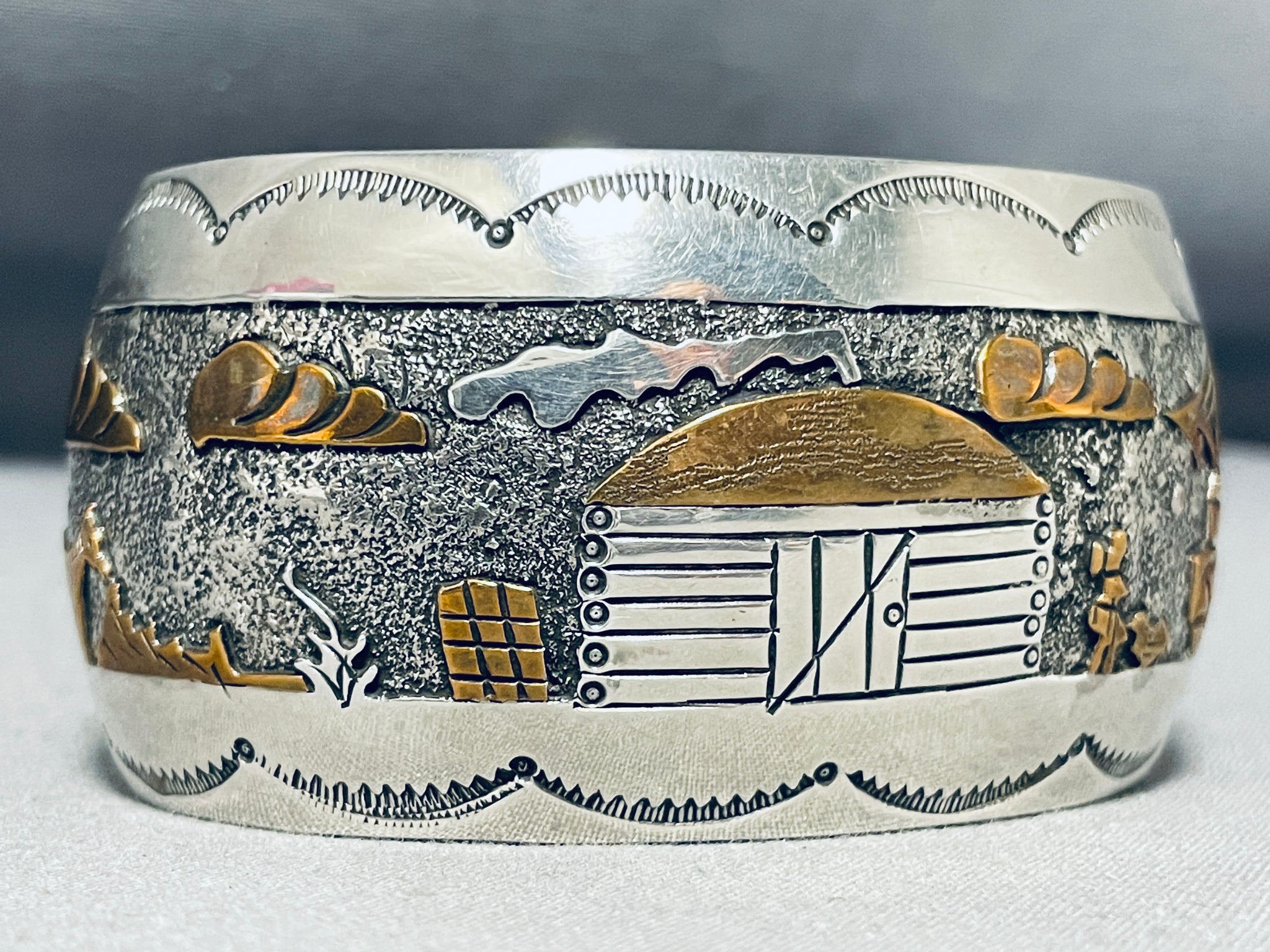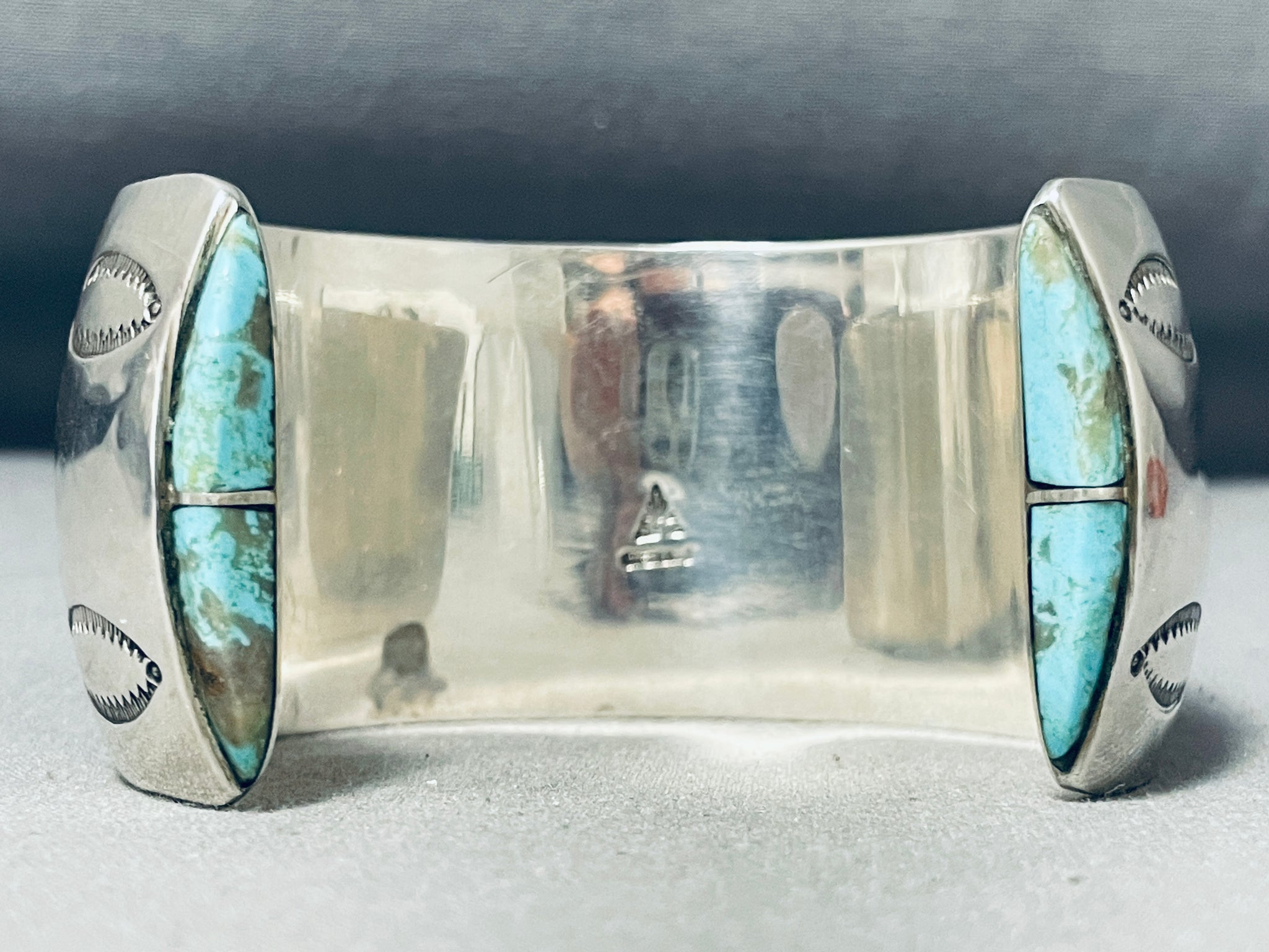 Best Hogan Vintage Native American Navajo End Turquoise Inlay Sterling Silver Bracelet