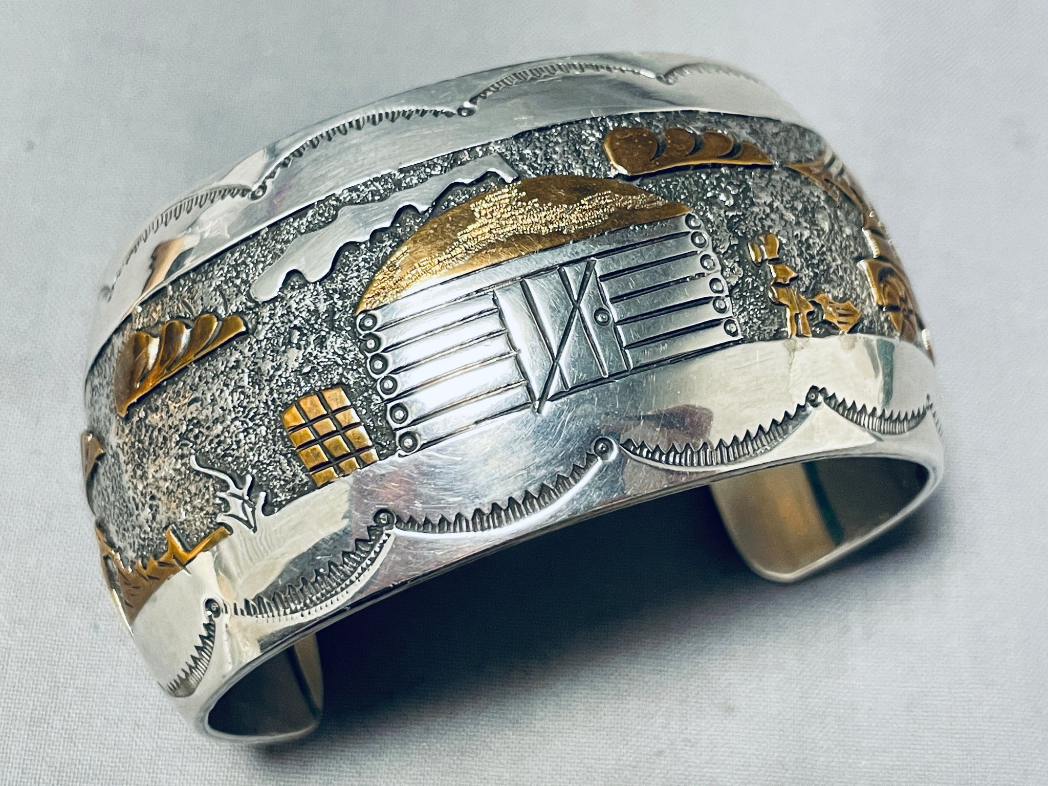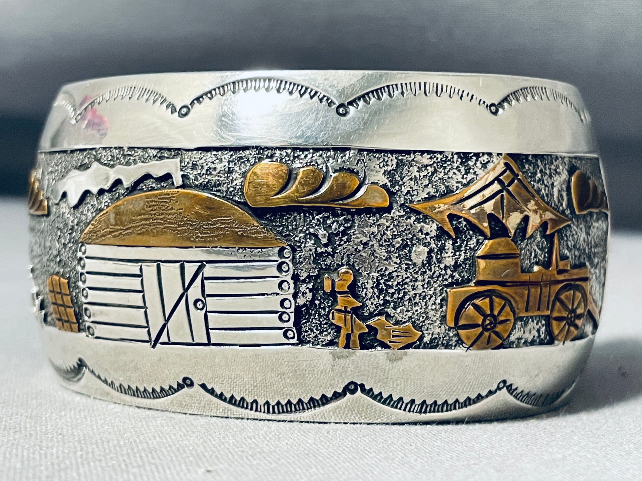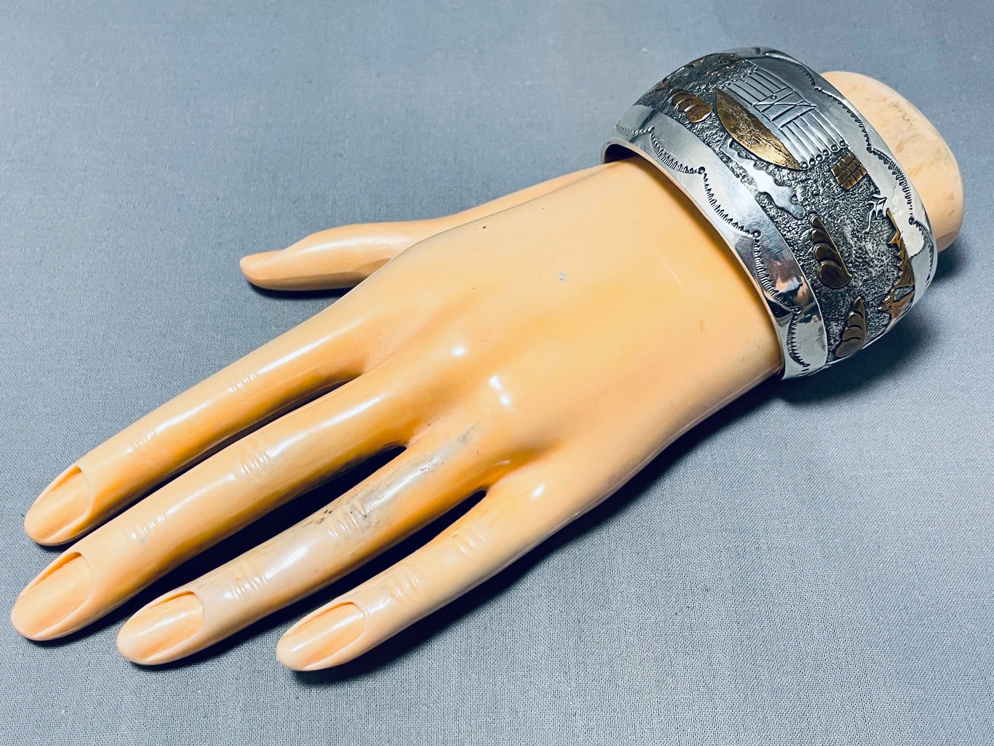 Best Hogan Vintage Native American Navajo End Turquoise Inlay Sterling Silver Bracelet