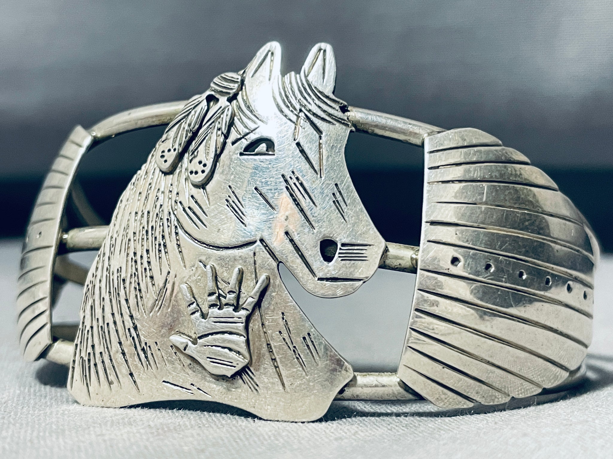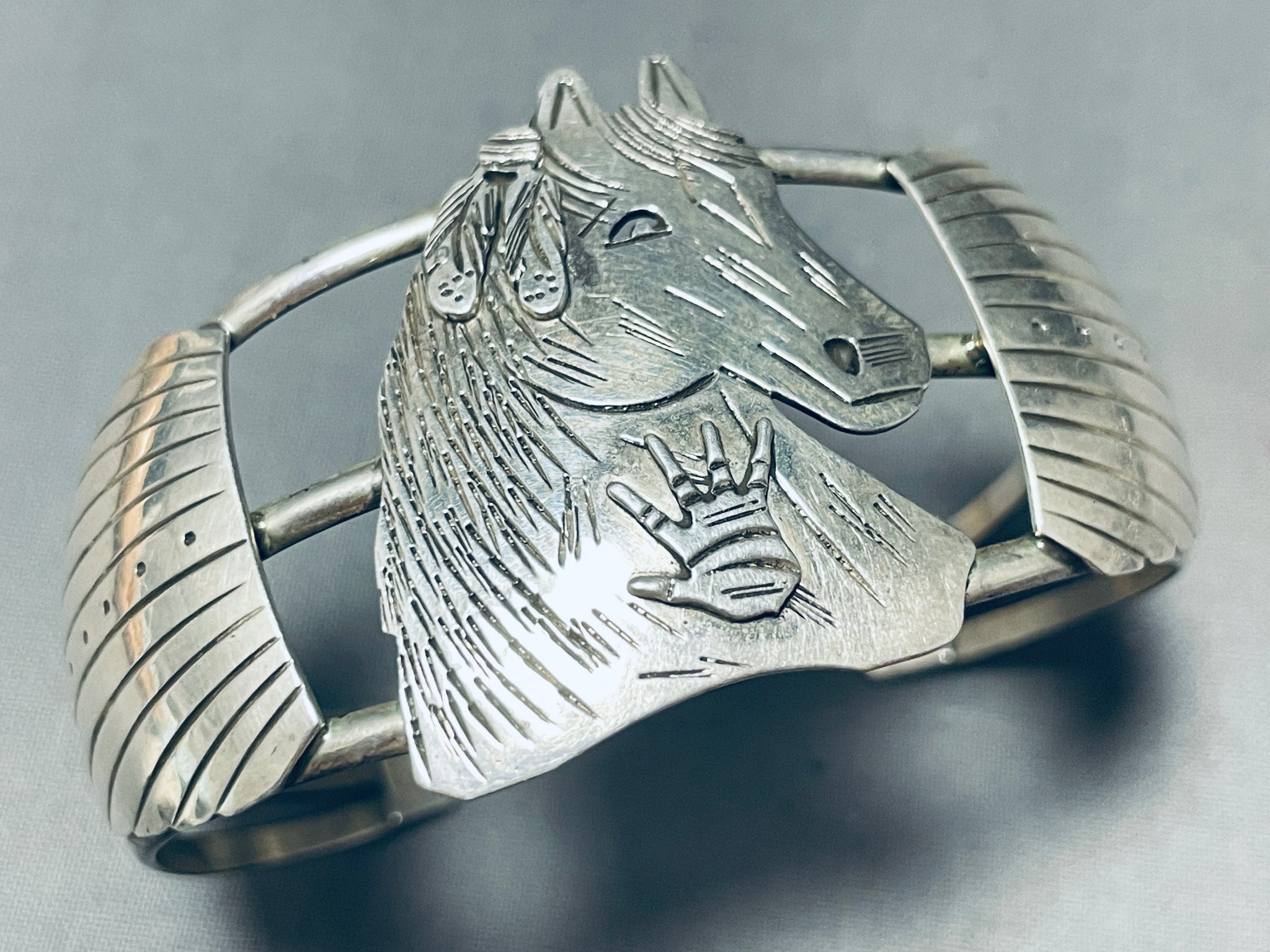 Best Horse Head Vintage Native American Navajo Sterling Silver Bracelet Cuff