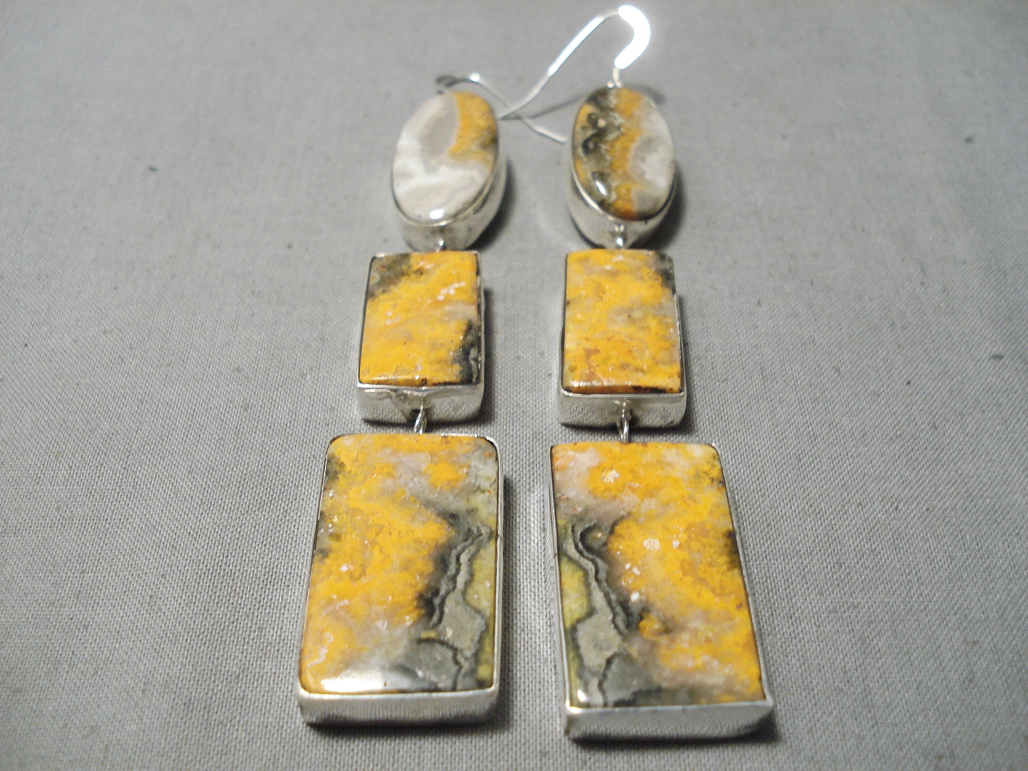 Best Native American Bumble Bee Jasper Sterling Silver Earrings Long
