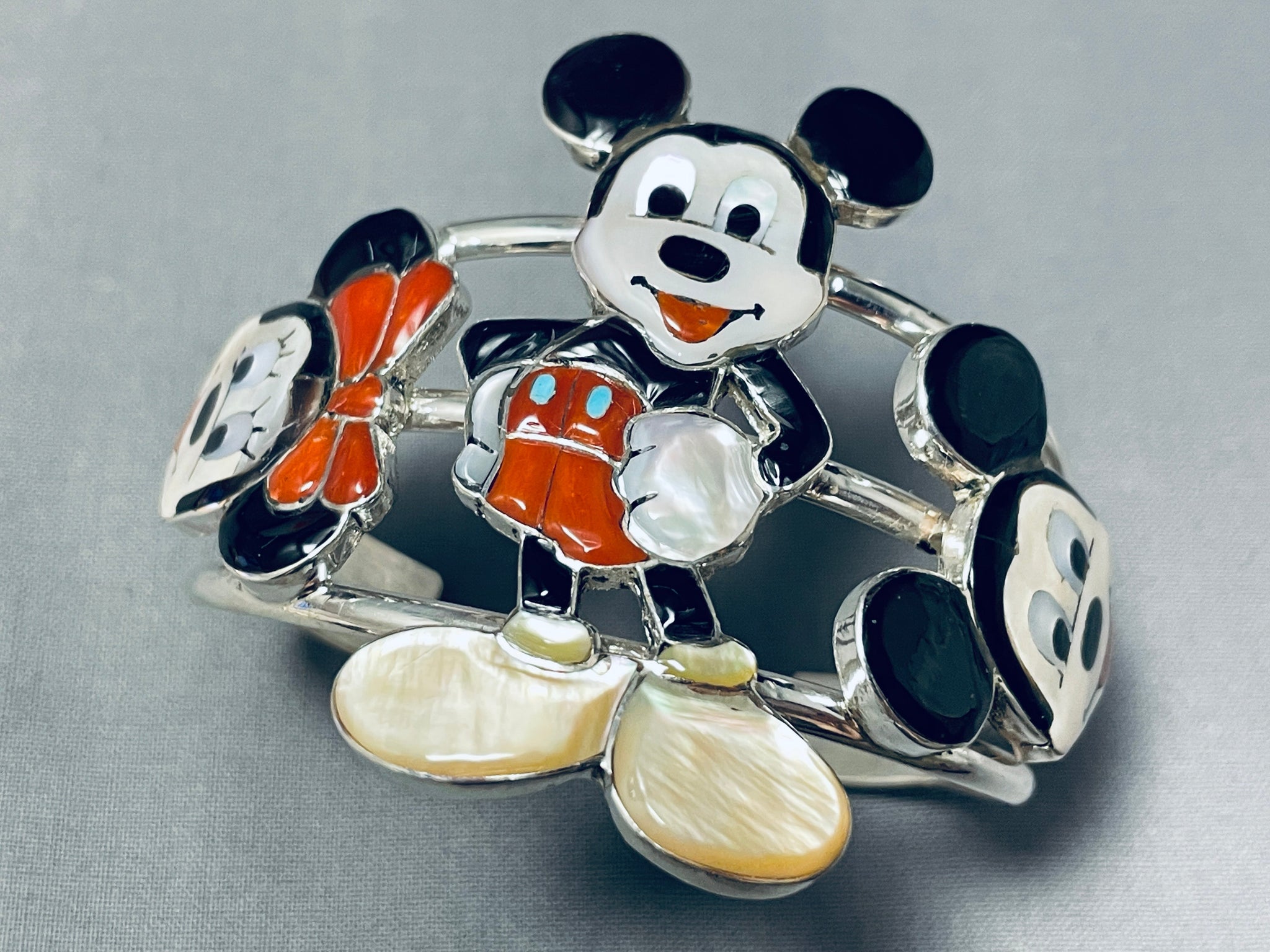 Best Native American Mickey Mouse Coral Sterling Silver Bracelet