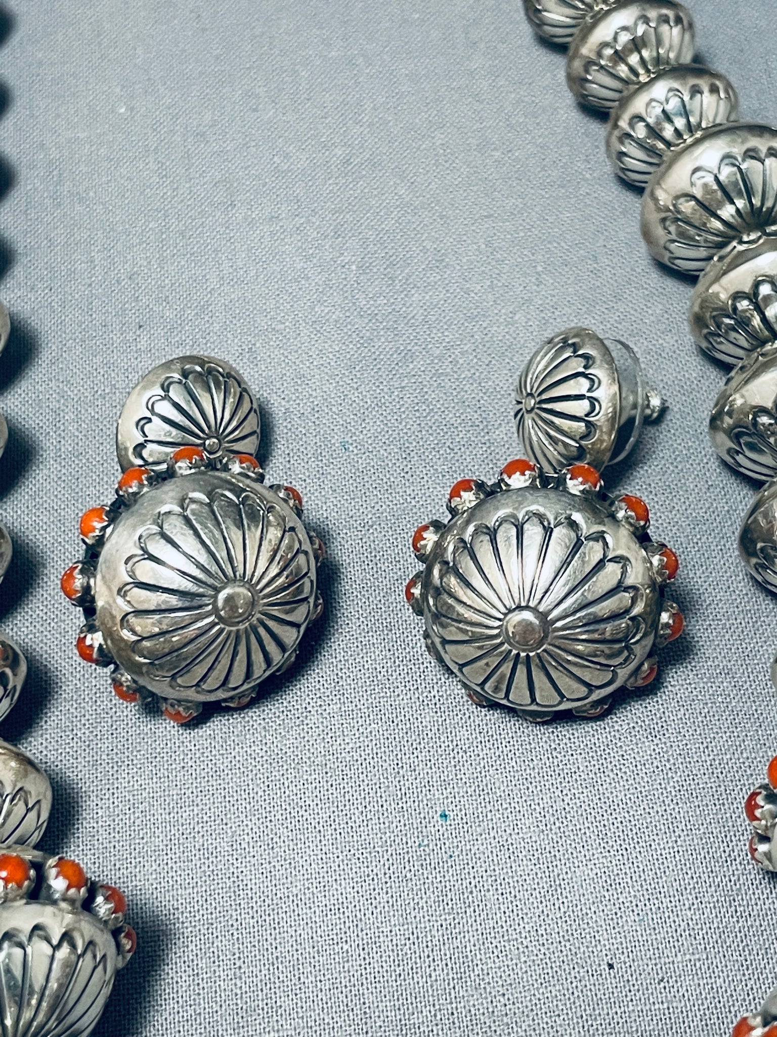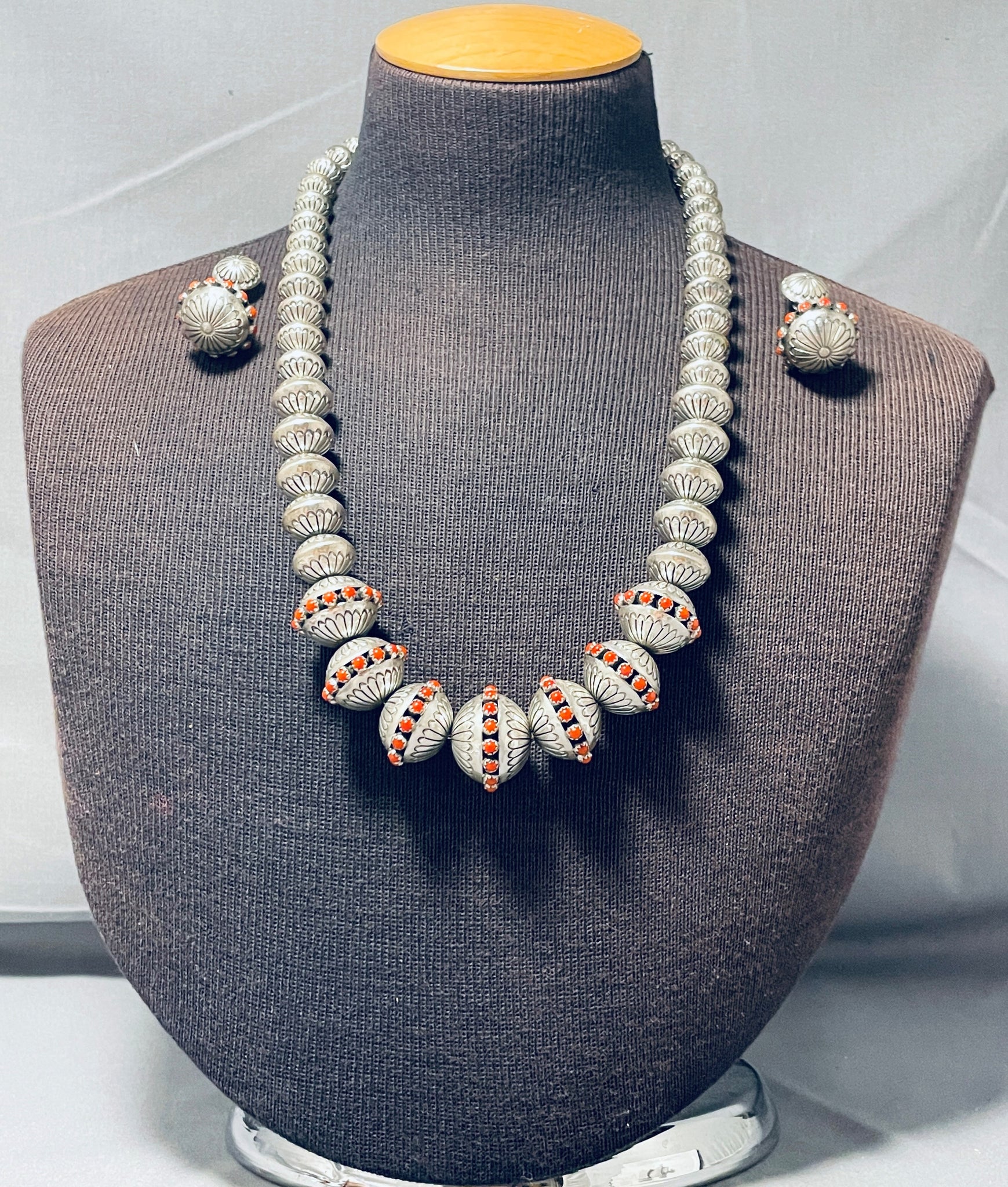 Best Native American Navajo 182 Gram Coral Sterling Silver Bead Necklace