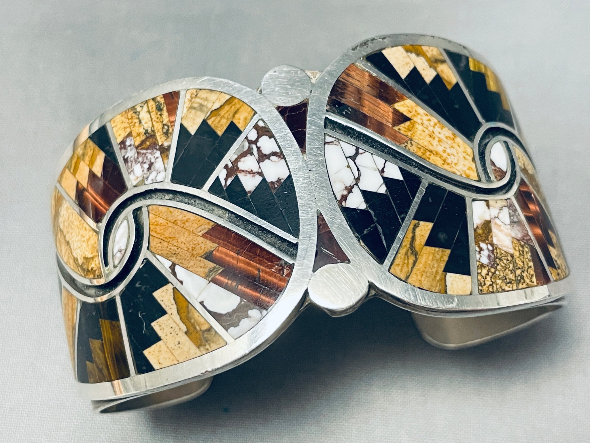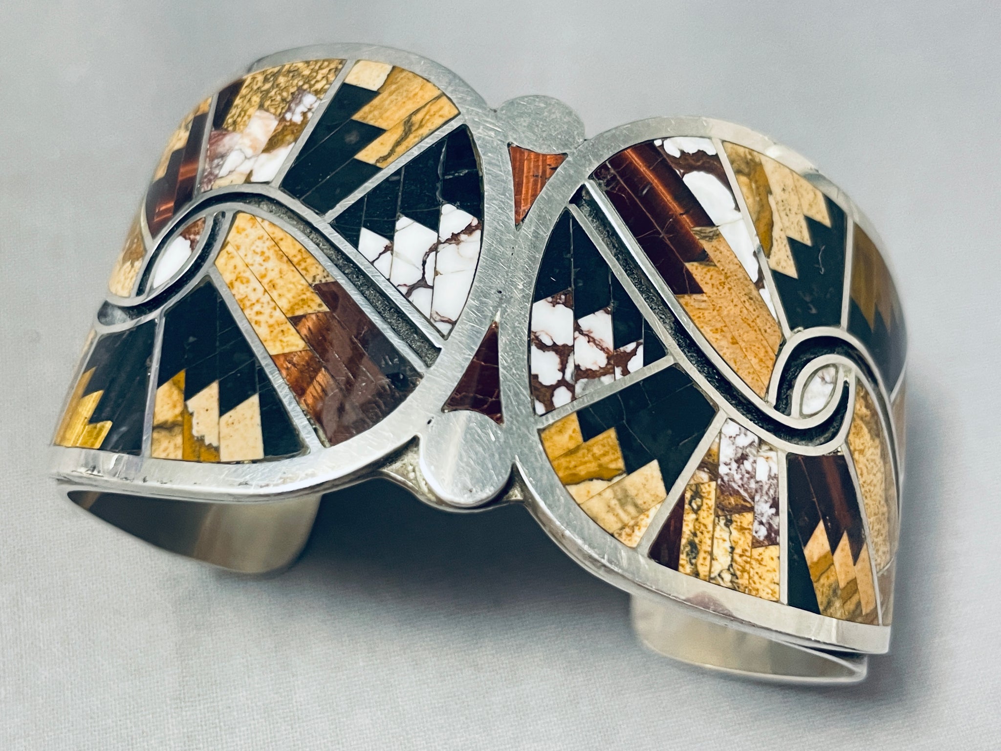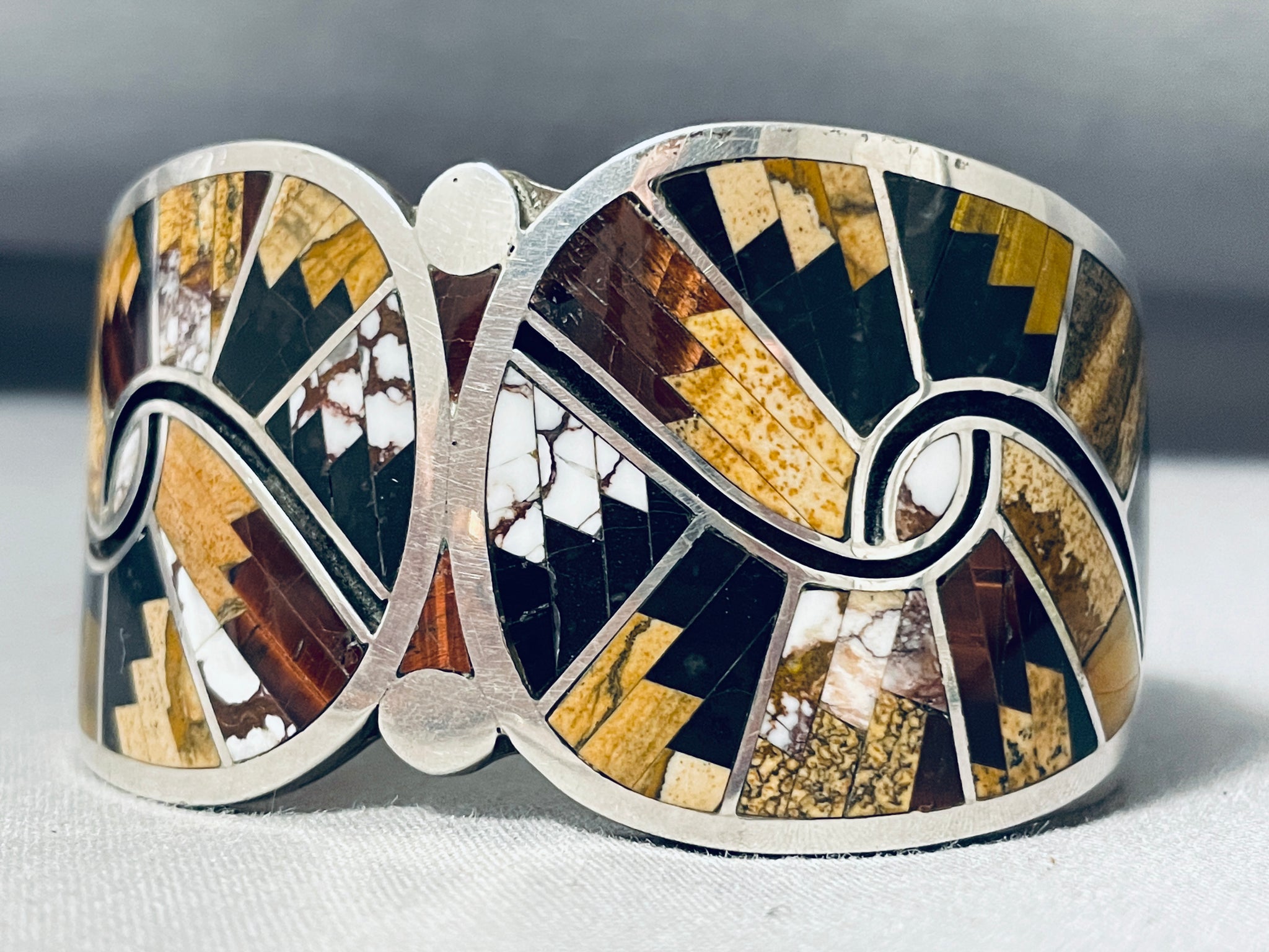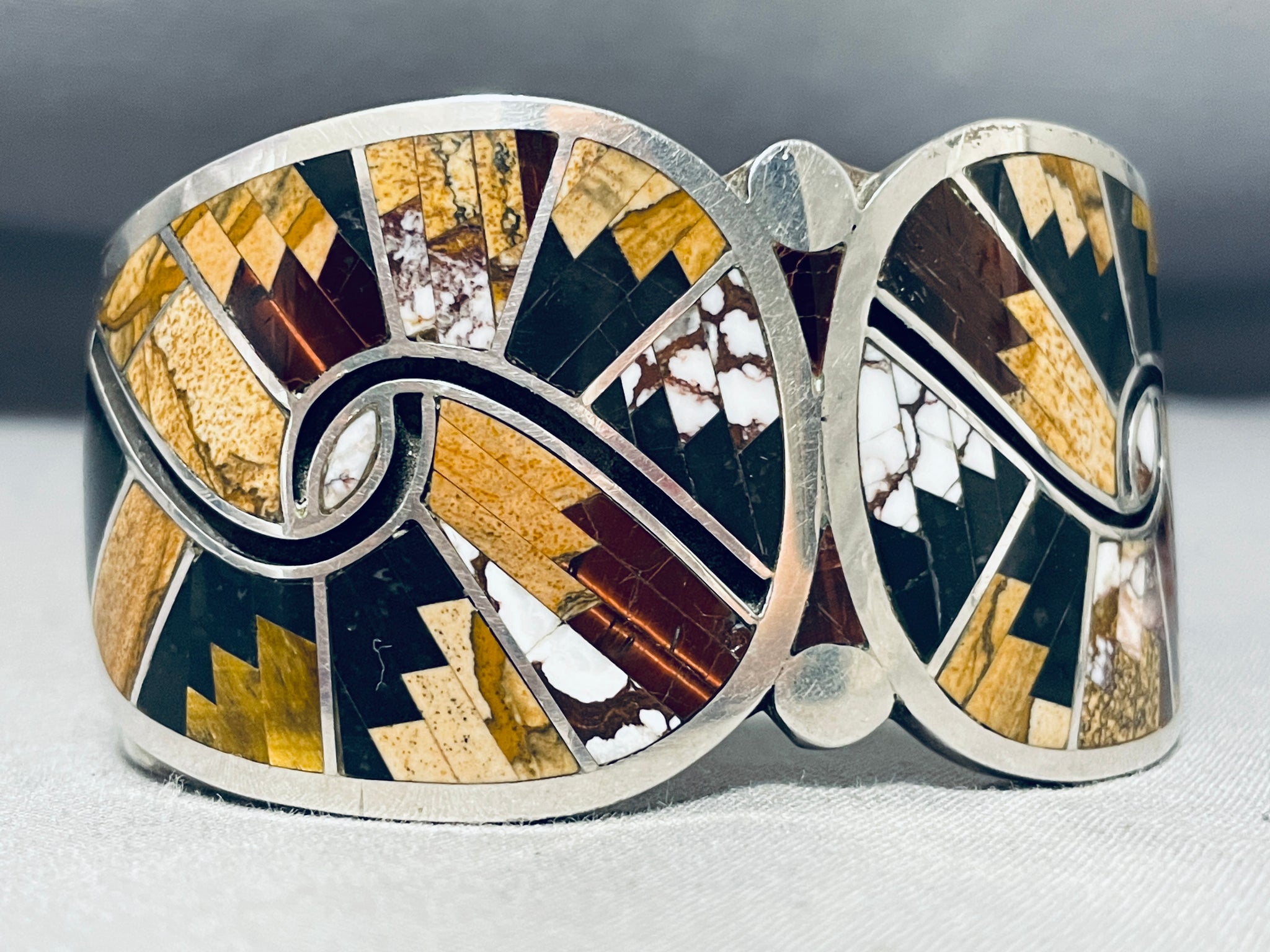 Best Native American Navajo Inlay Tiger Eye Black Onyx Wildhorse Sterling Silver Bracelet