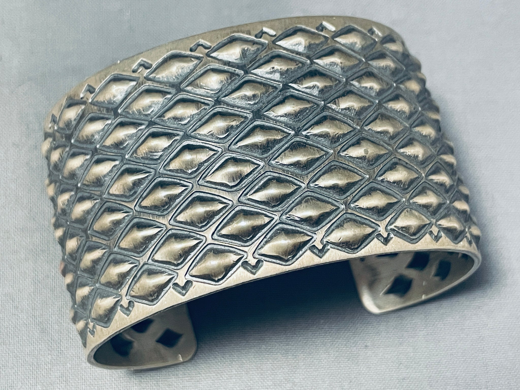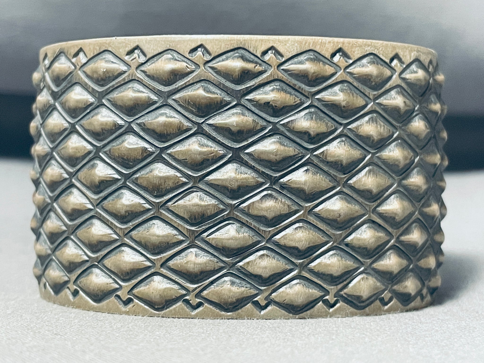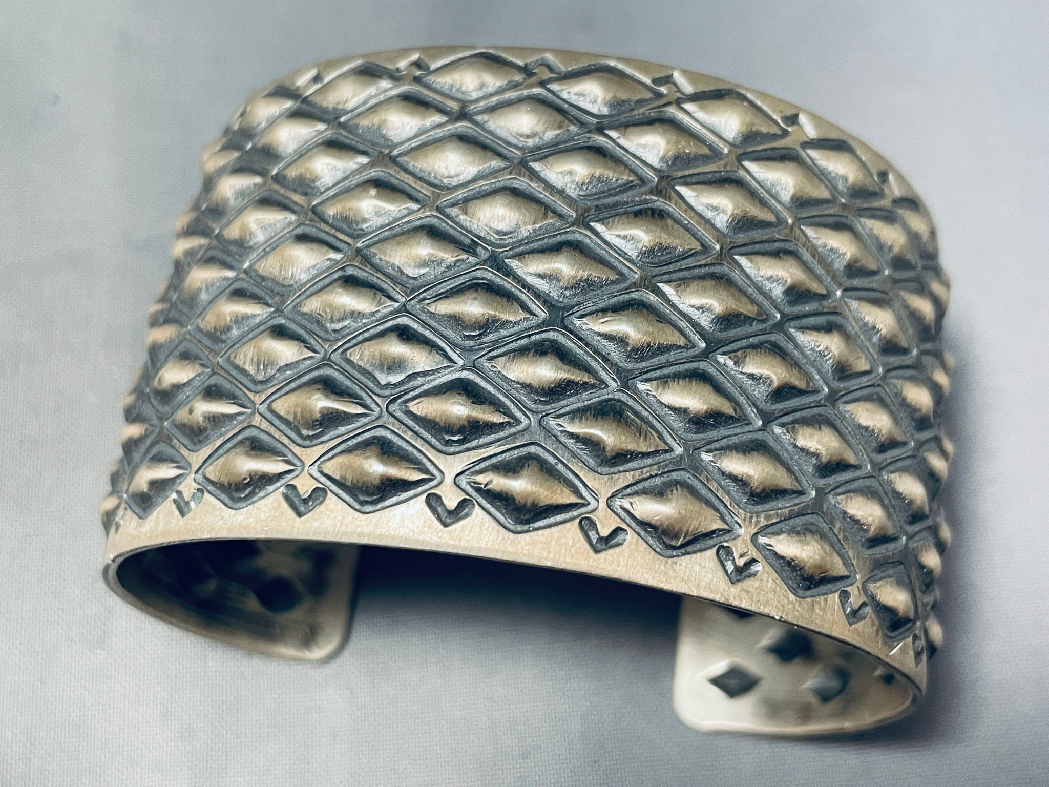 Best Native American Navajo Repoussed Diamond Sterling Silver Wide Bracelet