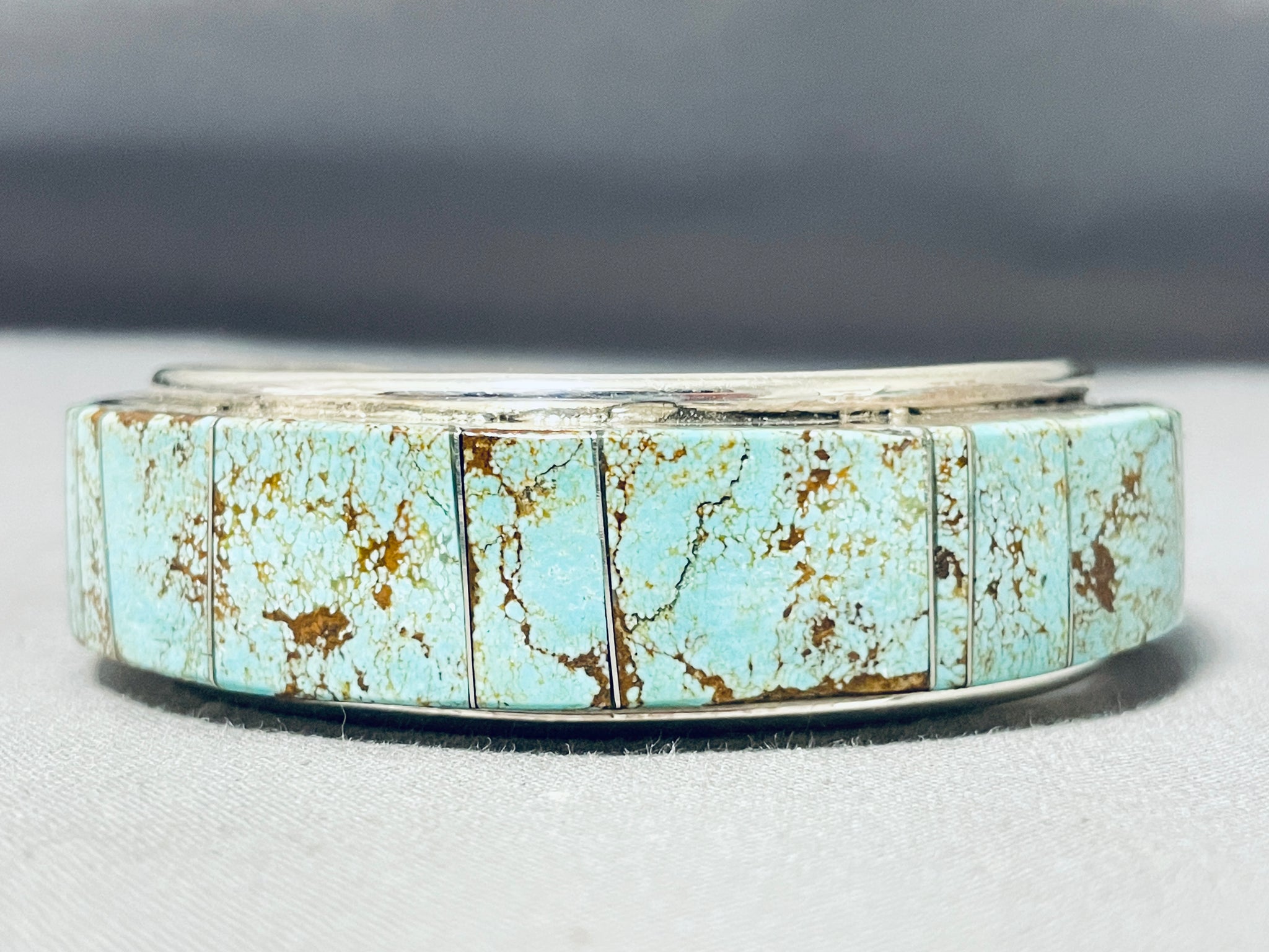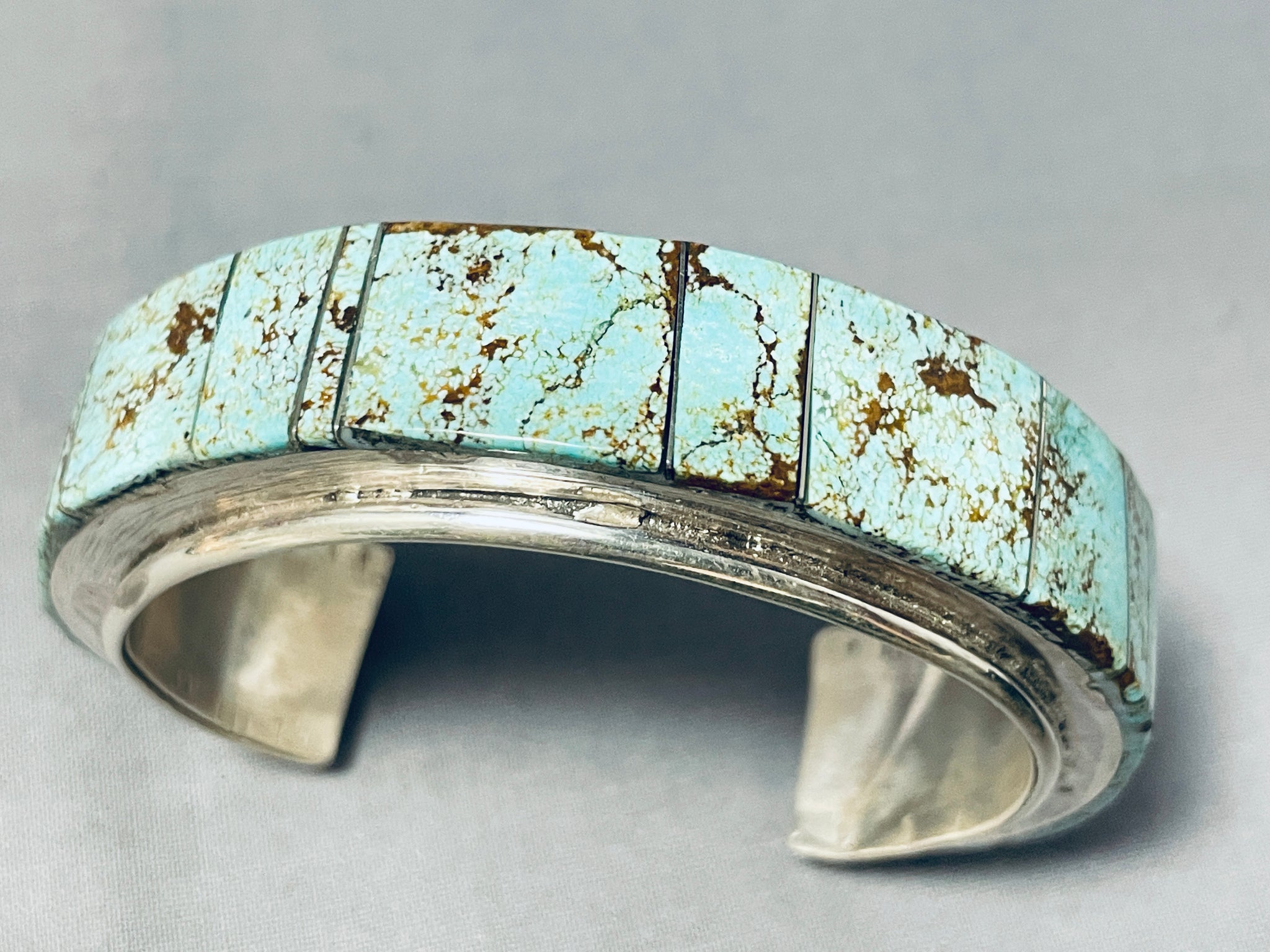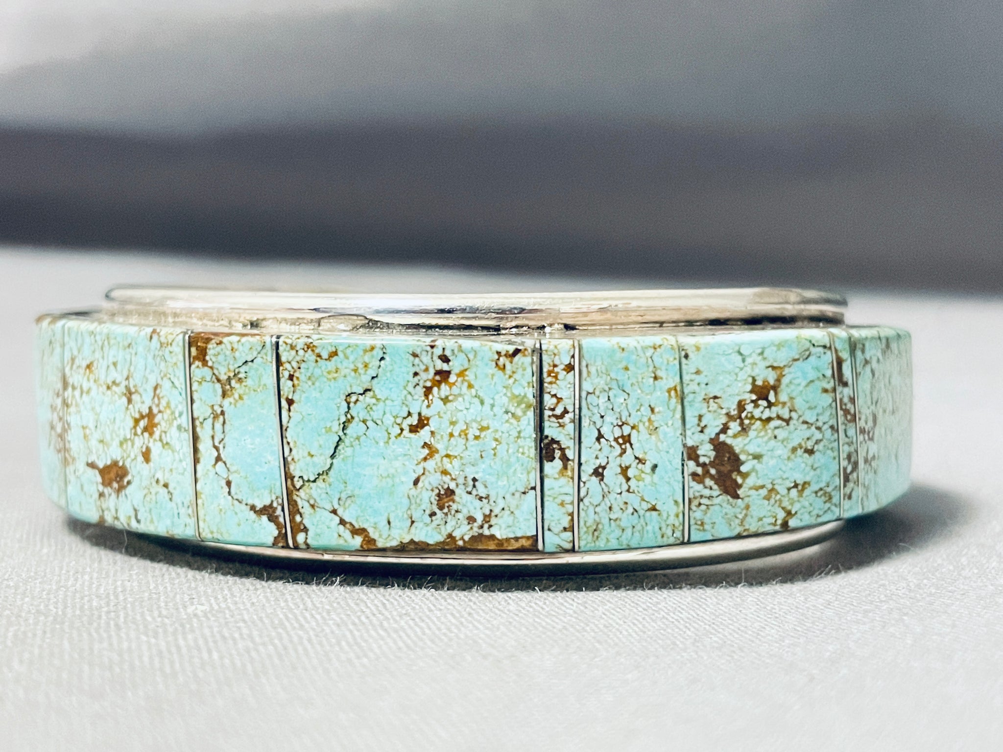 Best Native American Navajo Signed #8 Turquoise Inlay Sterling Silver Bracelet