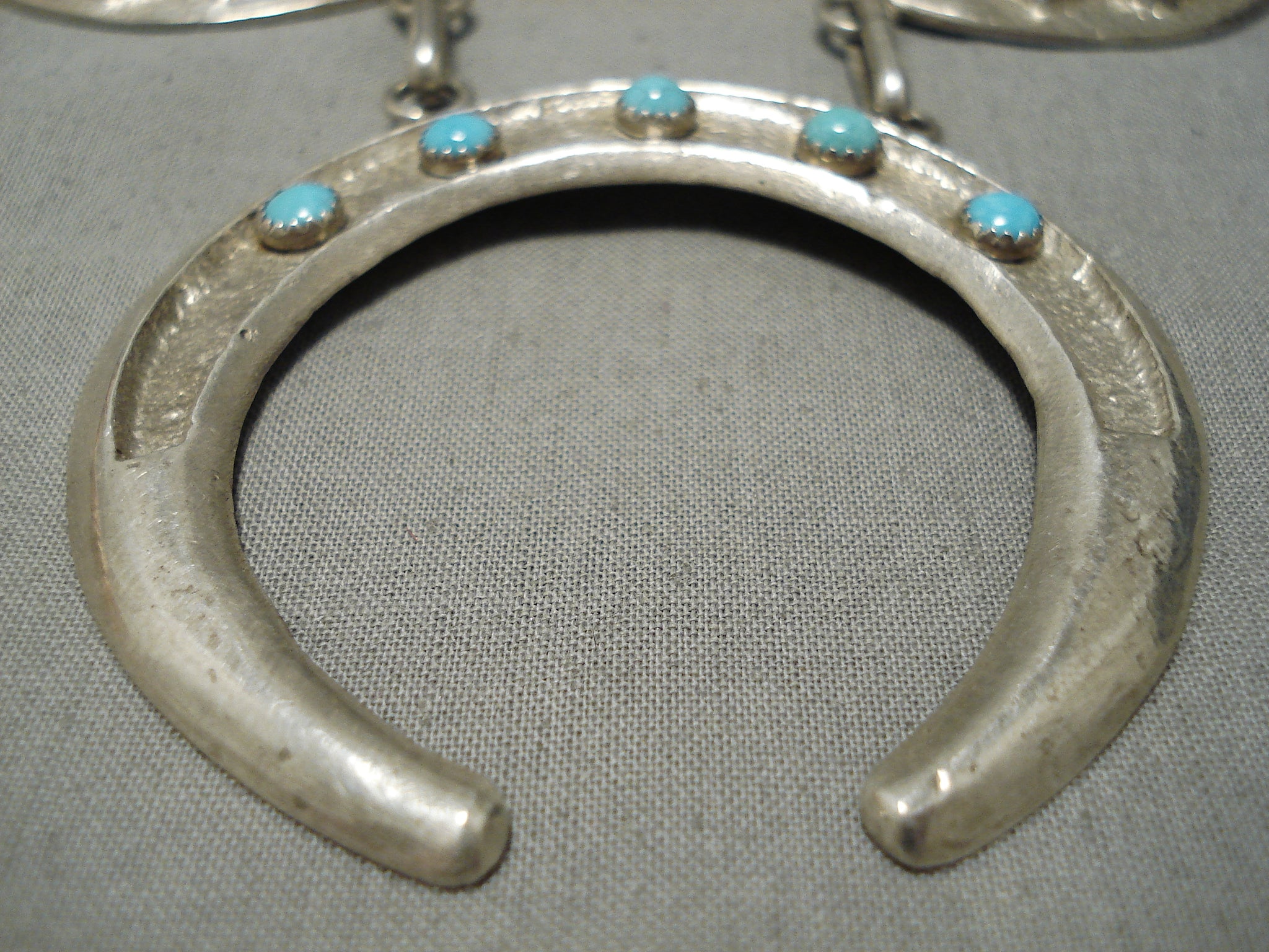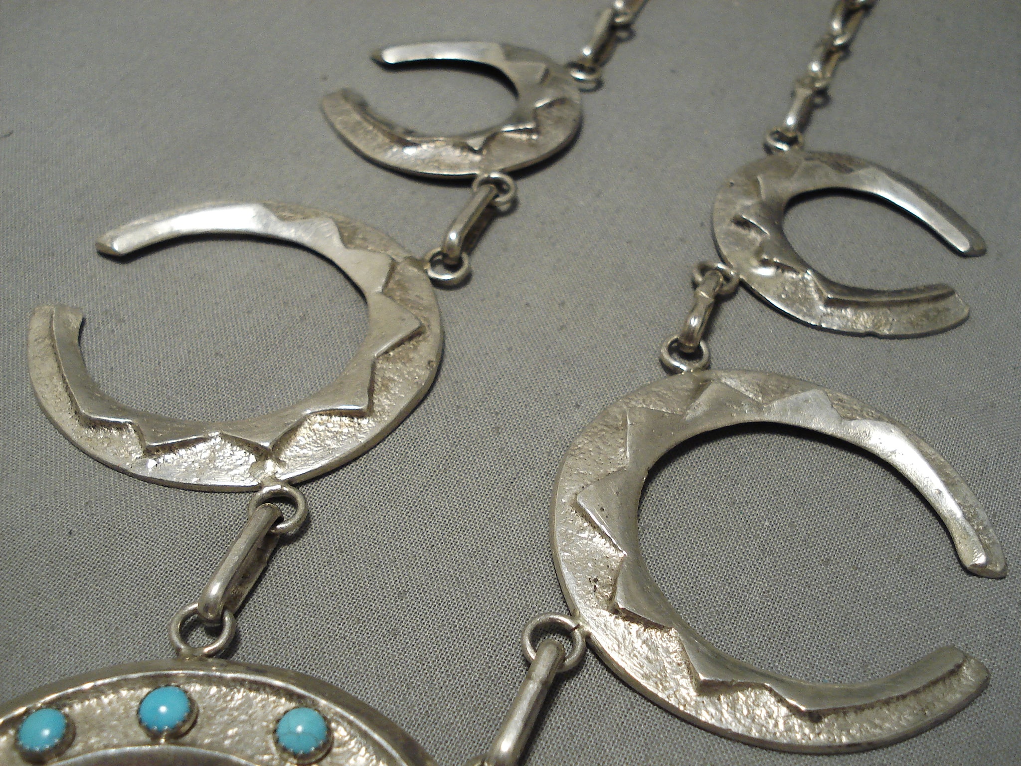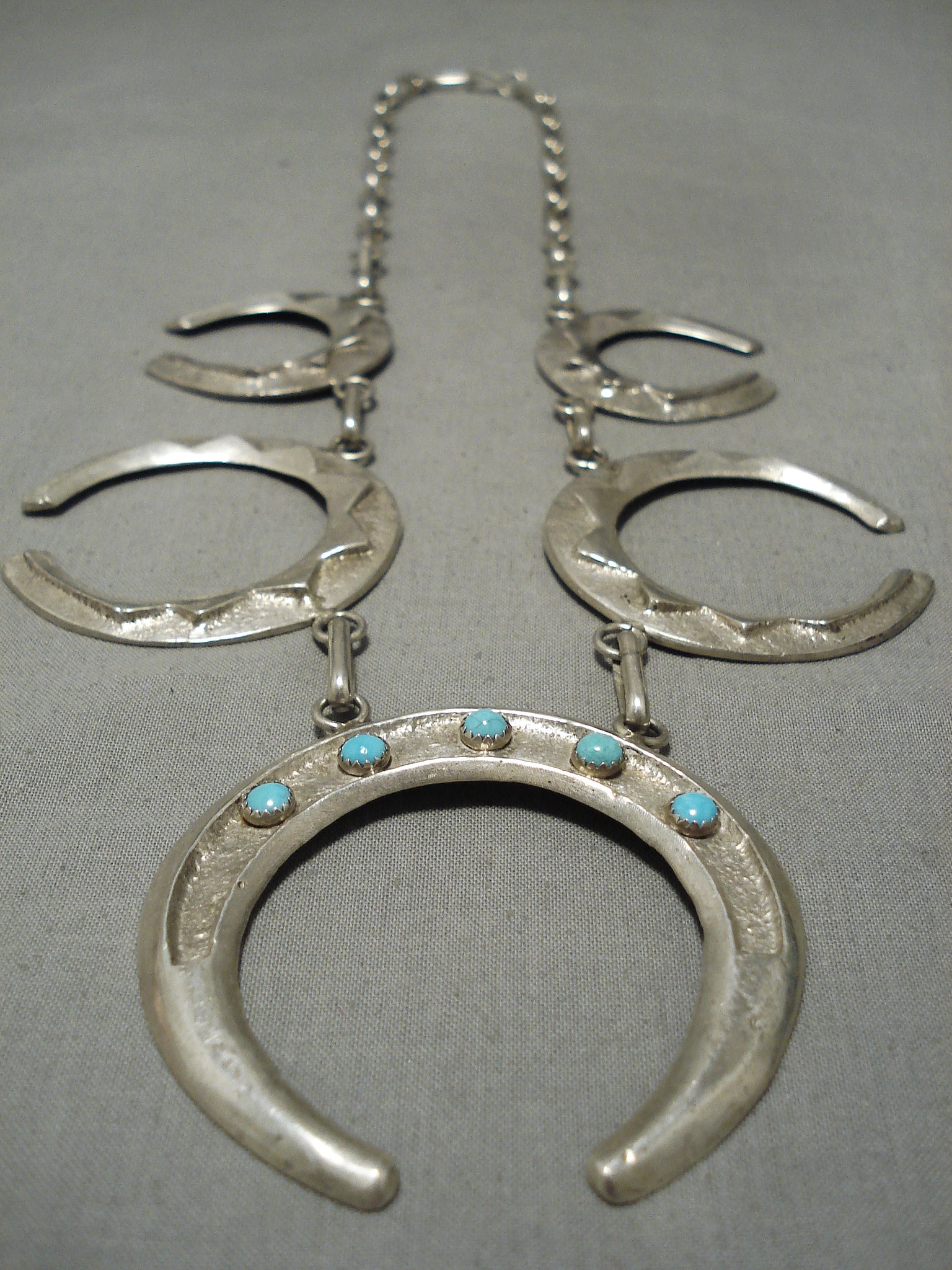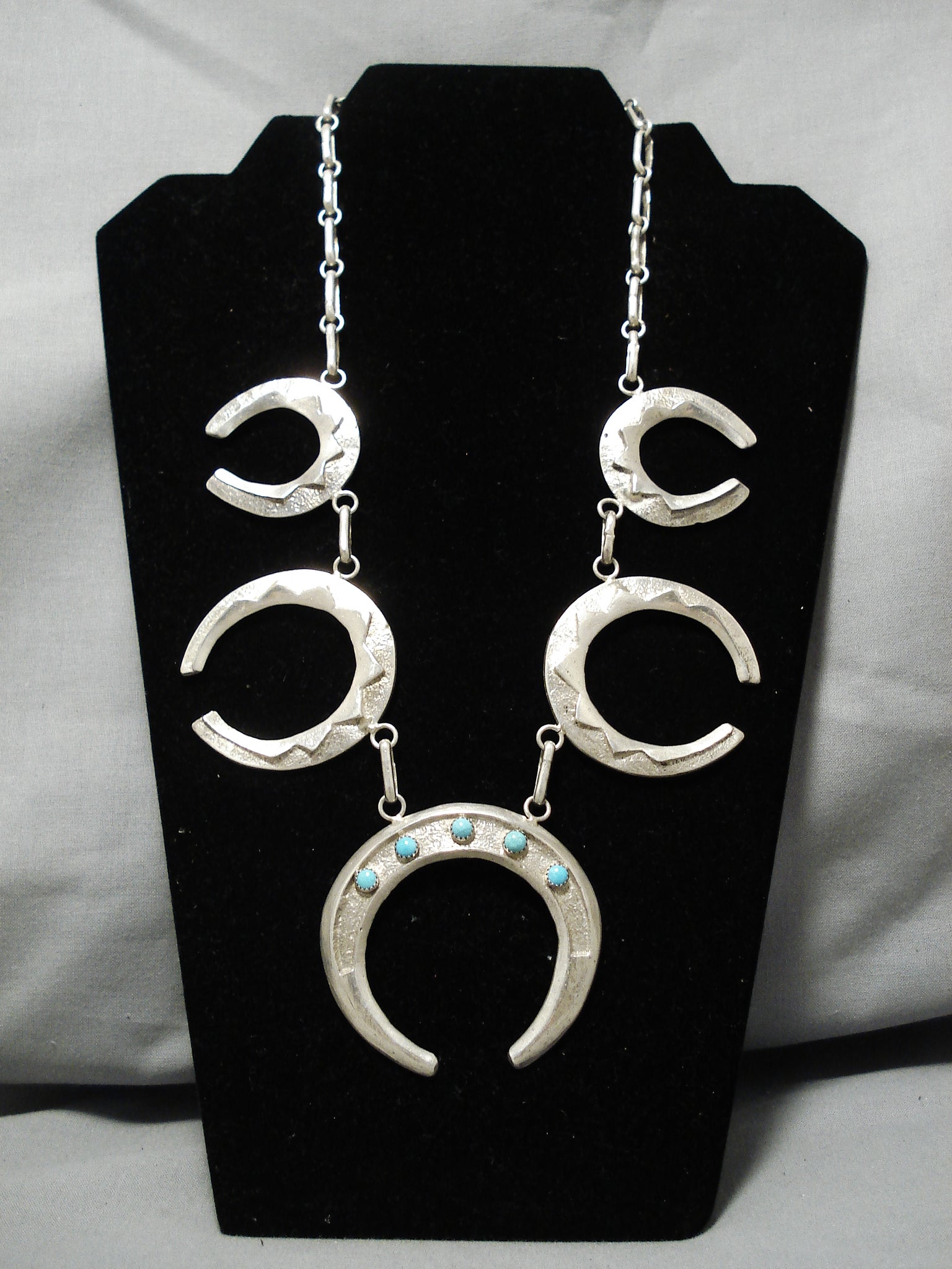 Best Priced Vintage Native American Navajo Turquoise Sterling Silver Squash Blossom Necklace