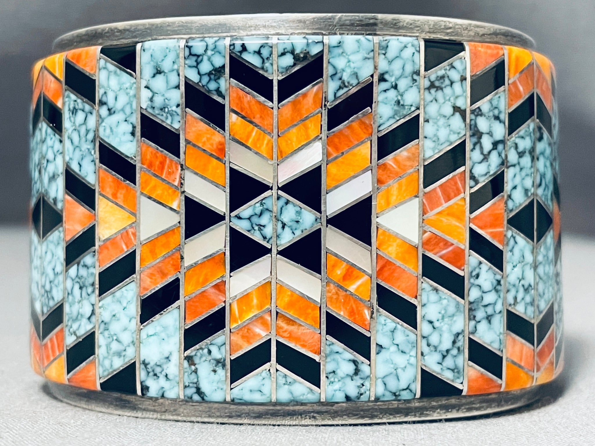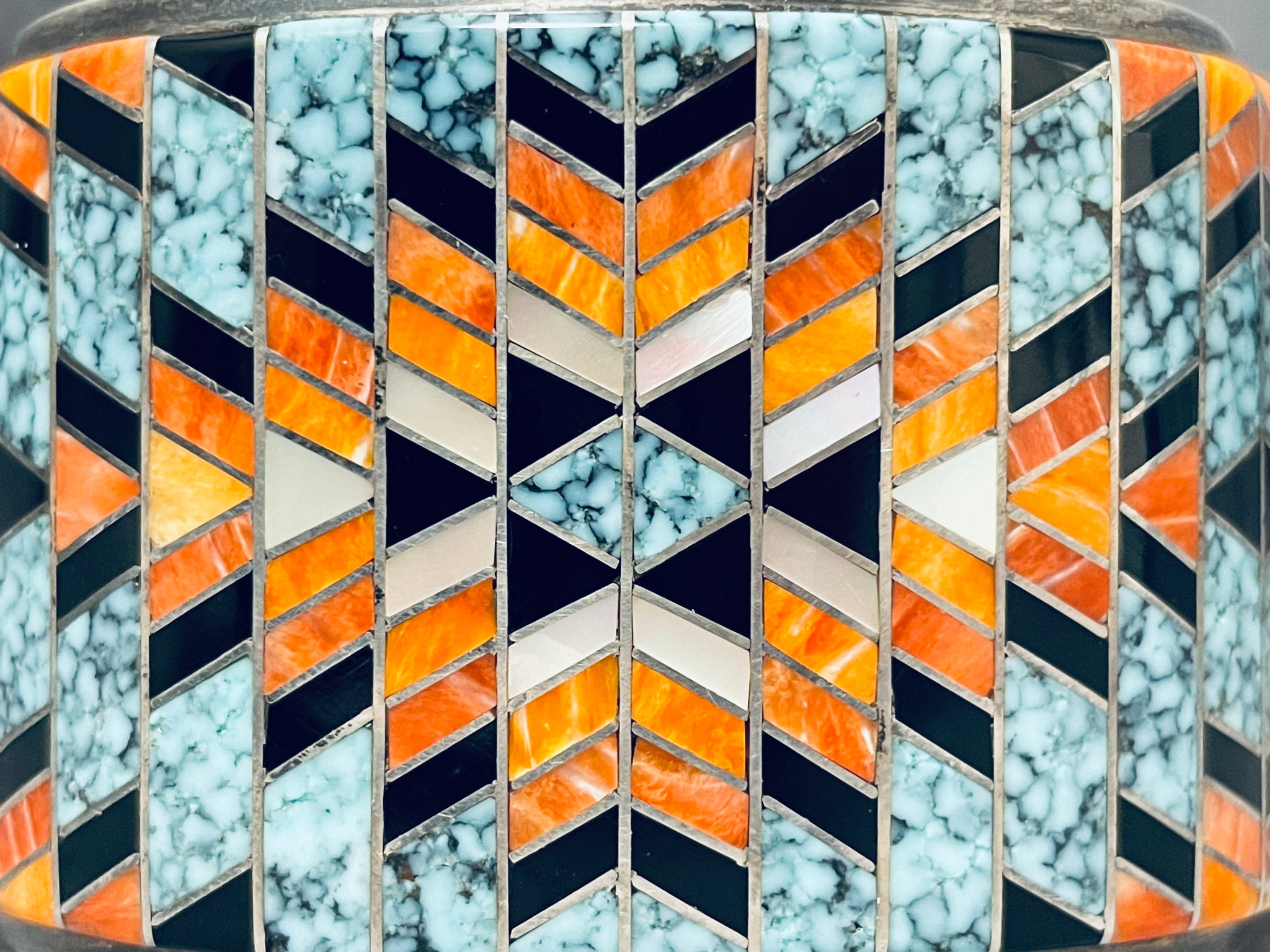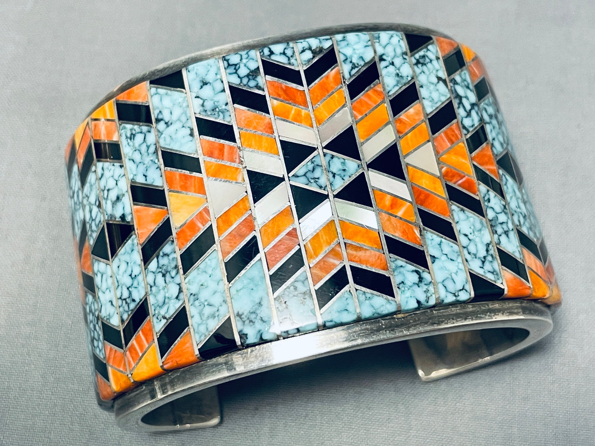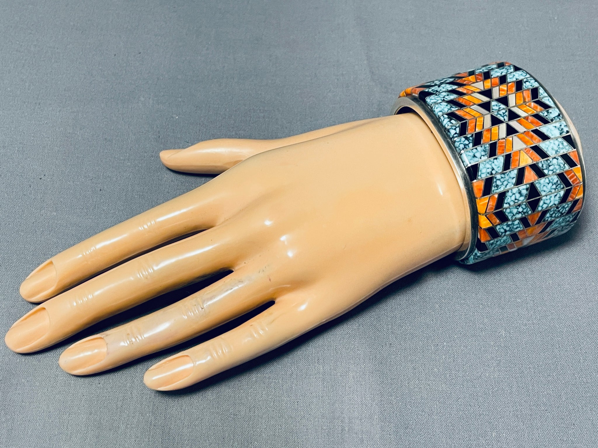 Best Rug Turquoise Inlay Vintage Native American Navajo Sterling Silver Bracelet