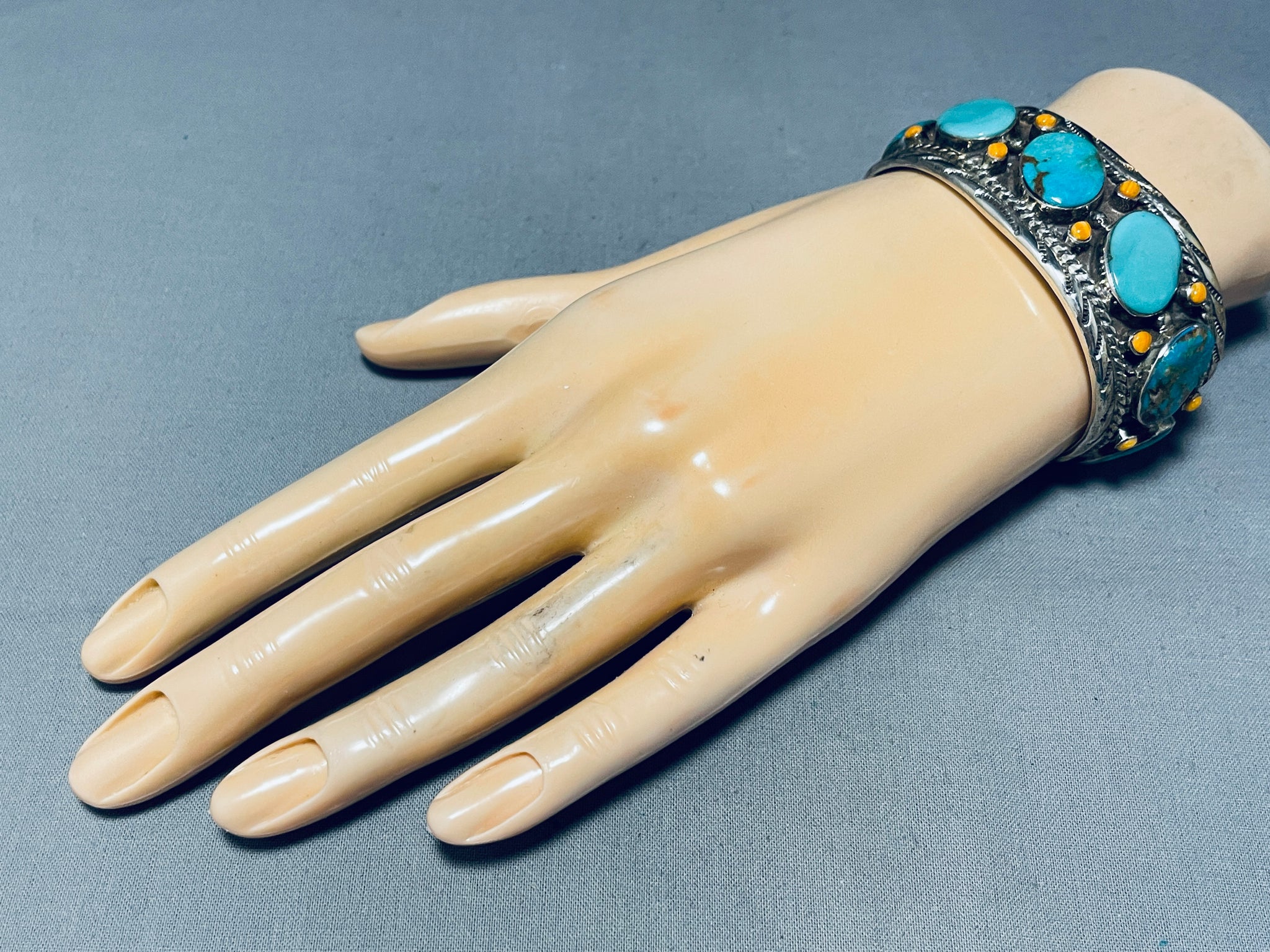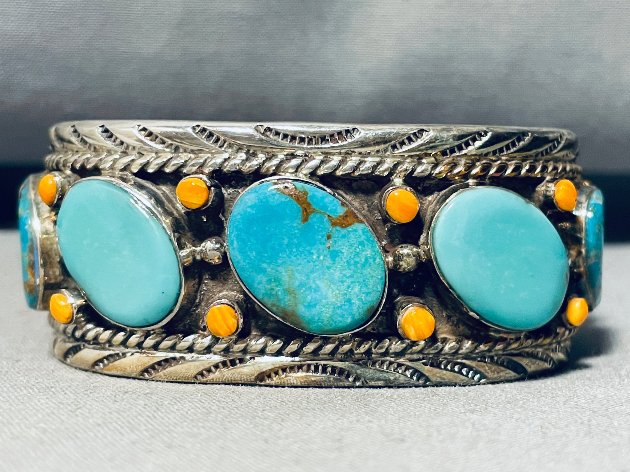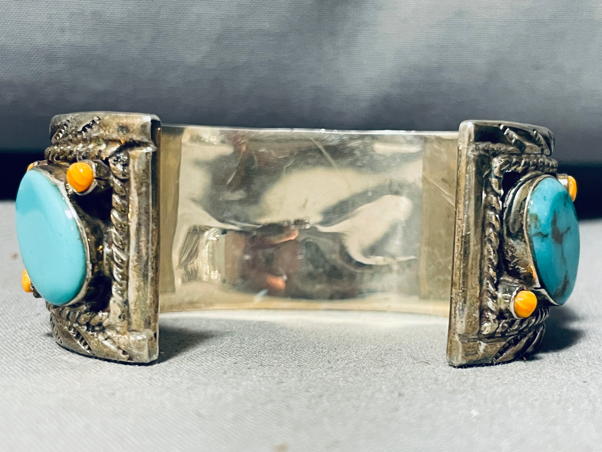 Best Slanted Turquoise!! Vintage Native American Navajo Sterling Silver Bracelet