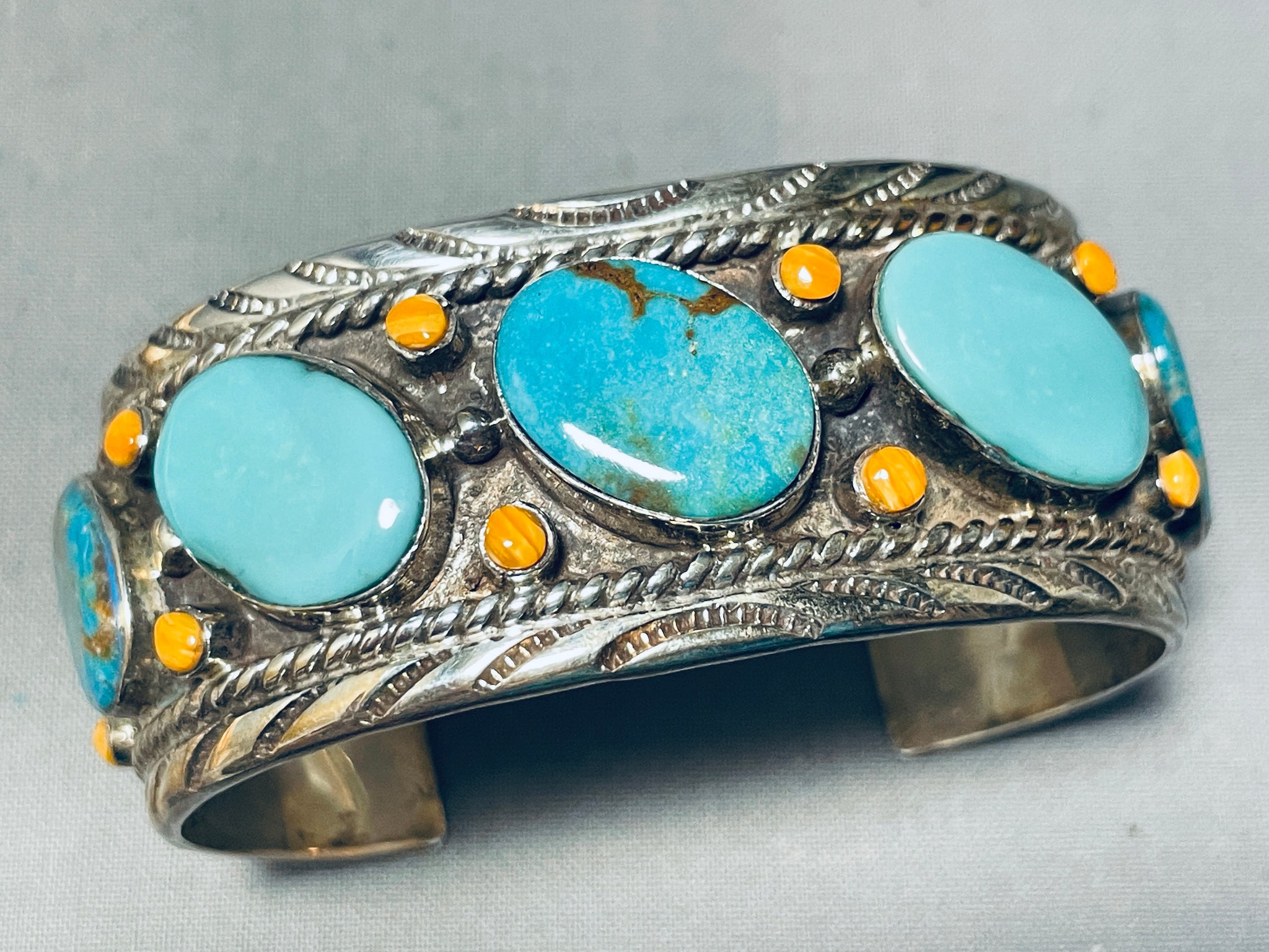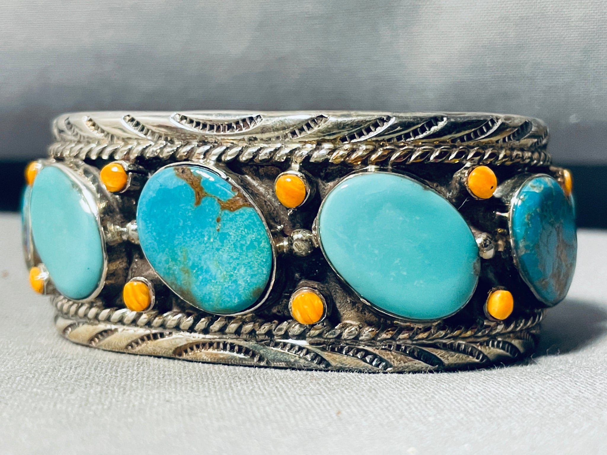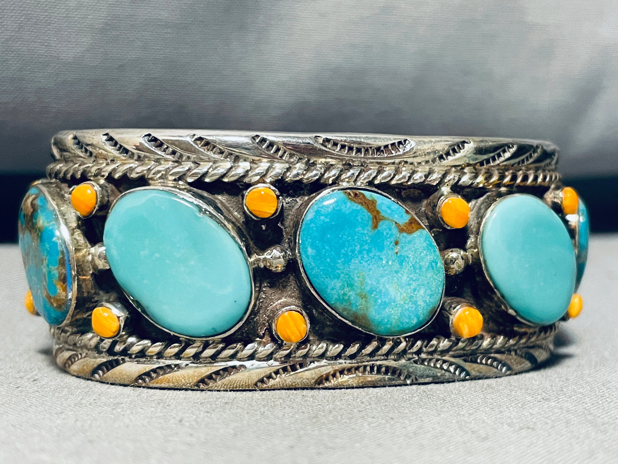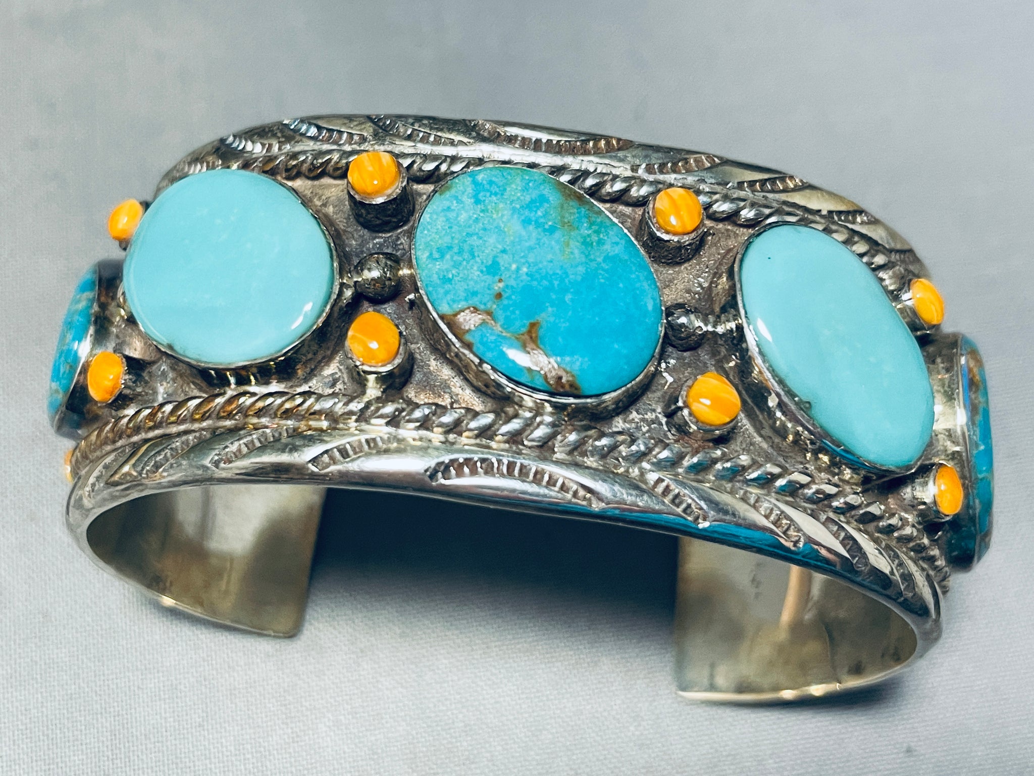 Best Slanted Turquoise!! Vintage Native American Navajo Sterling Silver Bracelet