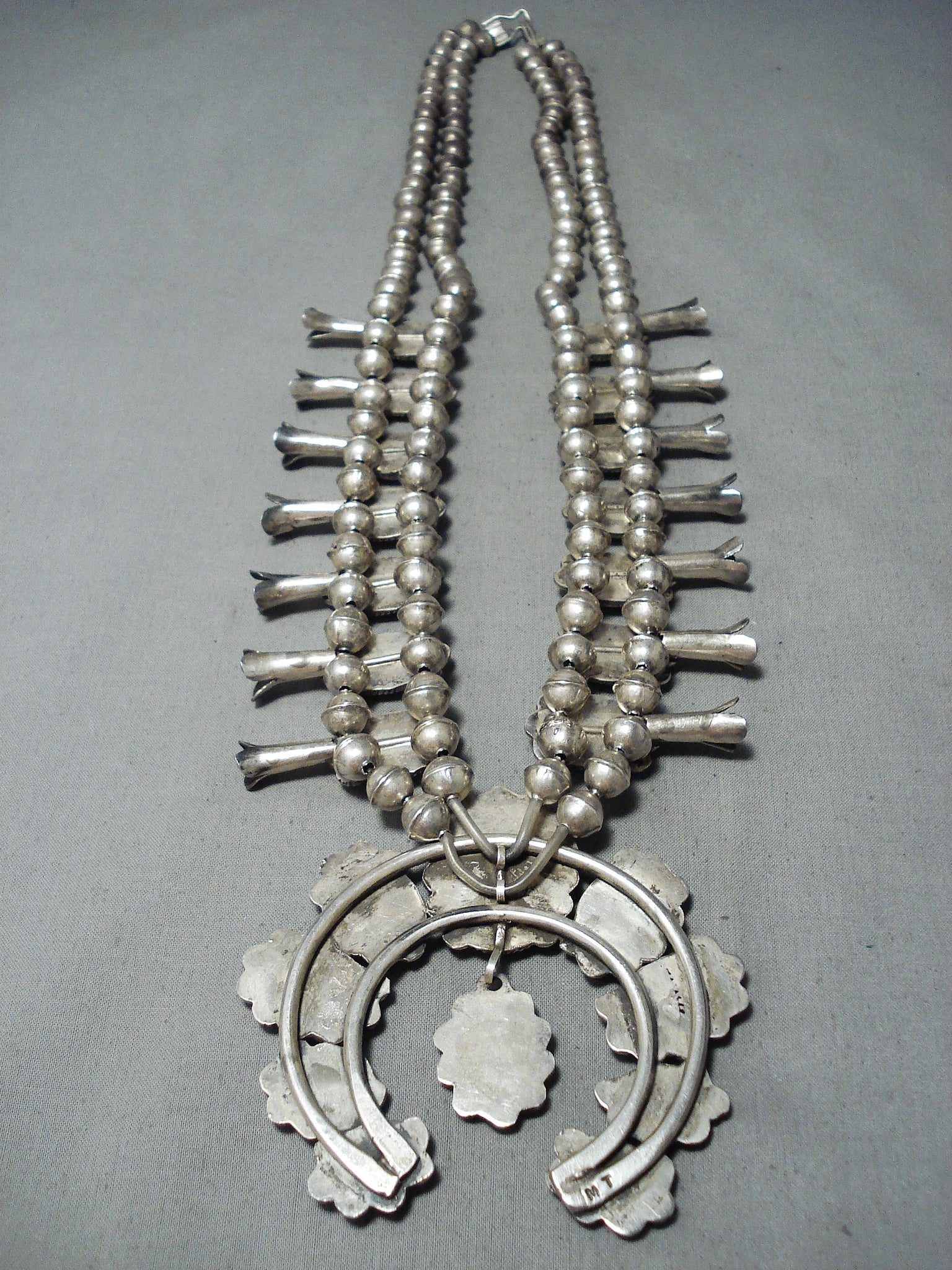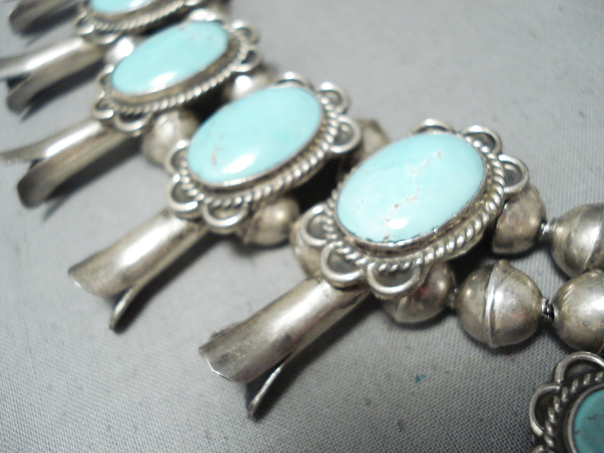 Best Vintage #8 Turquoise Native American Navajo Sterling Silver Squash Blossom Necklace Old