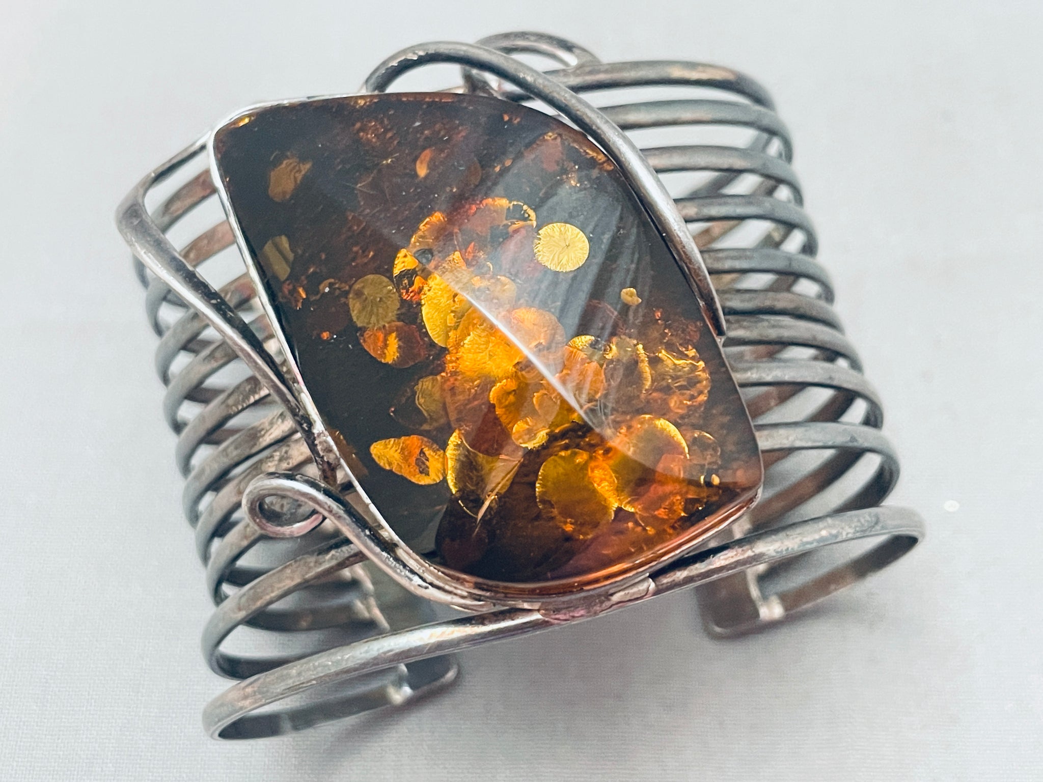 Best Vintage Native American Navajo Amber Sterling Silver Ancient Tree Sap Bracelet