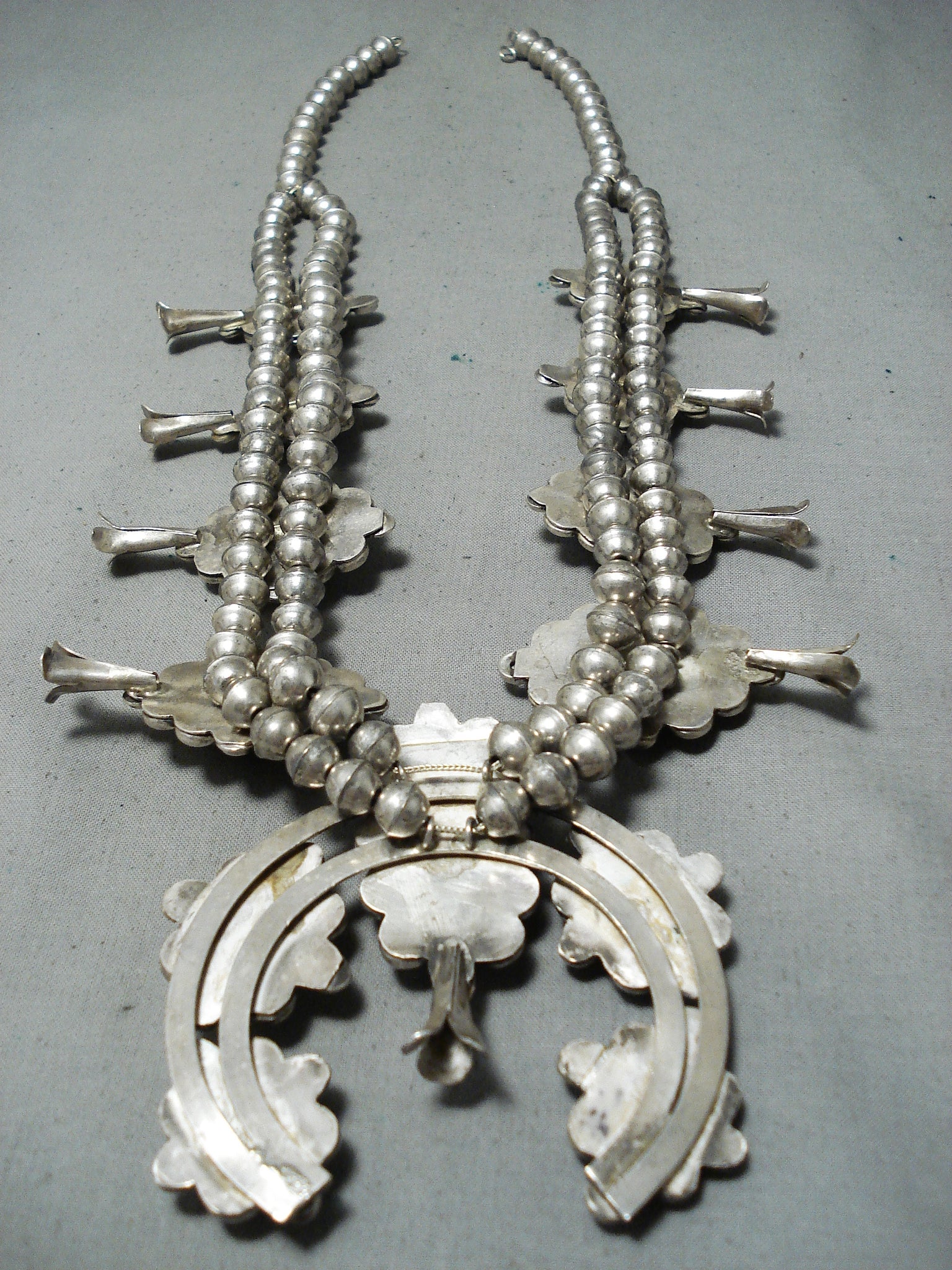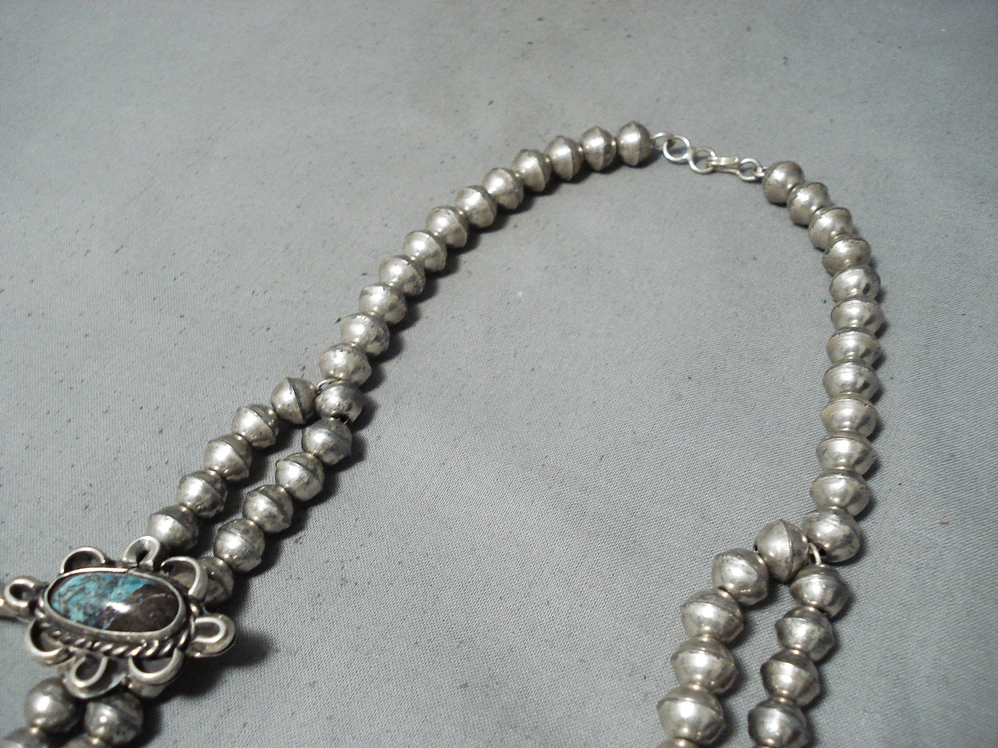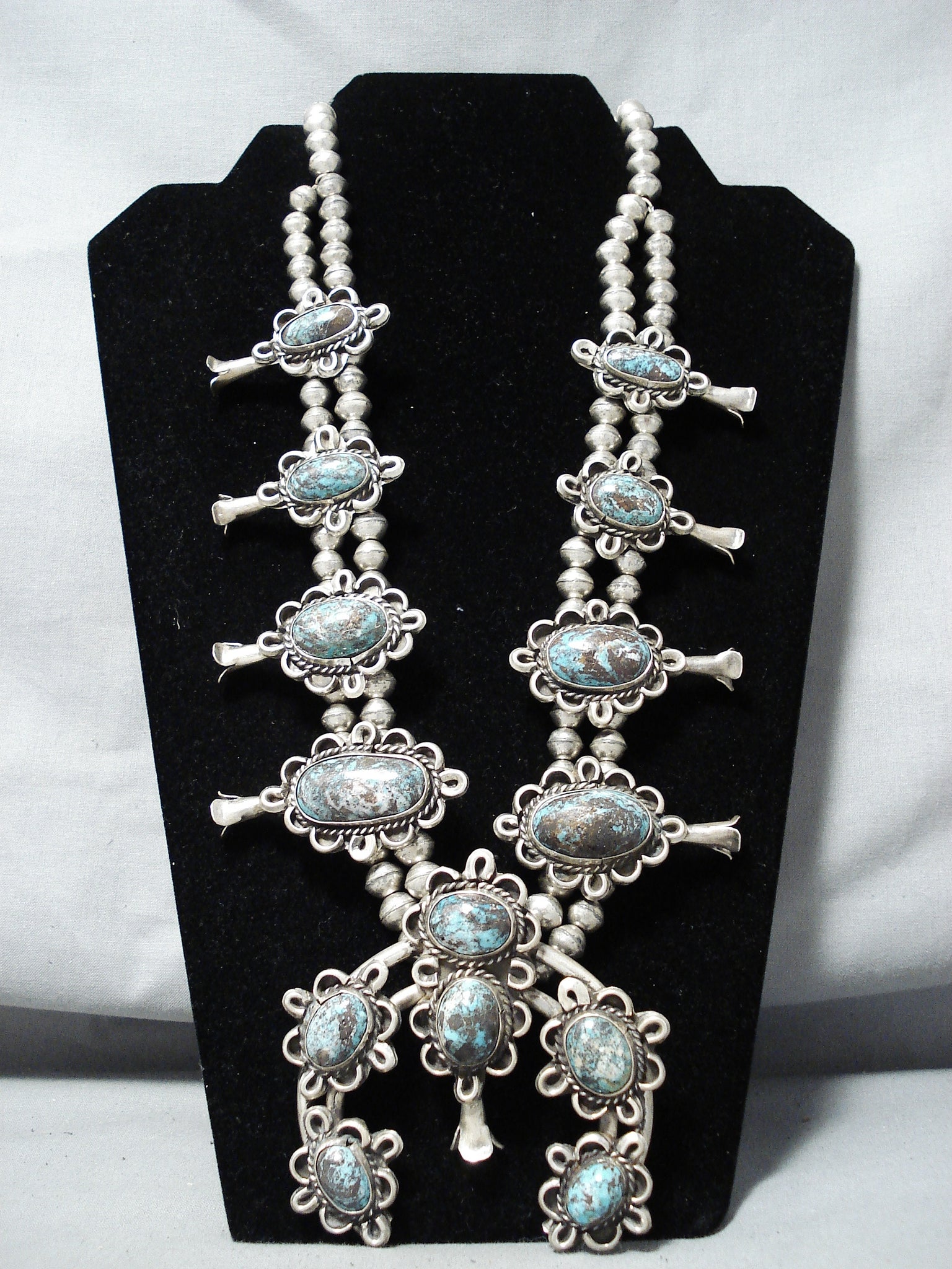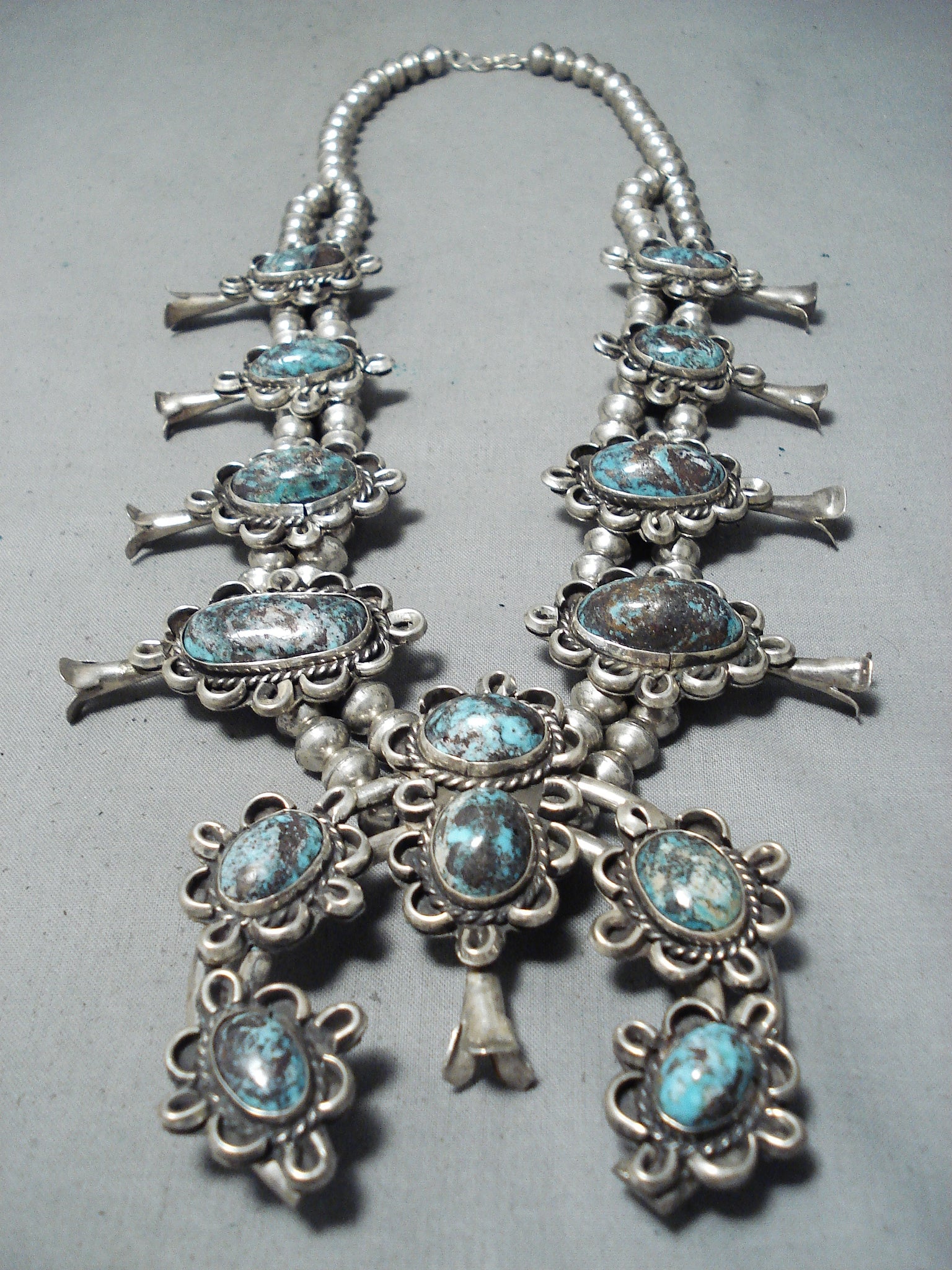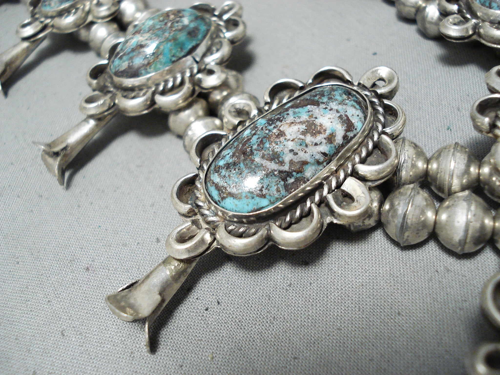 Best Vintage Native American Navajo Bisbee Turquoise Sterling Silver Squash Blososm Necklace