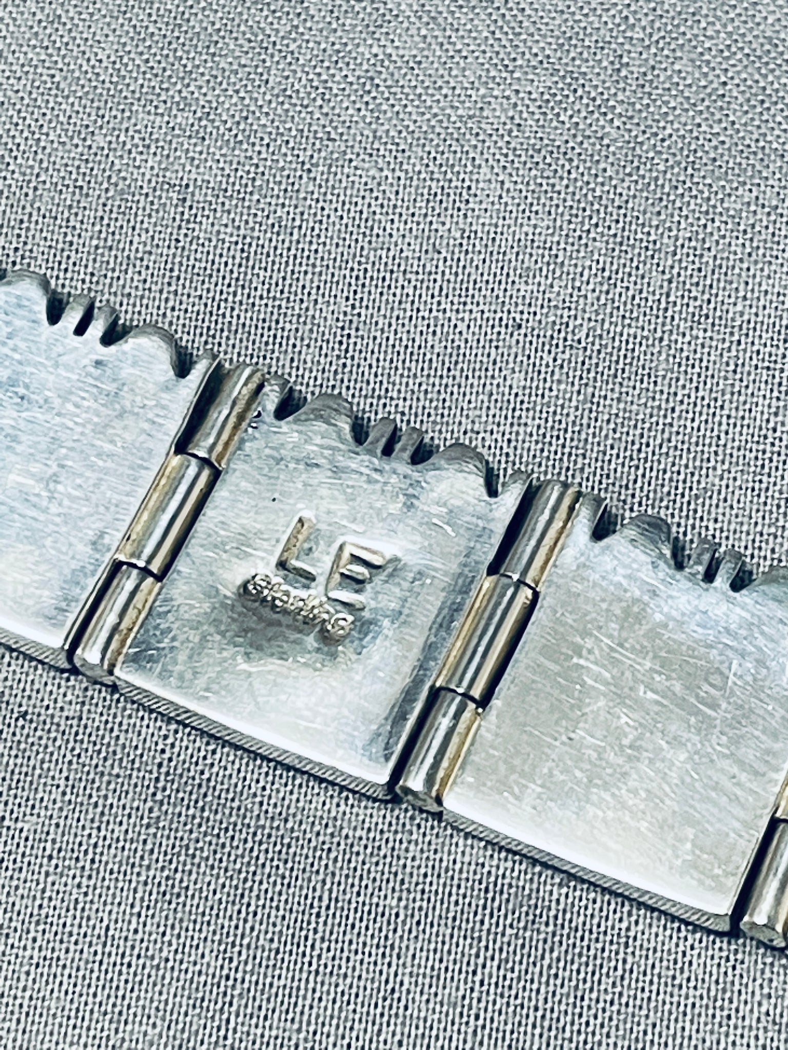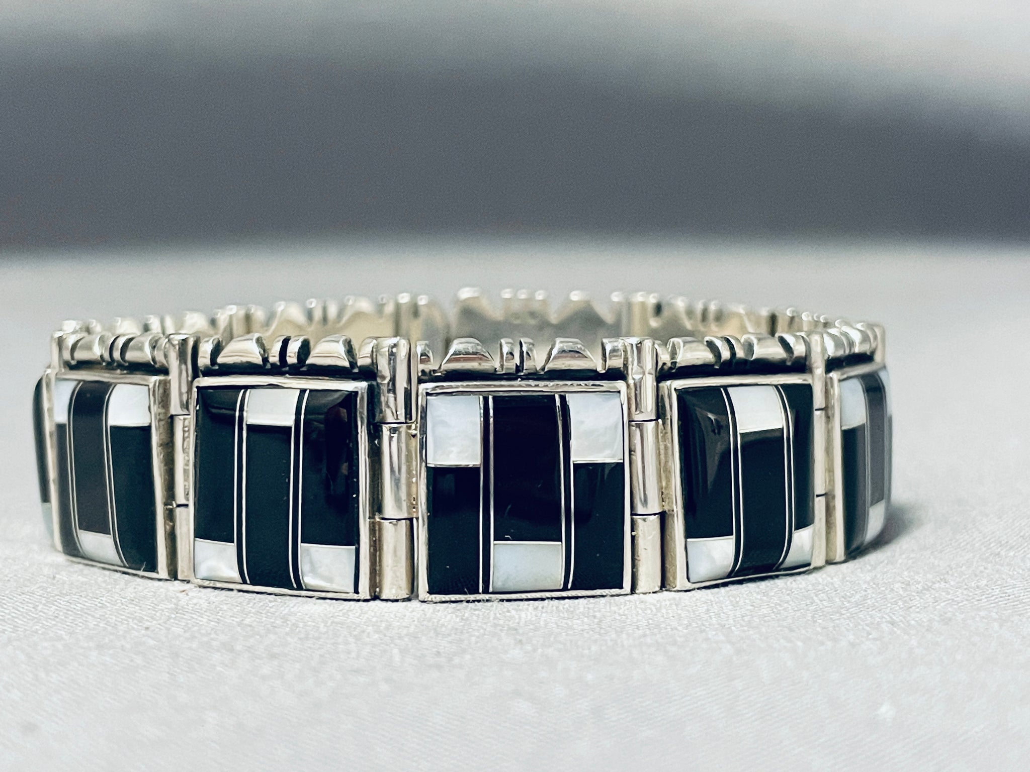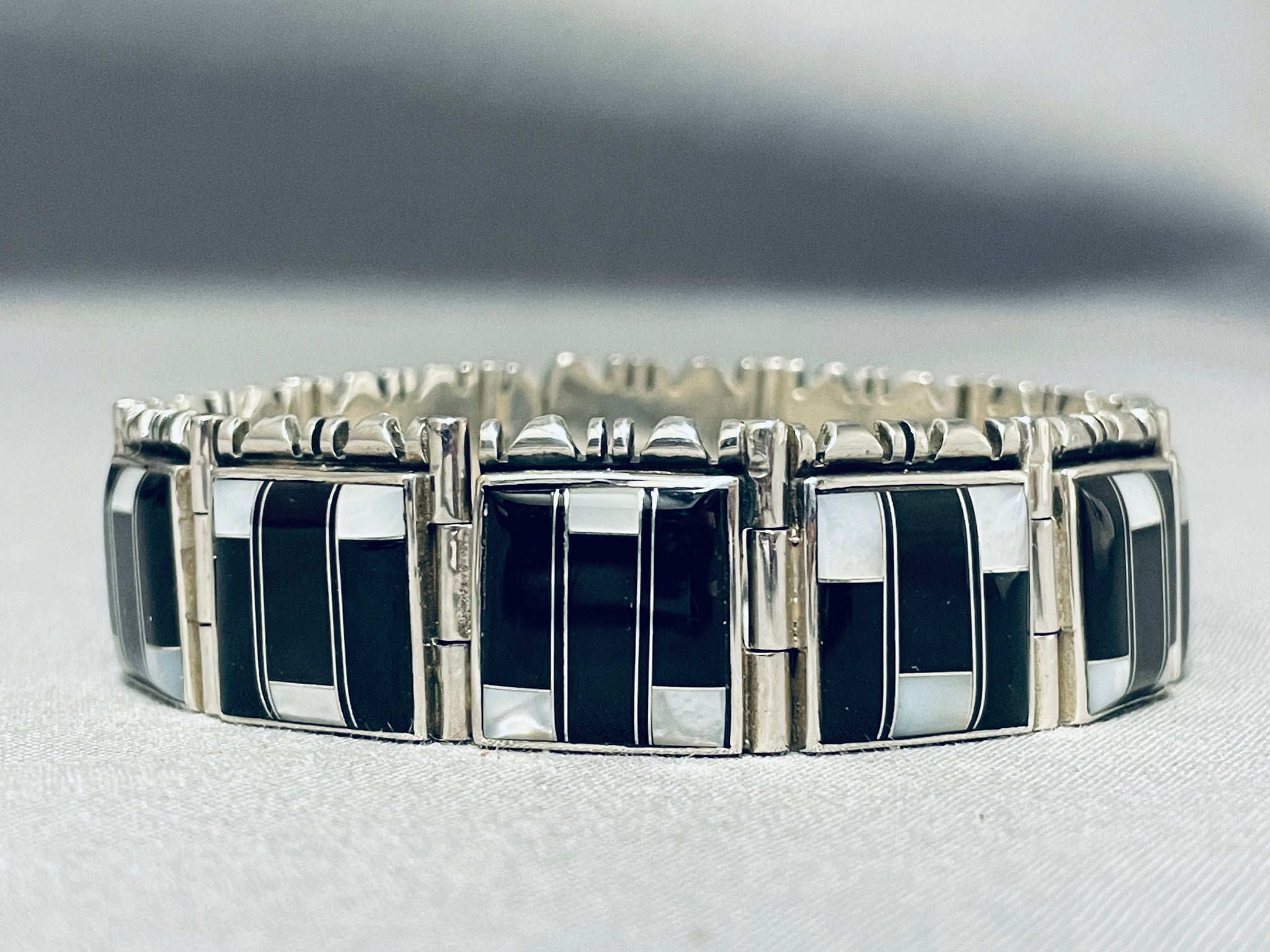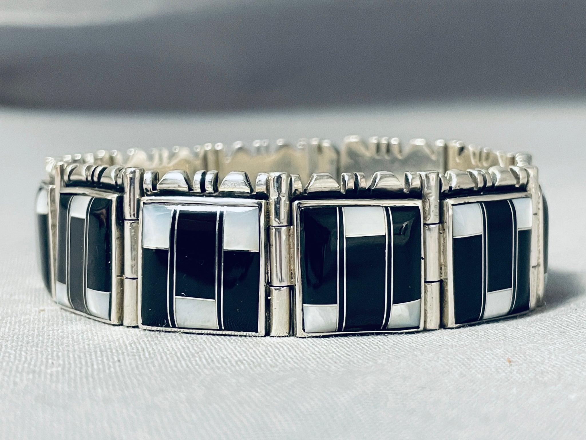Best Vintage Native American Navajo Black Stone Sterling Silver Link Clasp Bracelet