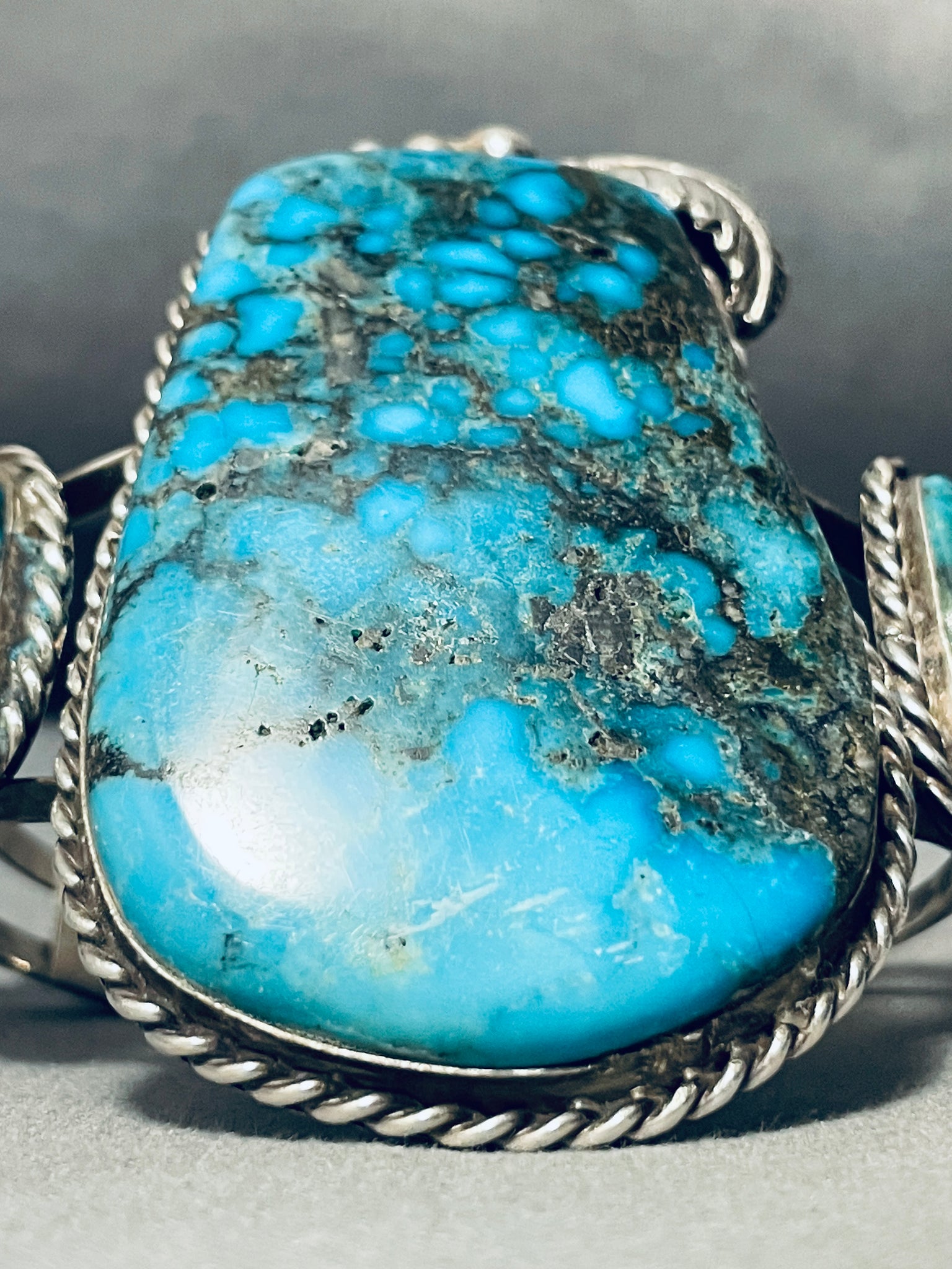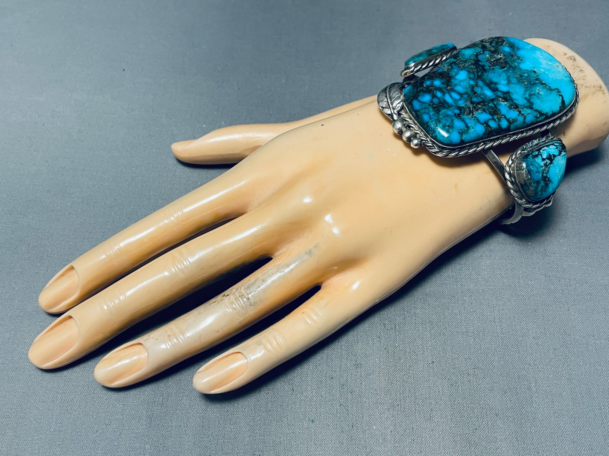 Best Vintage Native American Navajo Blue Diamond Turquoise Bsterling Silver Bracelet