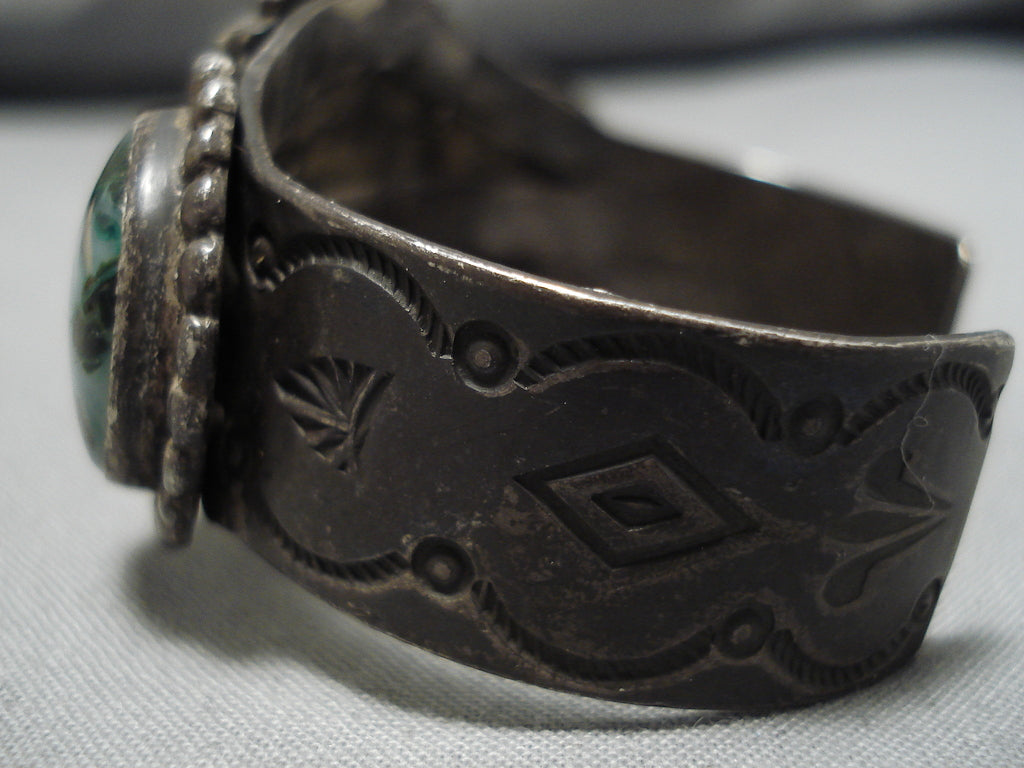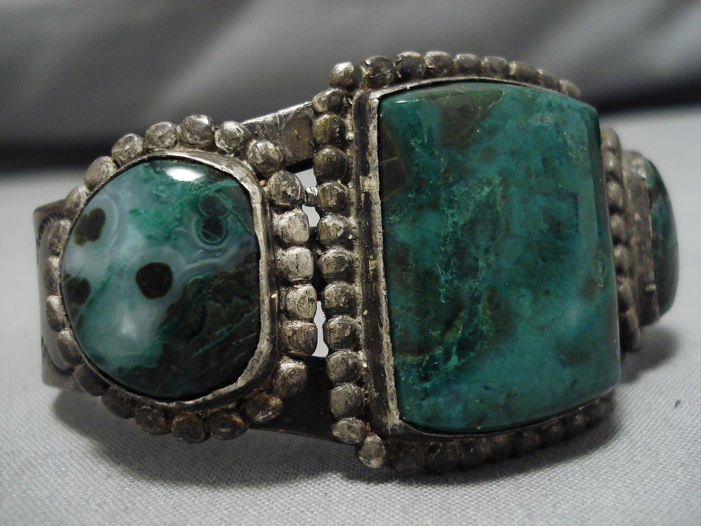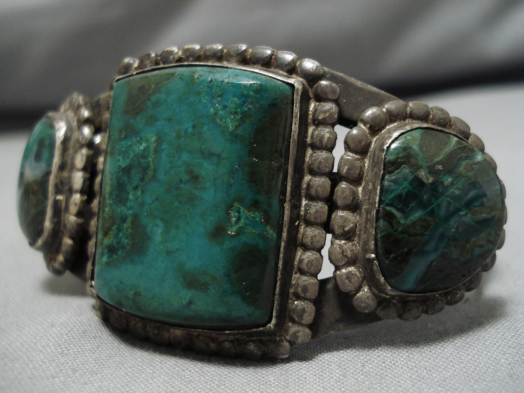 Best Vintage Native American Navajo Chrysocolla Sterling Silver 1930's Bracelet